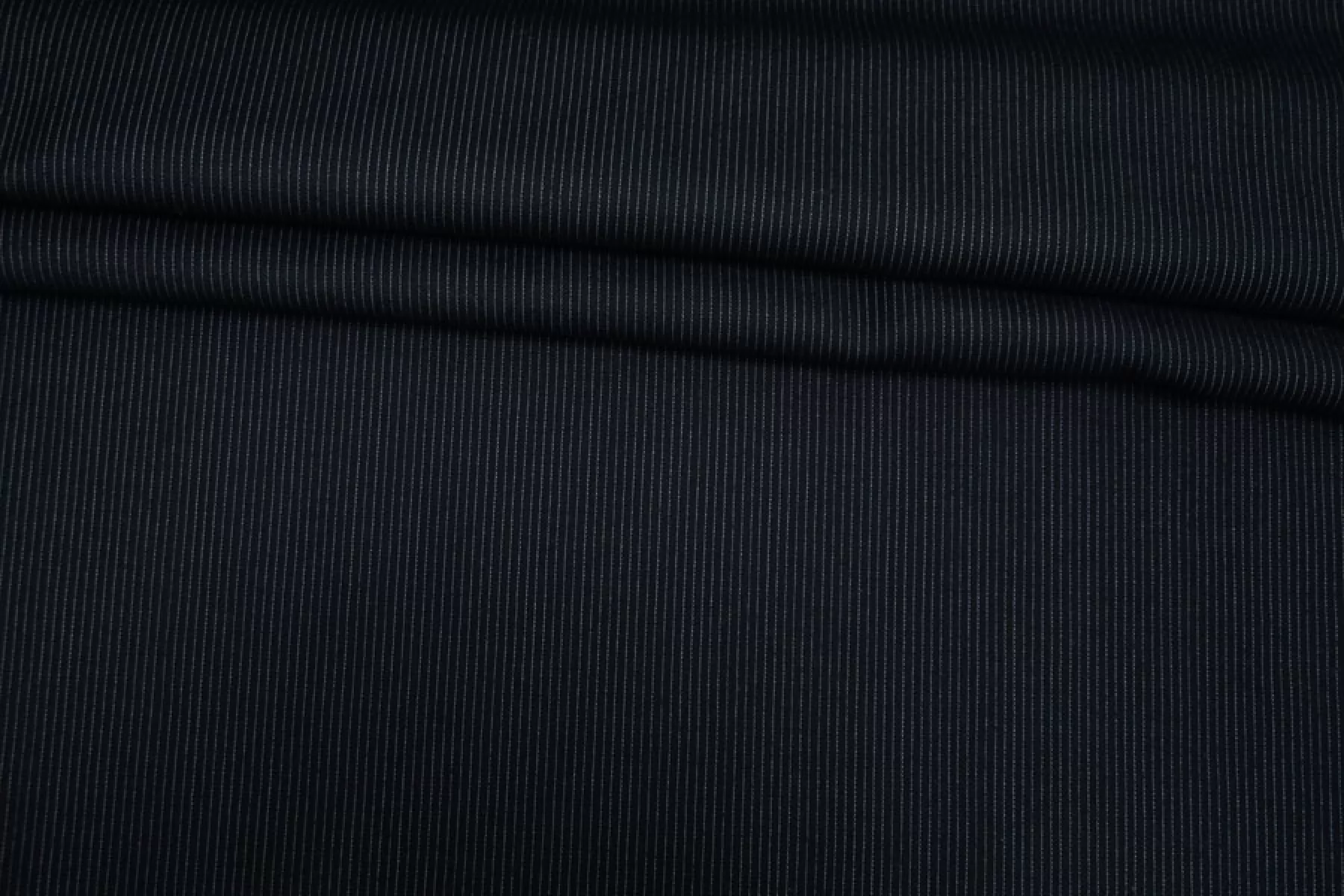 Костюмно-плательная шерсть с шёлком в полоску Чёрно-синяя BNC H60/4 JJ50 21052534