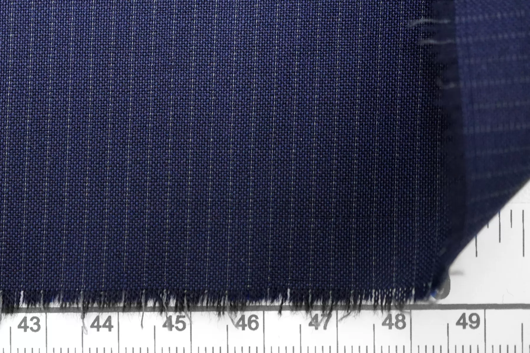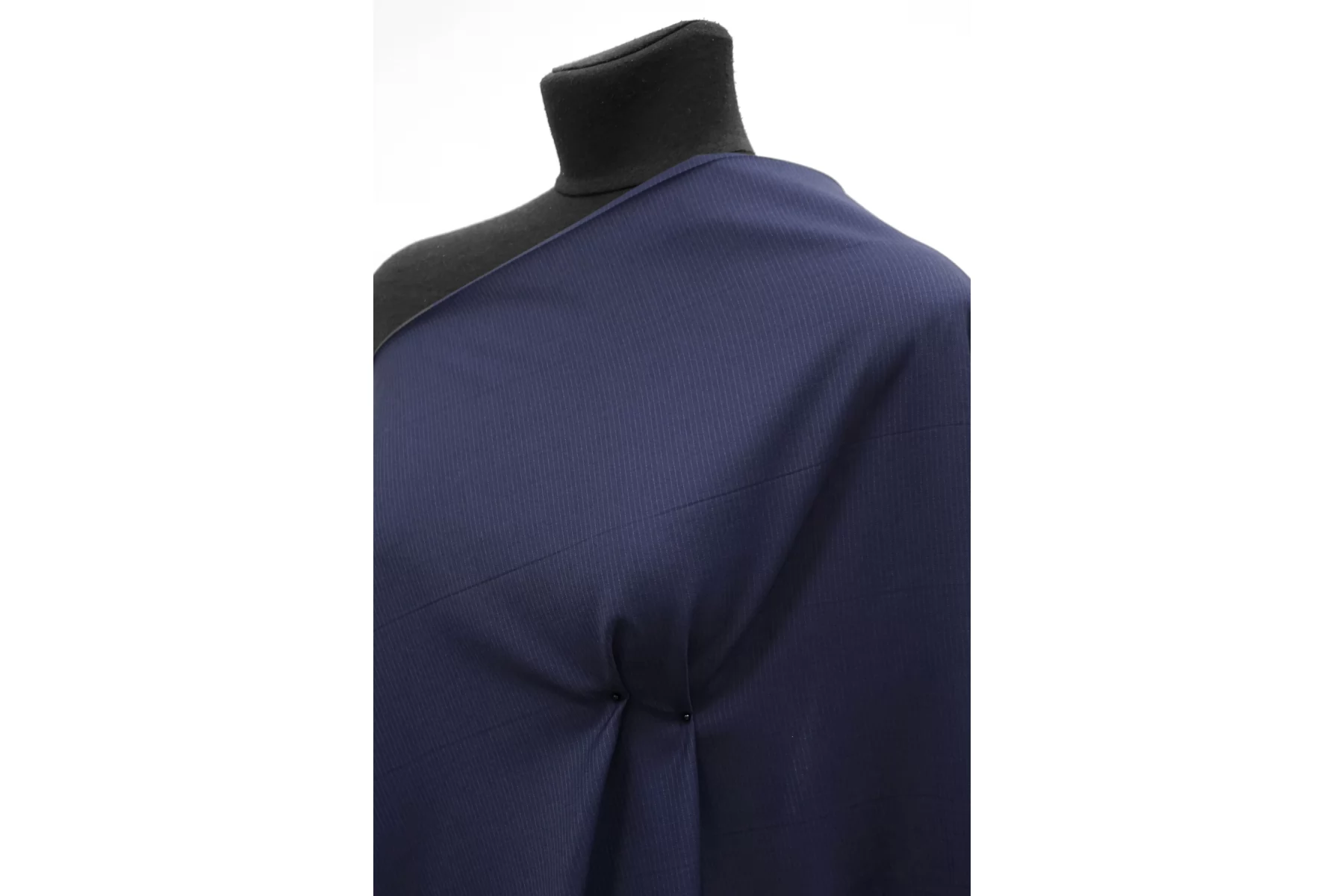 Прекрасная костюмно-плательная вирджинская шерсть Cerruti тёмно-синего цвета в тонкую светло-серую полоску. Тактильно гладкая, достаточно тонкая. Чувствуется, что шерсть, при этом не колется. С лёгким мягким лоском. Плетение совсем немного тянется, немного просвечивает. Хорошо драпируется и умеренно держит форму. Не мнется. Отличный вариант на платья, брюки, юбки и не только. Уход за материалом деликатный.