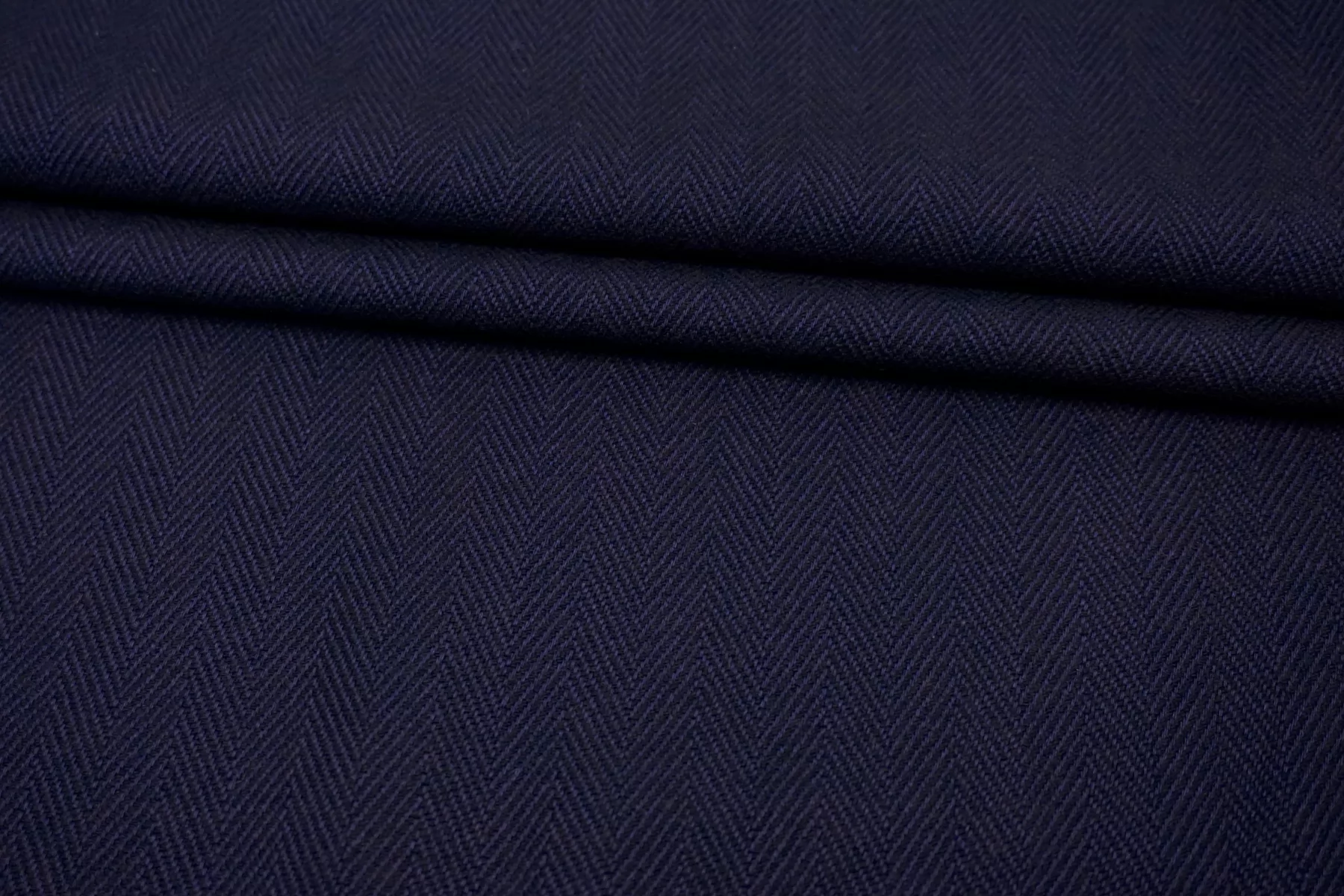 Костюмно-плательная шерсть в елочку Темно-синяя BRS H59/5 GG70 12082526