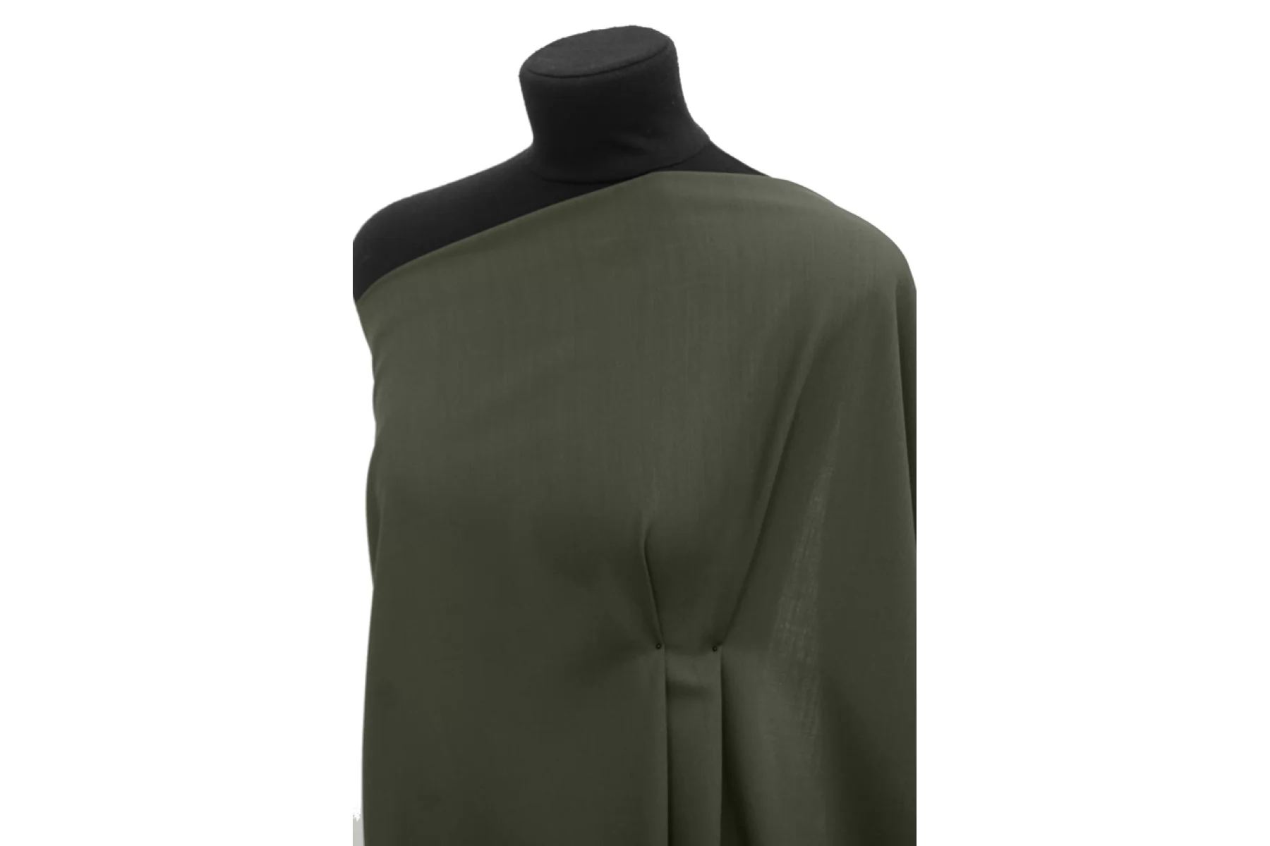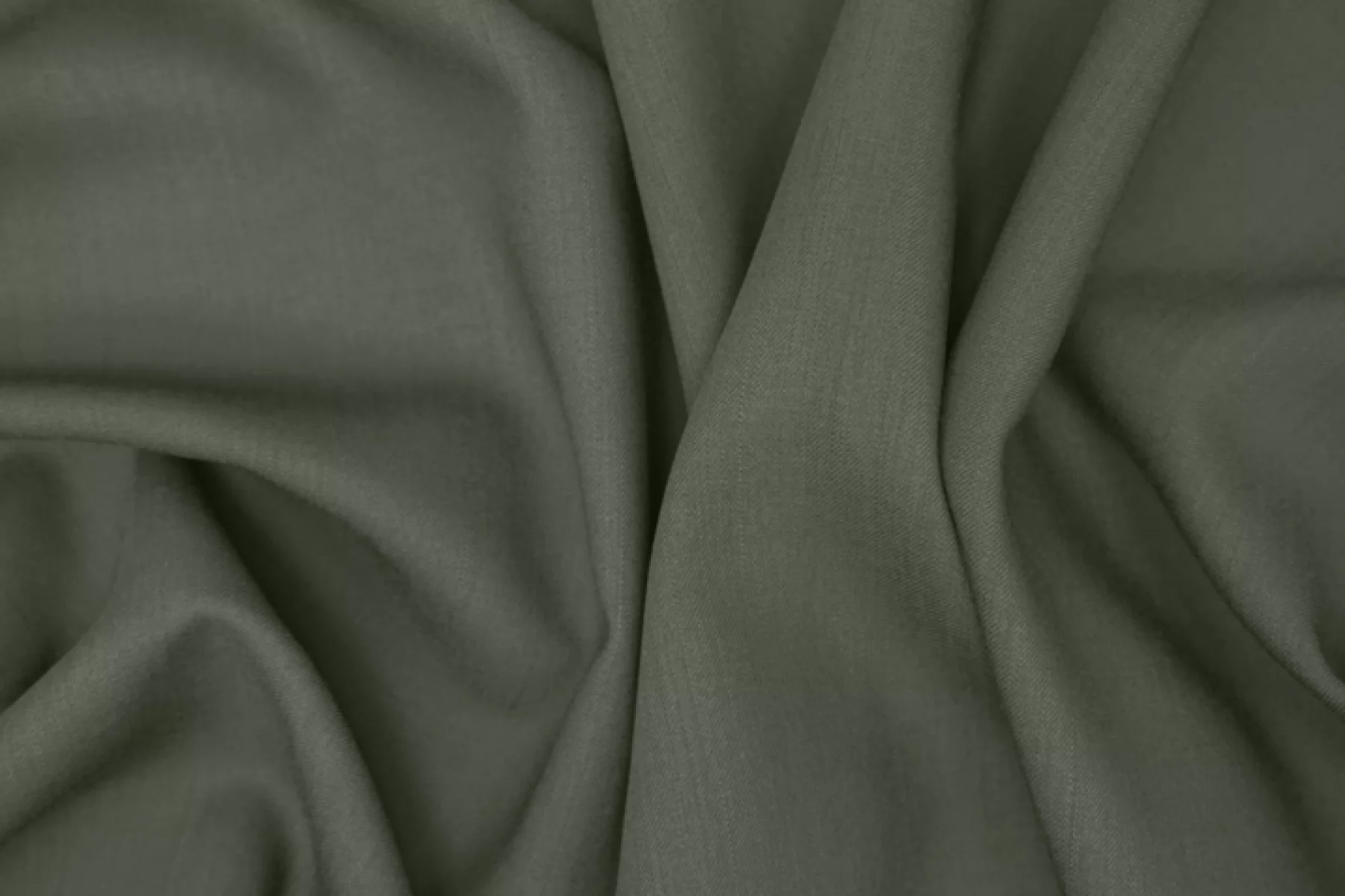 Костюмно-плательная шерсть диагонального плетения зелено-серого оттенка. Тактильно очень приятная, мягкая. Суховатая, но не колется. Просвечивает силуэт на просвет. Материал тонкий, но плотный по плетению. Обладает красивой пластикой. Не тянется. Не мнется. С легким лоском. Отличный вариант для пошива жакета, зимней рубашки, юбки, костюма и платья. При необходимости используйте подкладочный материал. Уход за шерстью деликатный.