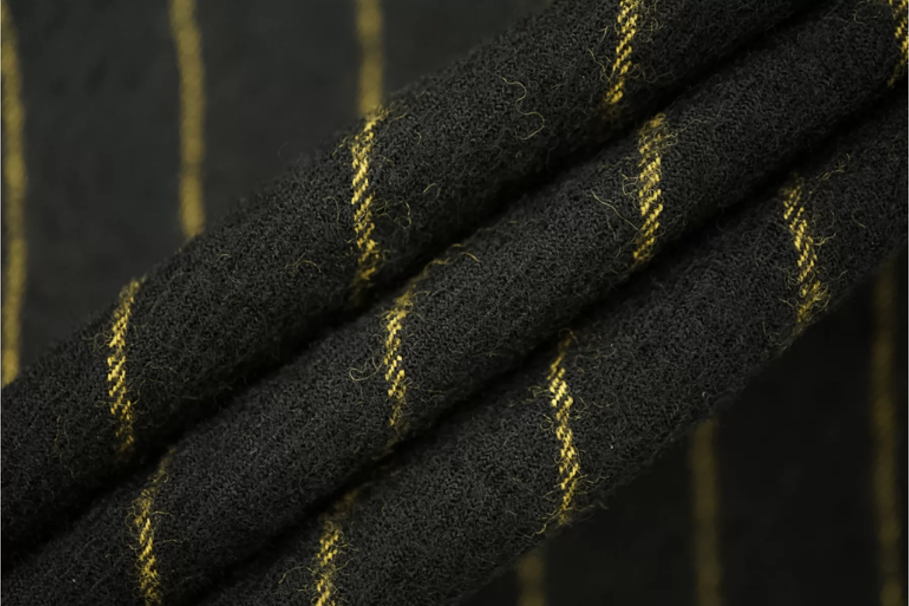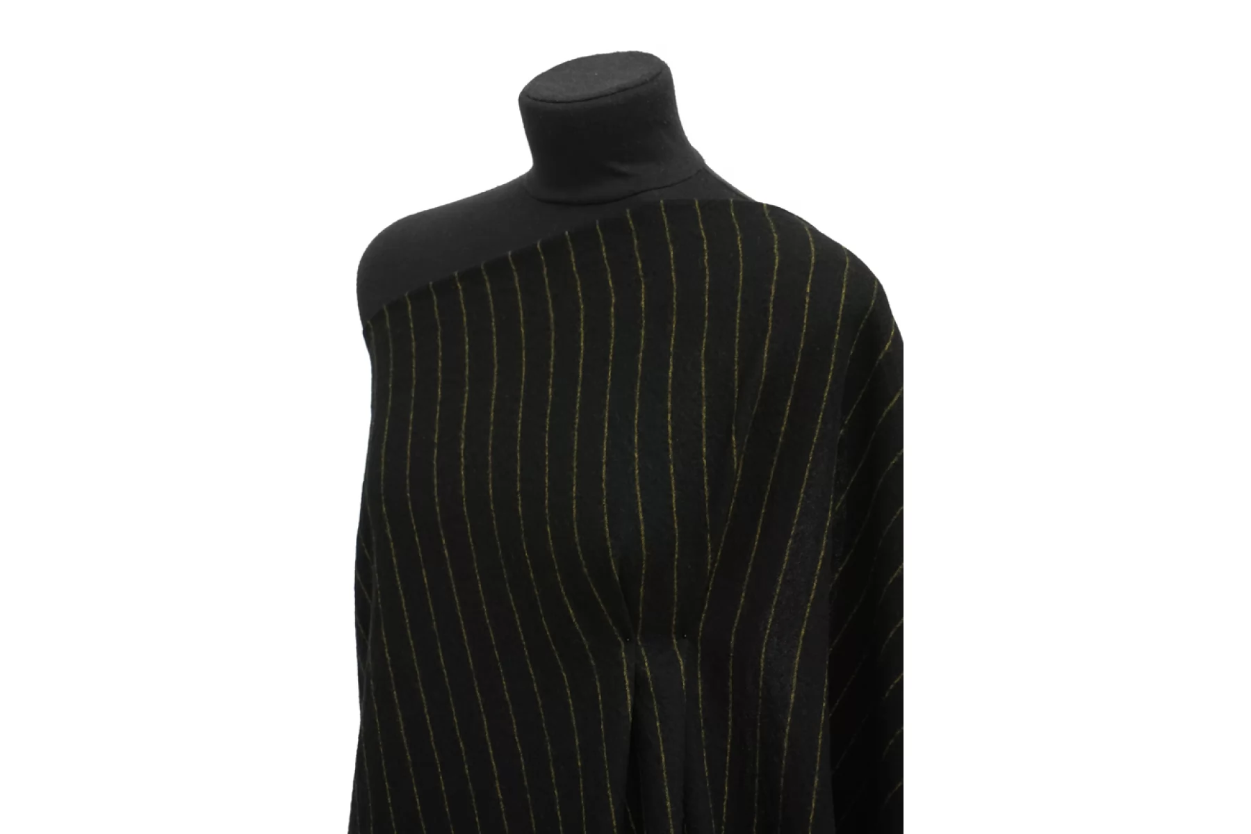 Прекрасная позиция - костюмно-плательная вареная шерсть, диагонального плетения, в полоску (расстояние между полосками ~2 см) в черно-желтой цветовой гамме. Материал тактильно приятный, суховатый, не колется, с небольшой ворсовостью. Просвечивает силуэт из-за плетения - оно достаточно плотное, но разряженное. Не тянется. Немного держит форму. Не мнется. Шьем платья, юбки, жакеты и другие костюмные варианты. Уход за материалом деликатный.