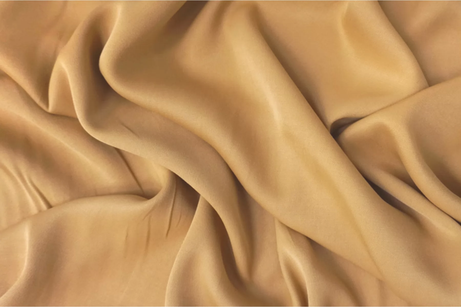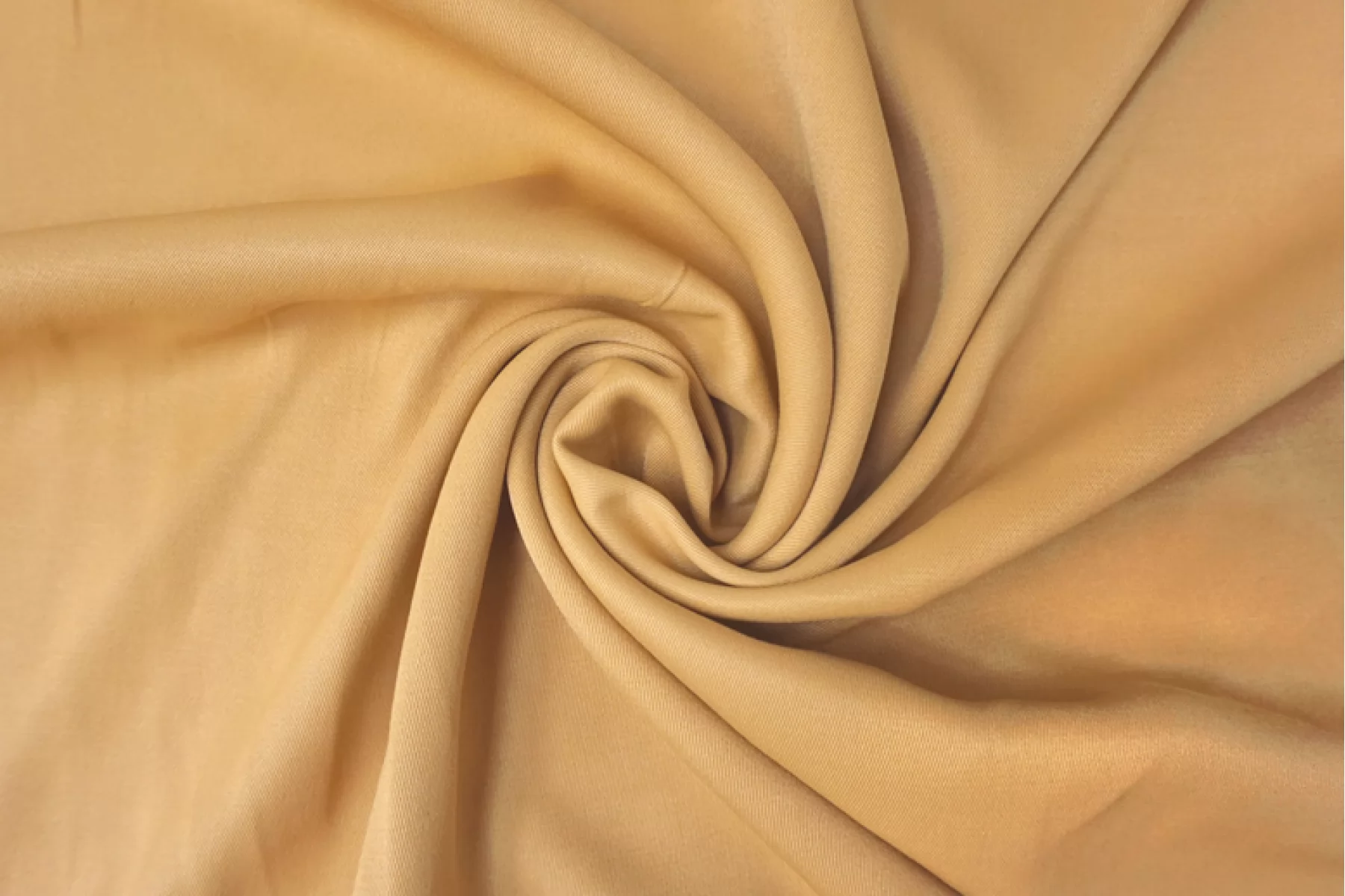 Костюмно-плательная вискоза диагонального плетения красивого песочного оттенка, обладает нежным лоском. Приятная, мягкая, прохладная и гладкая. Красиво смотрится в складке и в своей пластике. Слегка мнется. Не просвечивает и не тянется. Шьем костюмы, брюки на резинке и не только, мягкие жакеты, платья, юбки. Обязательно учитывайте усадку 5-10%