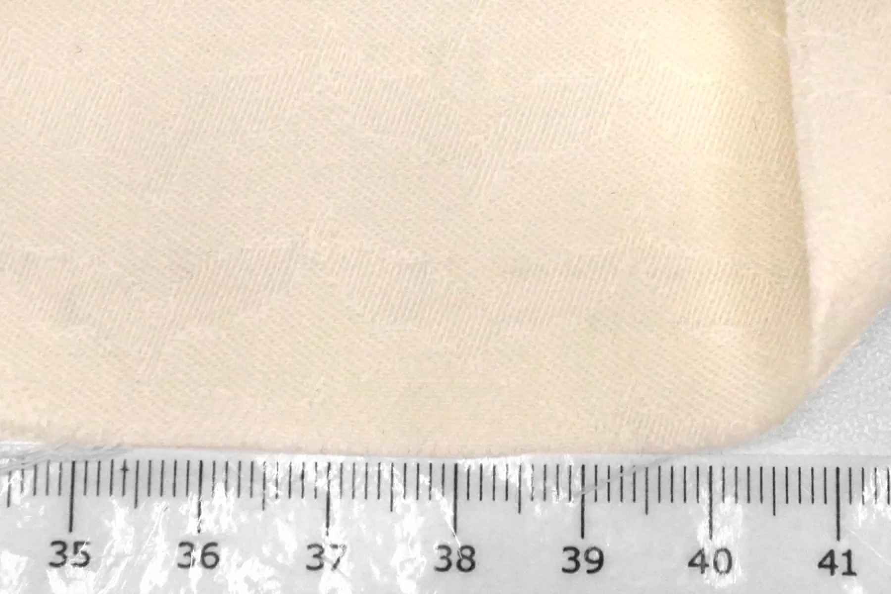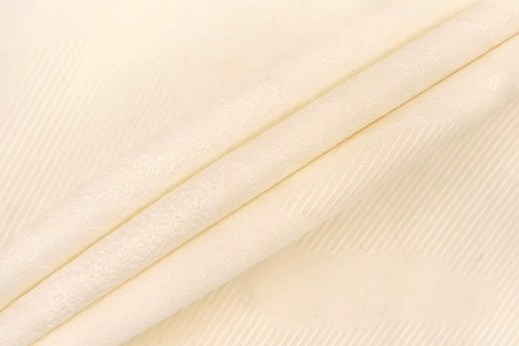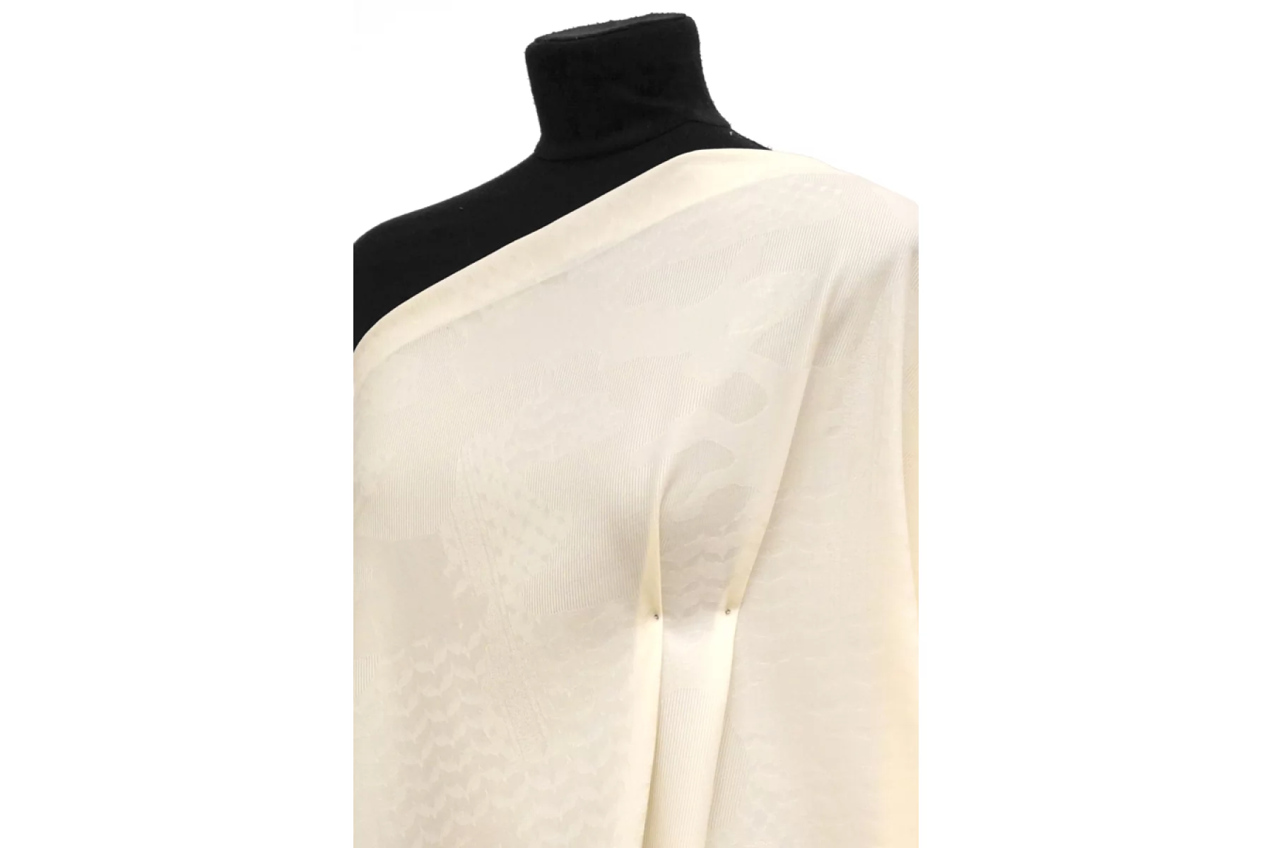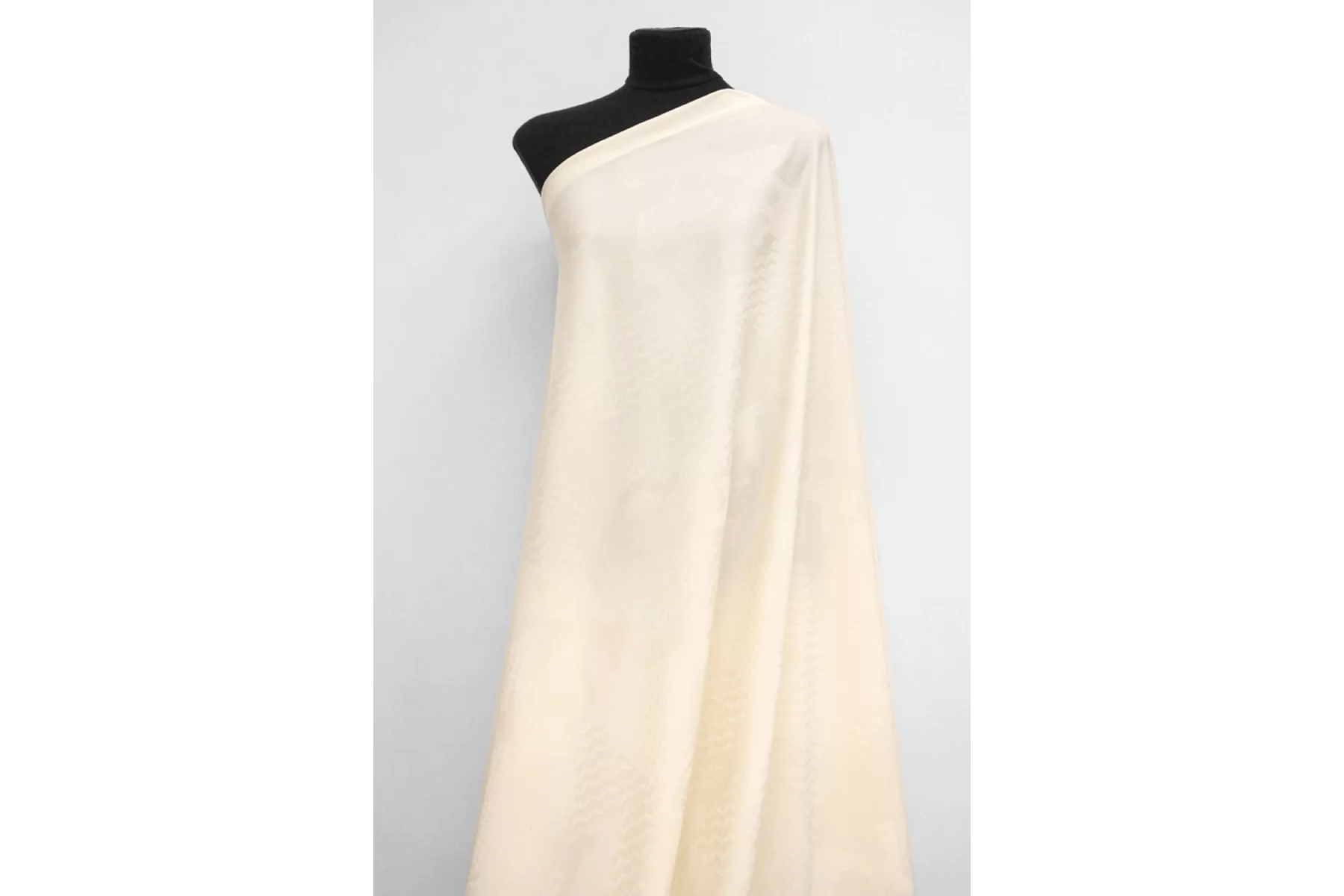 Костюмно-плательная жаккардовая шерсть в нежном молочном оттенке. Приятная, слегка суховата, мягкая. Почти не колется. Слегка просвечивает. Немного тянется благодаря эластану. Не мнется. Хорошо драпируется. Форму держит слабо. Обладает легким матовым лоском. Используем на костюмные варианты, жакеты мягкой формы, юбки и не только. При необходимости используйте подкладочный материал. Уход за шерстью деликатный.