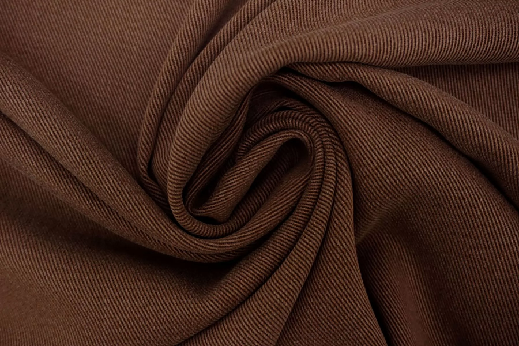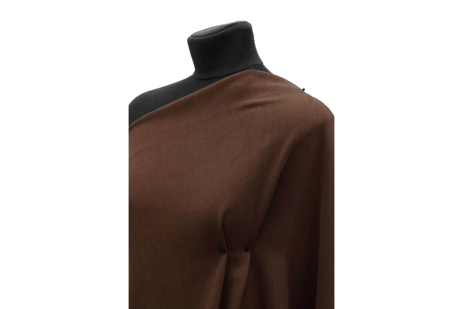 ВНИМАНИЕ!! Неравномерное окрашивание ткани каждые 50 см. см. фото. Шикарная костюмно-плательная ткань из эвкалипта, диагонального плетения в красивом, кофейно-коричневом оттенке. Присутствует белёсый отлив. Тактильно невероятно приятный, будто замшевый, мягкий. Пластичный но при этом держит форму. Не просвечивает, совсем немного тянется-пружинит плетение. Отличный вариант для пошива костюма мягкой формы, платья, жакета, юбки или брюк (учитывайте, что нет эластана).