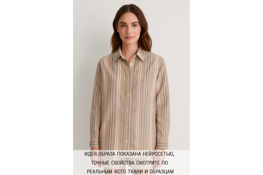 Прекрасный костюмно-плательный хлопок в полоску. Полоска расположена вдоль кромки, нити песочно-бежевого, нежно-розового, белого, серого и тёмно-вишнёвого цвета. Материал очень приятный, мягкий. Не очень толстый но при этом достаточно плотный. Не просвечивает, не тянется. Мнется. Пластичный, умеренно держит форму. Отличный вариант на платья, юбки, лёгкие брюки или шорты, рубашки второго слоя.