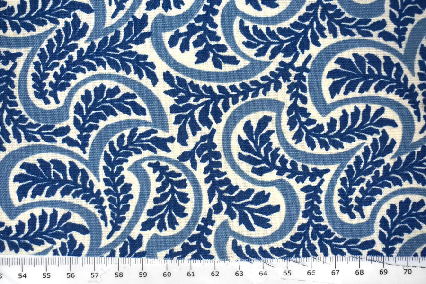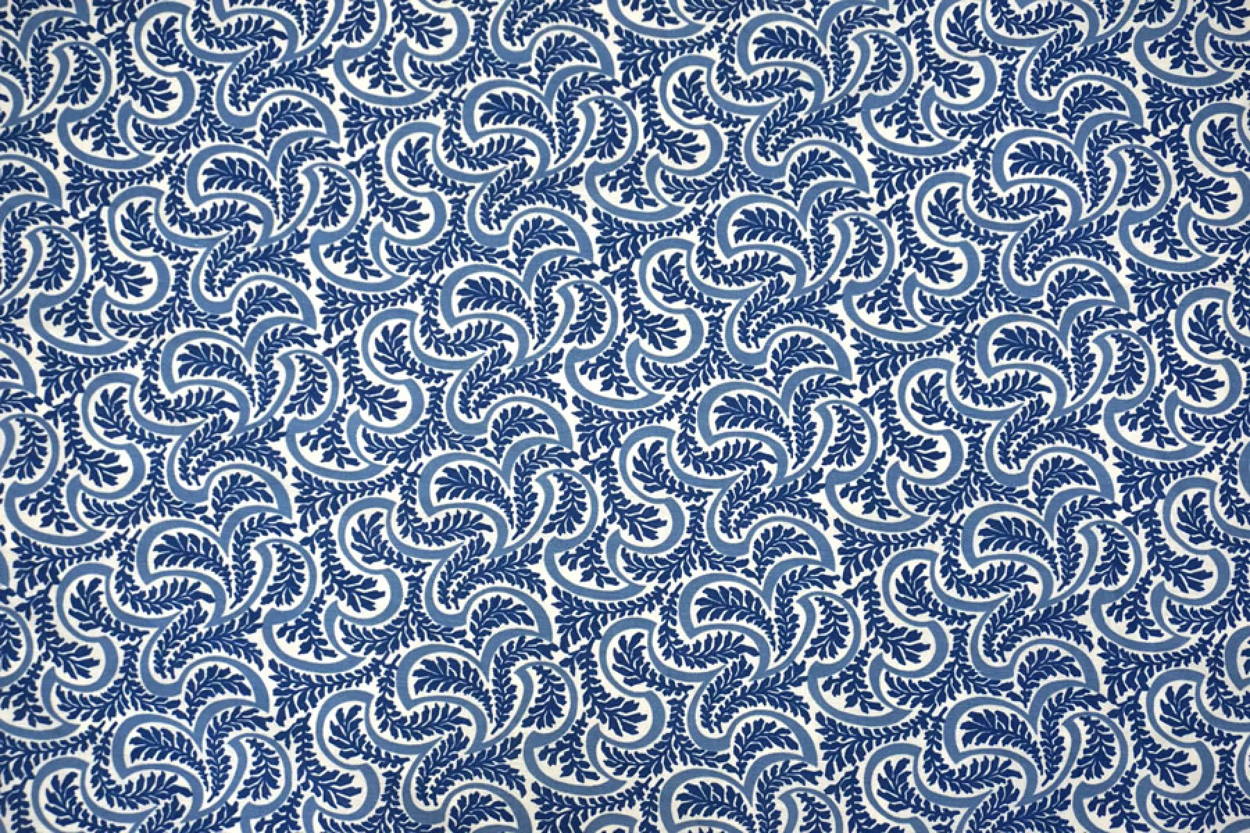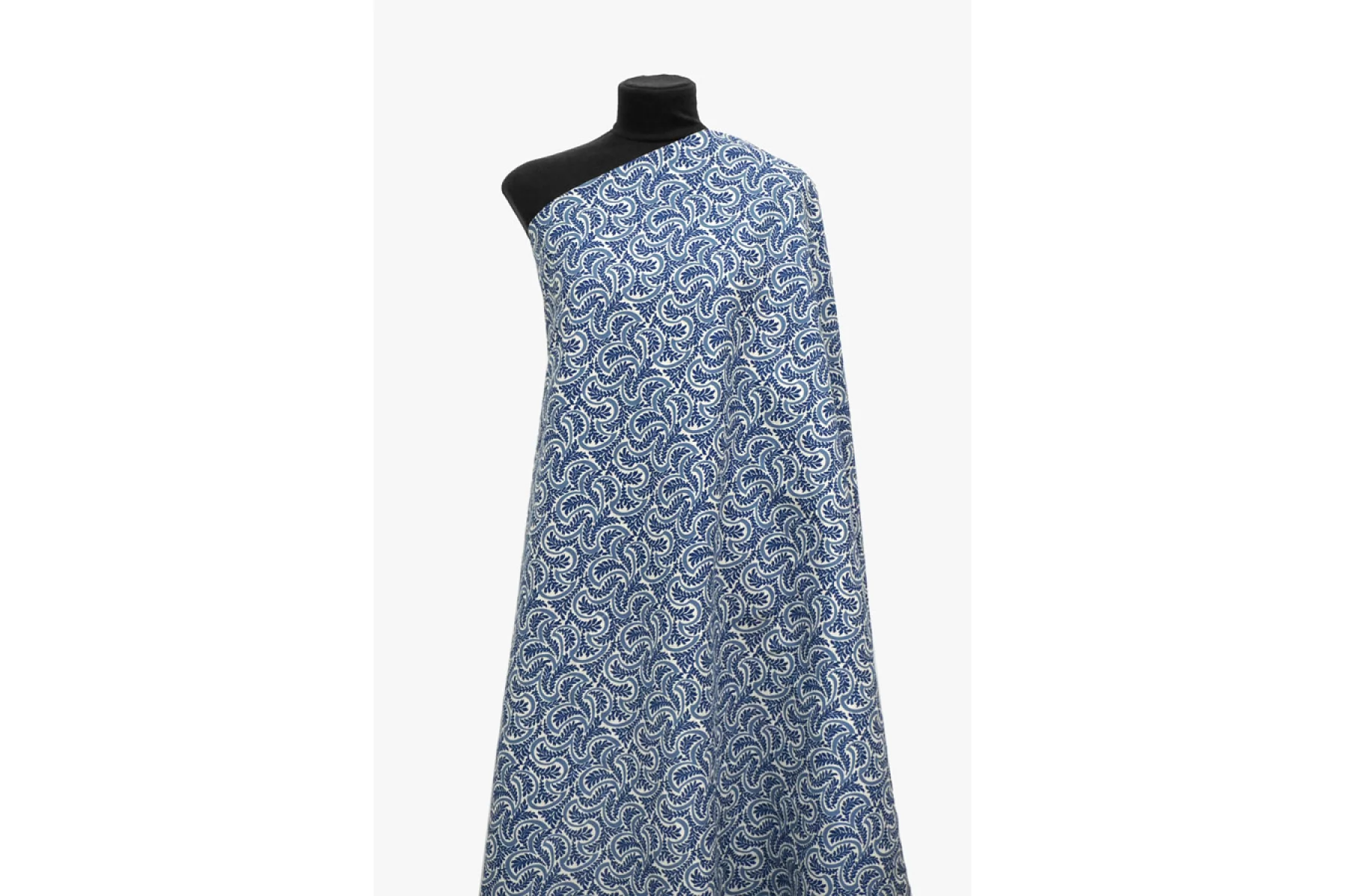 Костюмно-плательный лён с хлопком от бренда Max Mara в сине-молочный орнамент в виде растений. Не тянется, не просвечивает. Плетение напоминает рогожку. Материал гладкий, немного жестковатый, с красивым матовым лоском. Держит форму, при этом достаточно пластичный. Отличный вариант для летнего изделия - платья, юбки, летнего костюма, сарафана, кимоно, рубашки.