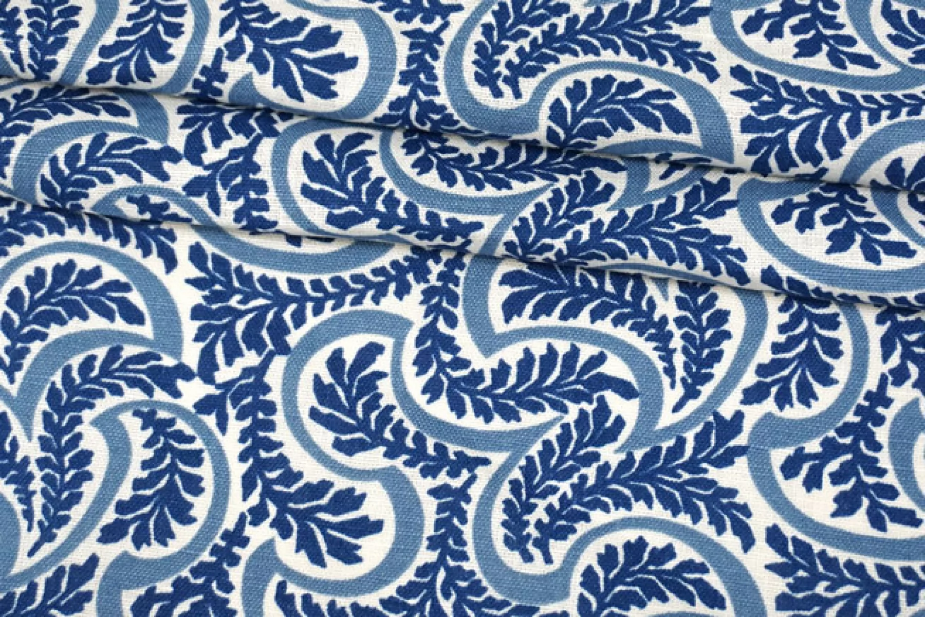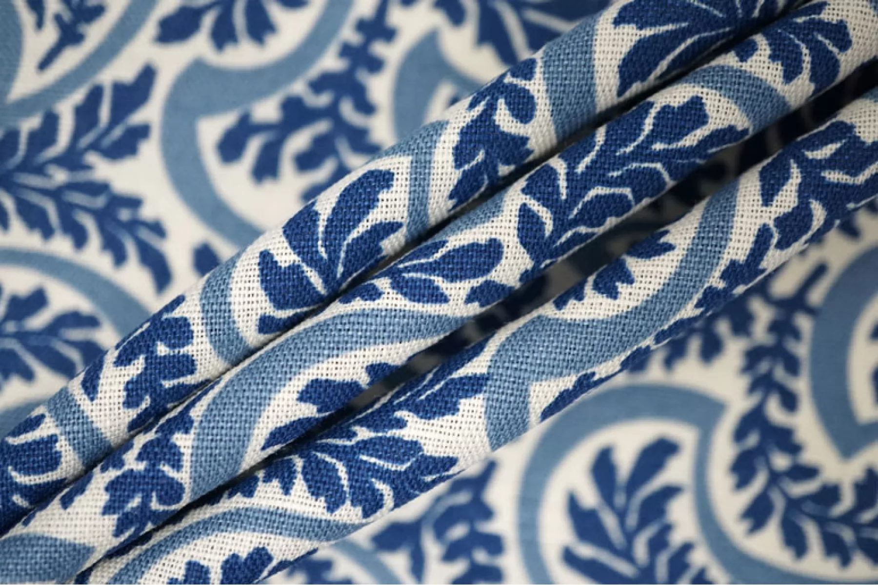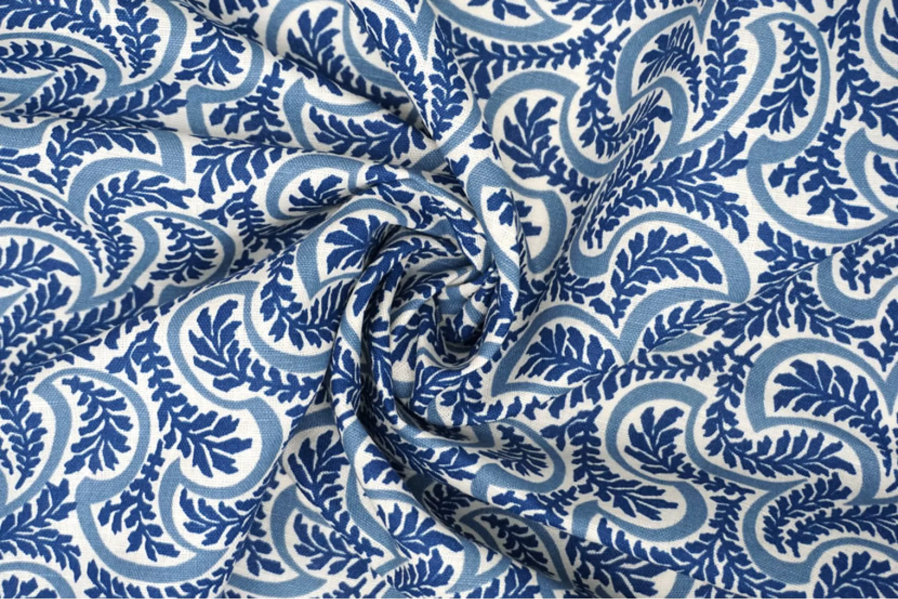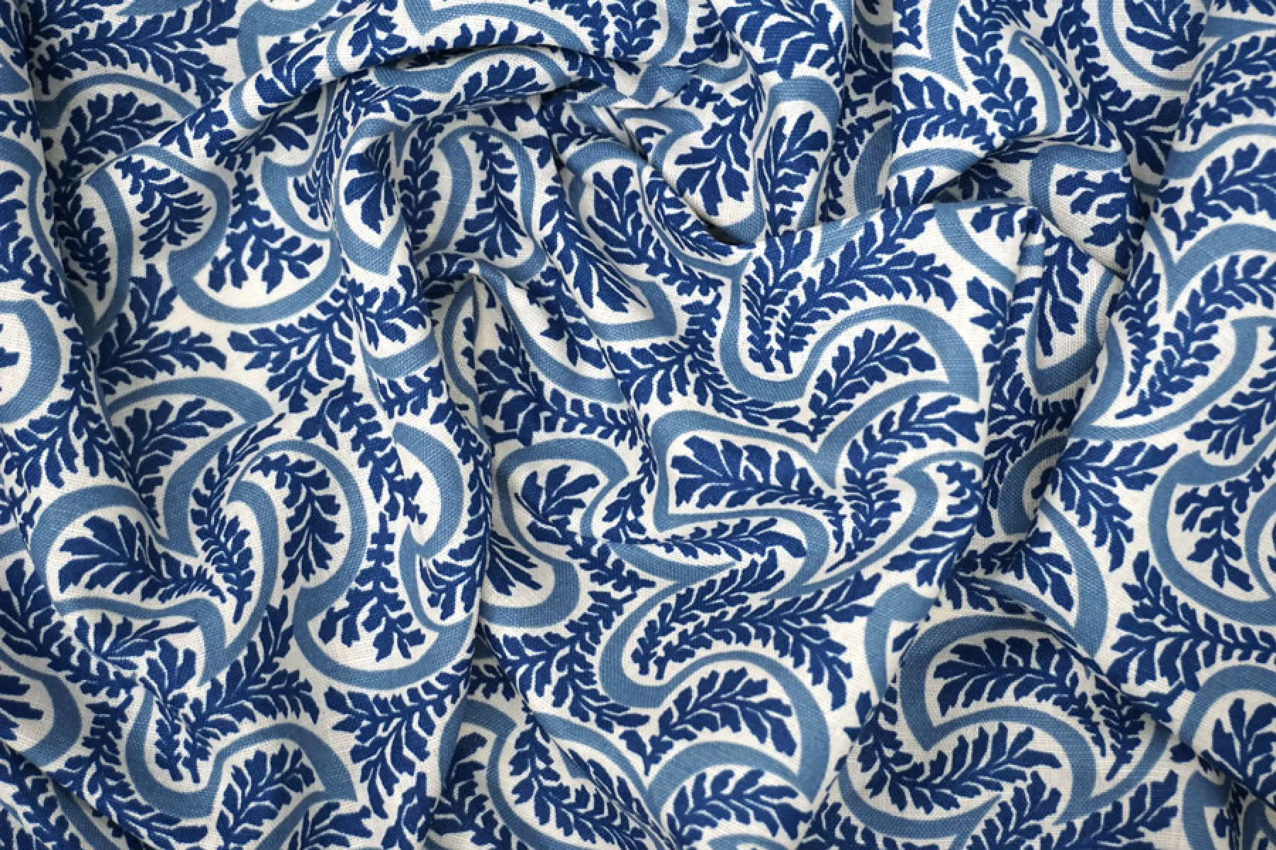 Костюмно-плательный лён с хлопком от бренда Max Mara в сине-молочный орнамент в виде растений. Не тянется, не просвечивает. Плетение напоминает рогожку. Материал гладкий, немного жестковатый, с красивым матовым лоском. Держит форму, при этом достаточно пластичный. Отличный вариант для летнего изделия - платья, юбки, летнего костюма, сарафана, кимоно, рубашки.