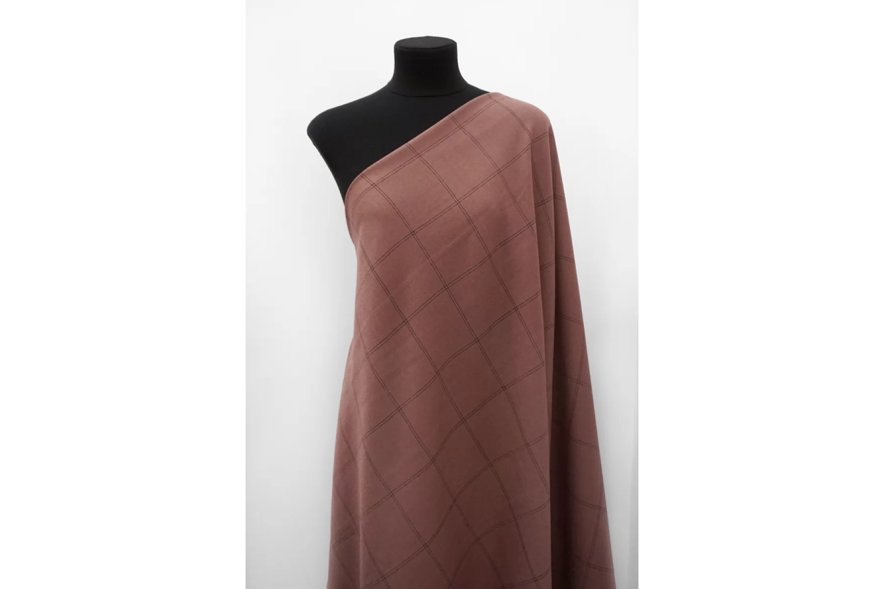 Костюмно-плательный лён с вискозой и шерстью в пыльно-розовом оттенке. Не тянется, не просвечивает плетение с фактурными льняными утолщениями. Держит форму, достаточно гладкий тактильно. Отличный вариант для летнего изделия - платья, юбки, летнего костюма, сарафана, кимоно, рубашки верхнего слоя.