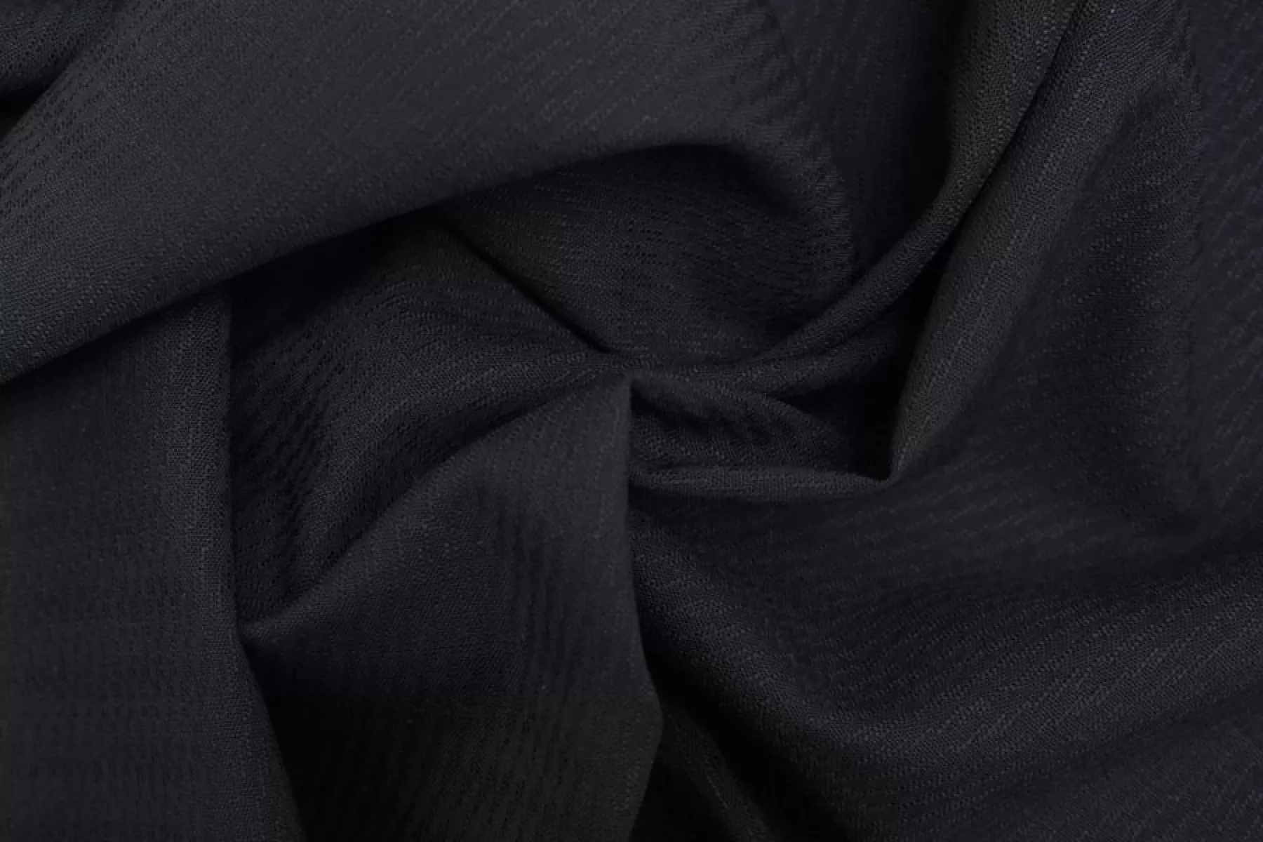 Прекрасная костюмно-плательная вирджинская шерсть в очень тёмном синем цвете, с жаккардовой выработкой. Тактильно гладкая, плотная, но достаточно тонкая. Чувствуется, что шерсть, при этом не колется. Минимально просвечивает силуэт в один слой. Хорошо тянется. Хорошо драпируется но при этом держит форму. Не мнется. Отличный вариант на костюмы, жакеты мягкой формы, платья, брюки, тёплые рубашки и не только. Уход за материалом деликатный.