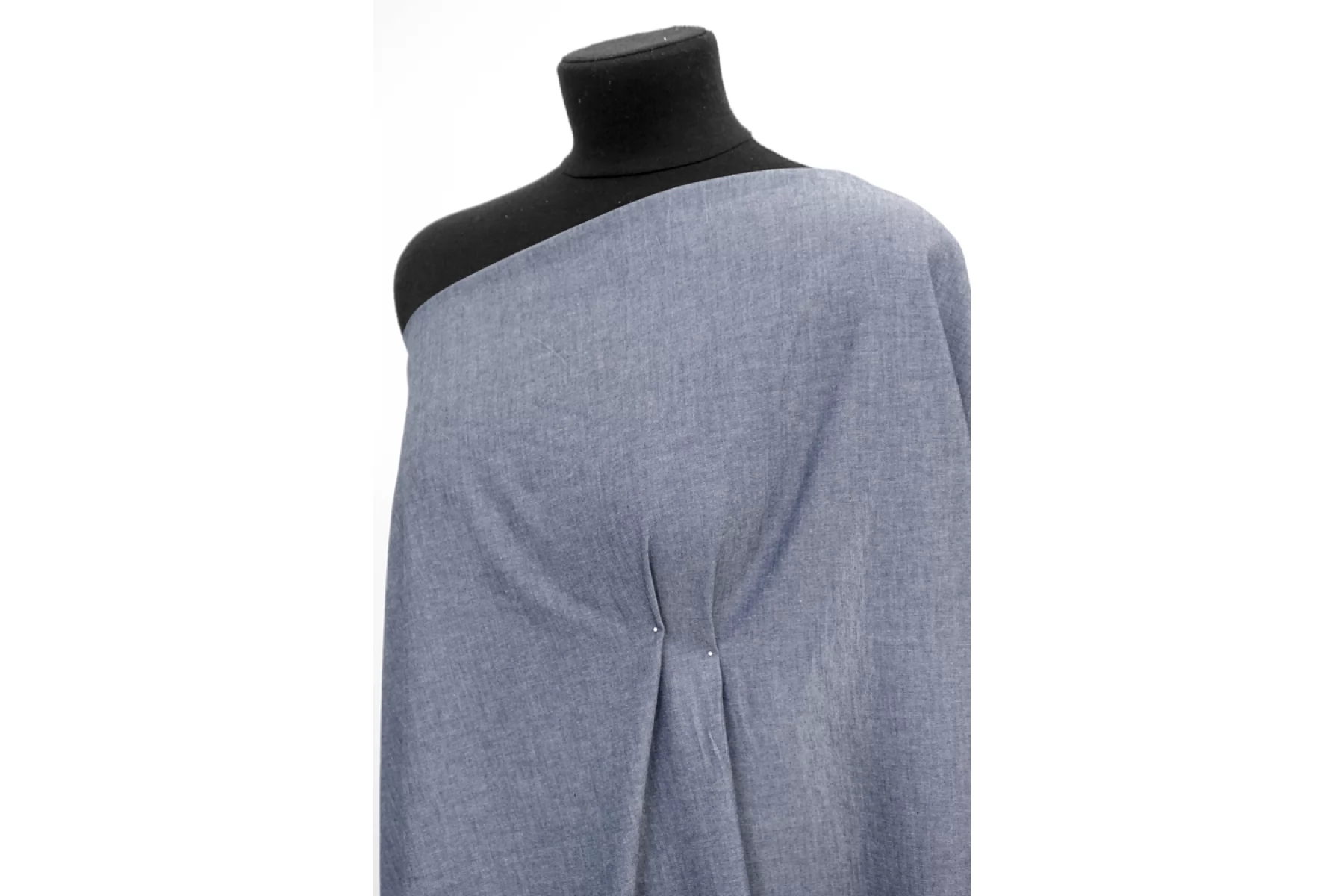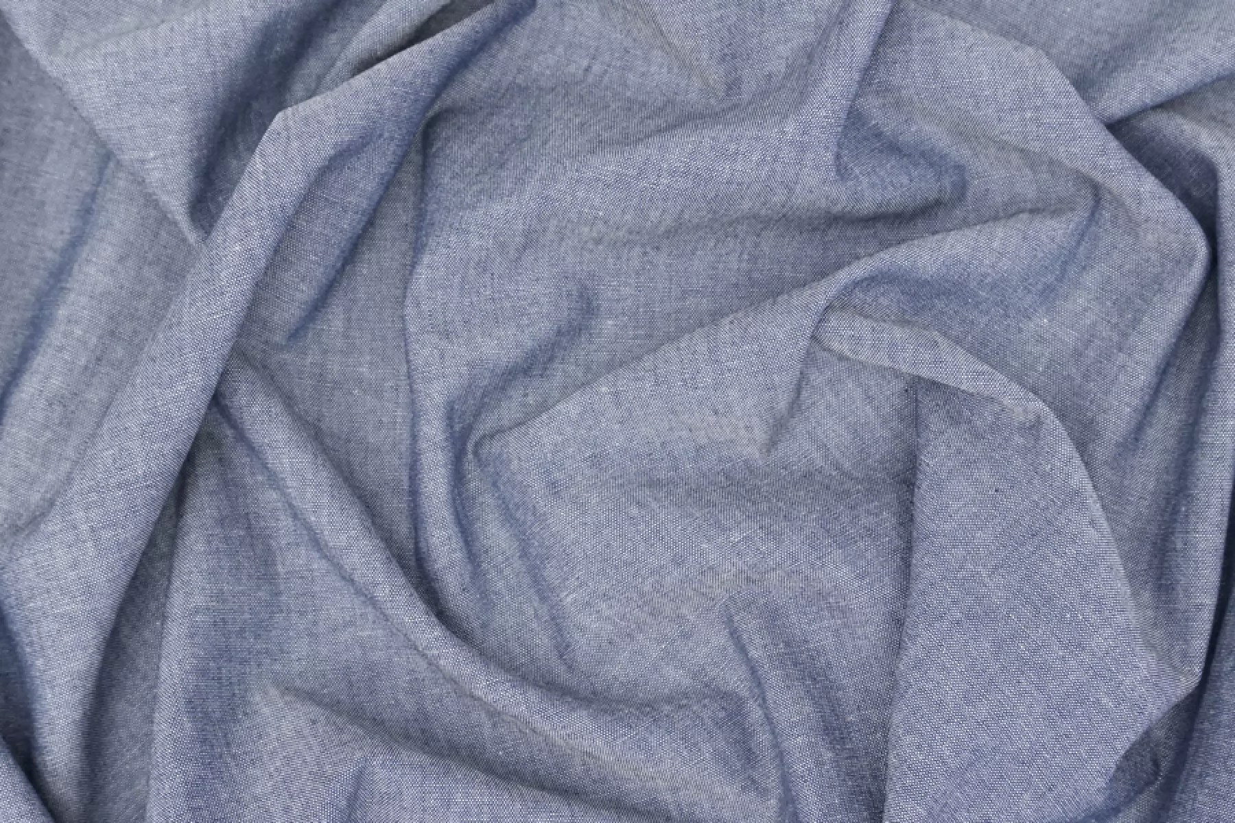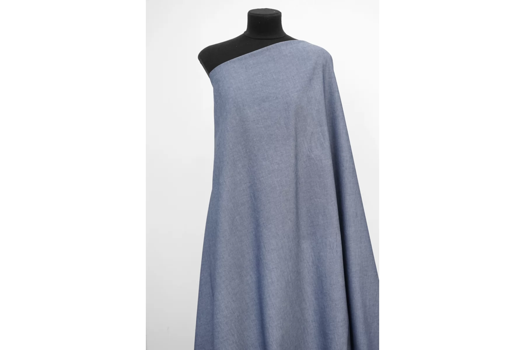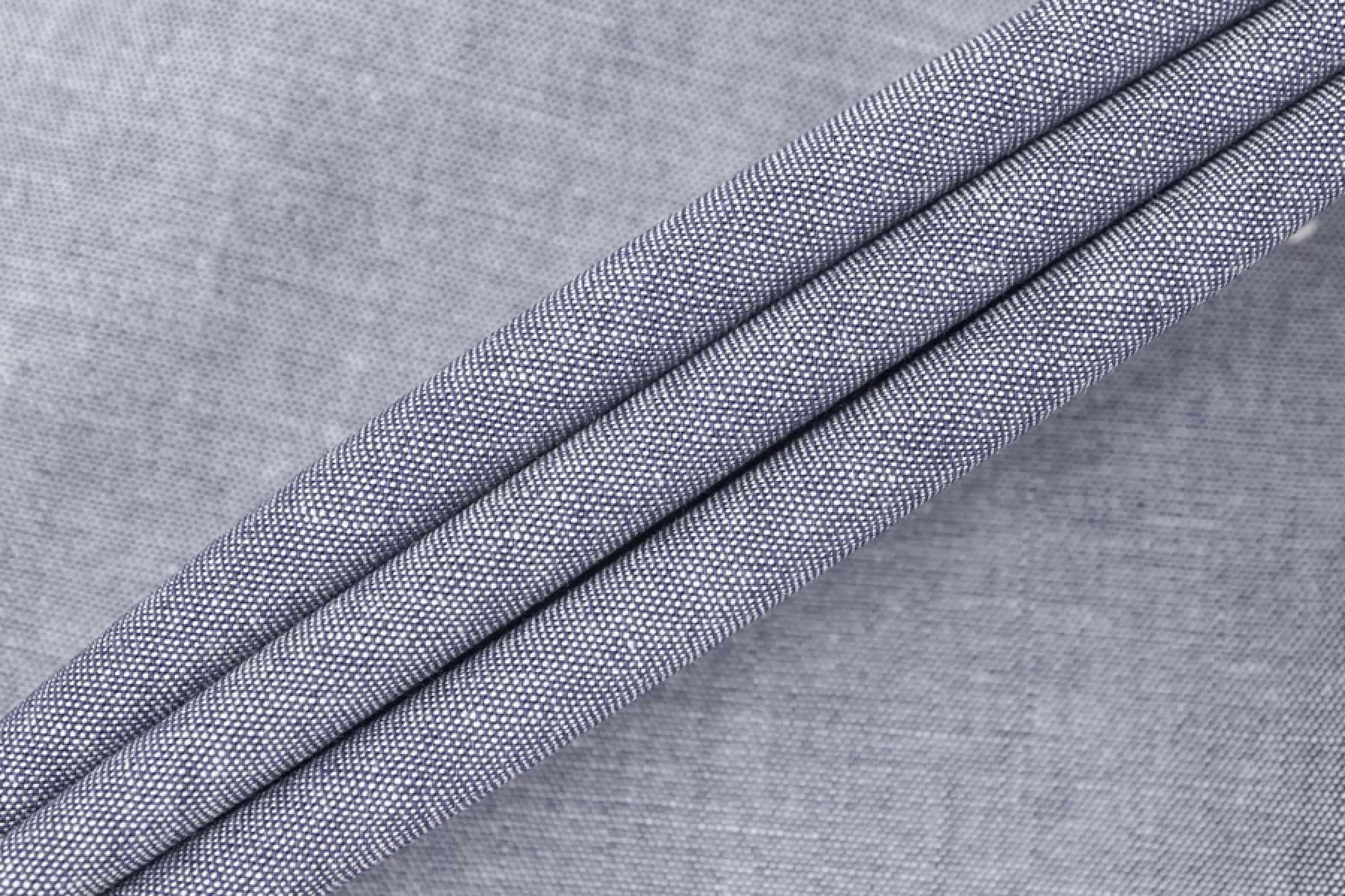 Итальянский костюмно-плательный хлопок, состоящий из переплетения сине-голубой и молочной нитей, цвет под джинсу. Без эластана, не тянется. Слегка просвечивает силуэт. Держит форму но при этом пластичный. Мягкий тактильно, совсем слегка суховатый. С красивым лоском. Мнется. Слегка просвечивает силуэт на просвет. Подойдет для пошива костюма мягкой формы, платья, брюк, юбок, рубашек, комбинезонов и других вариантов