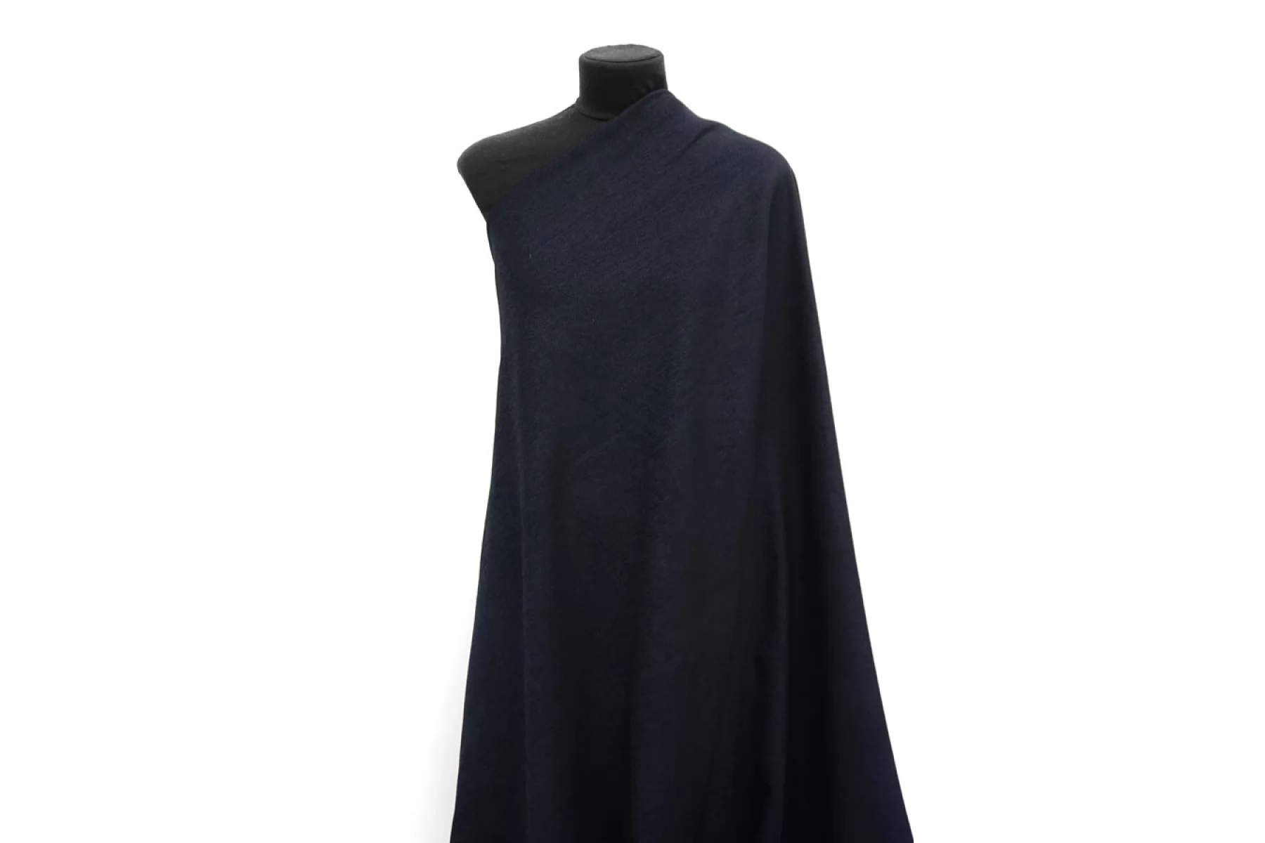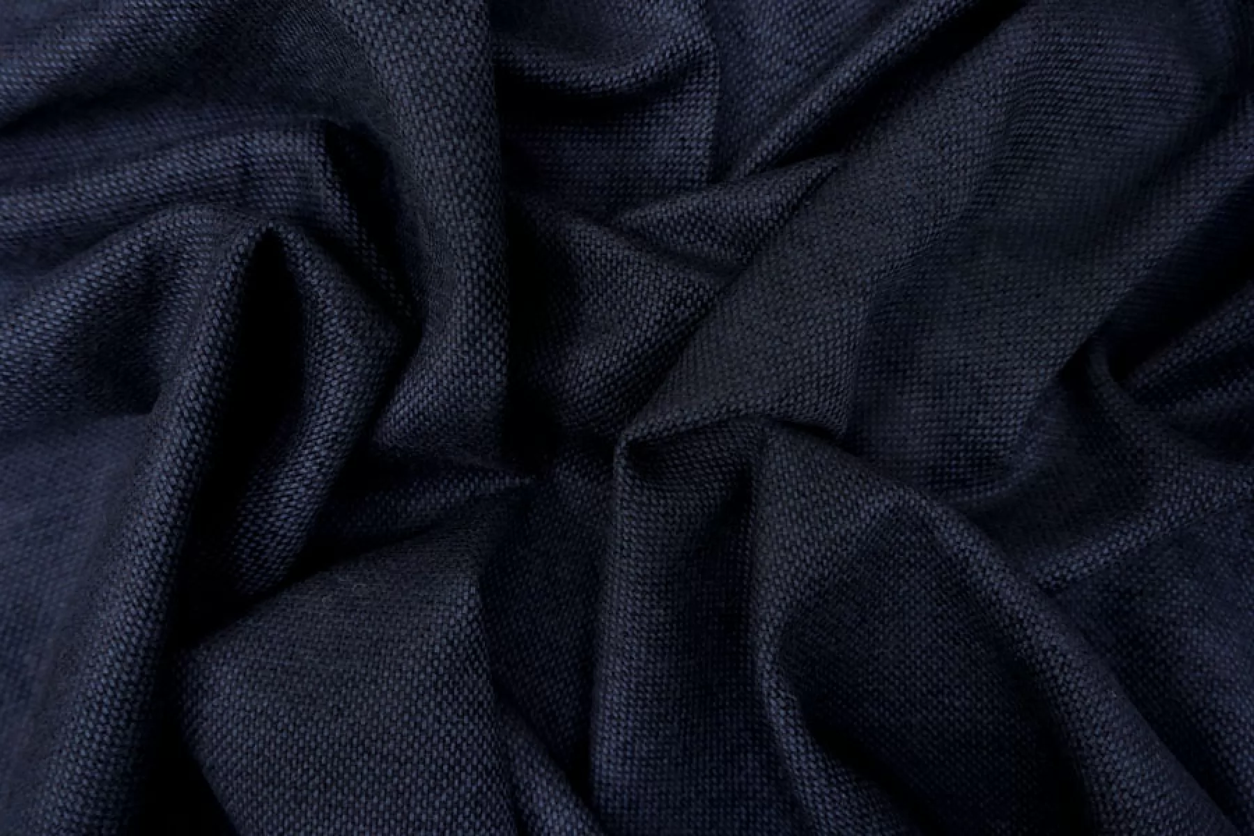 Костюмный хлопок-рогожка шенилловая синего цвета. Тактильно ощущается фактура плетения. Материал очень приятный и мягкий наощупь, с легким велюровым ворсом. Отлично драпируется и неплохо держит форму. Не просвечивает силуэт на просвет. Не мнется. Подойдет для пошива брюк, платья, юбки, жакета, кардигана и костюма.