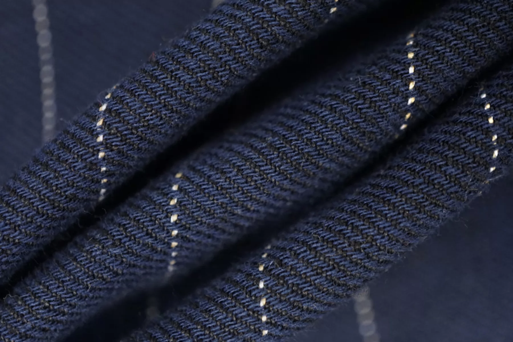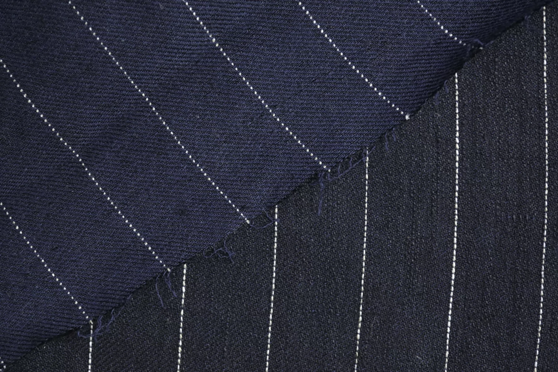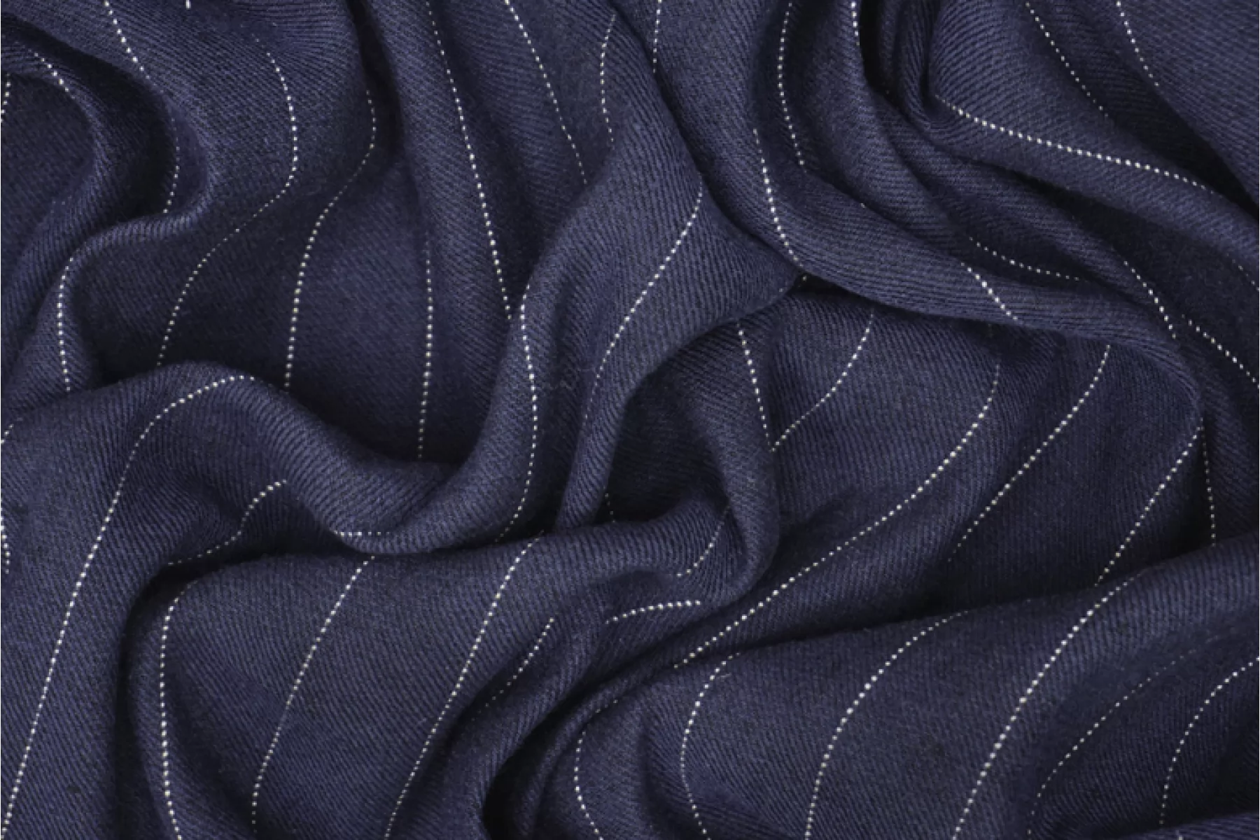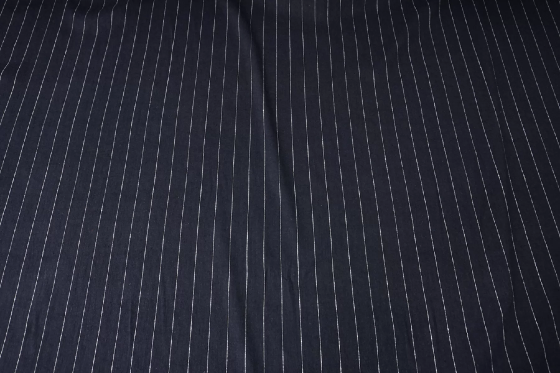 Костюмный лён, диагонального плетения, от FORTE FORTE переплетения нитей темно-синего оттенка и черного ( черный заметен между диагоналями) с вплетением молочной нити с бежевыми вкраплениями , что создает рисунок полоски. Расстояние между нитями, образующими полоску, ~2,7 мм. Обратная сторона черного припыленного оттенка. Материал тактильно приятный и мягкий, слегка шероховатый за счет плетения. Плотненький и достаточно толстенький. Не тянется. Не просвечивает, но если смотреть прямо на просвет, слегка заметен силуэт. Хорошо драпируется, форму практически не держит. Сминается. Отличный вариант на костюмы, жакеты, брюки на резинке и не только.
