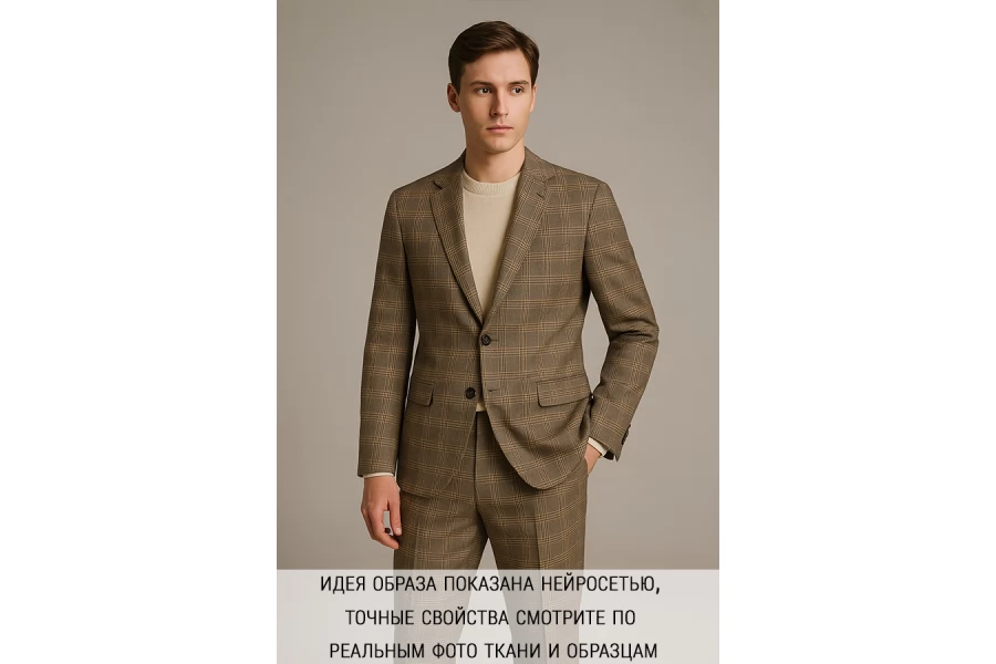 Шикарная позиция - костюмный лён с шерстью от Gucci, с узором клеткой-гленчек, нити черного, светло-бежевого и бежевого цвета. Тактильно ткань суховатая, чувствуется и шерсть и лен. Не просвечивает, не тянется, форму держит. Используем для пошива костюмов, зимних платьев и юбок. При необходимости используйте подкладочный материал.