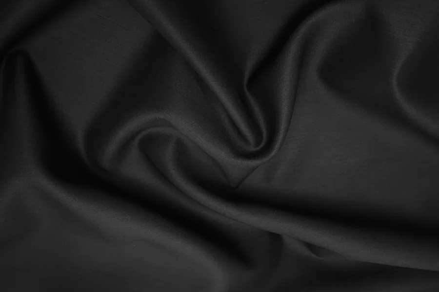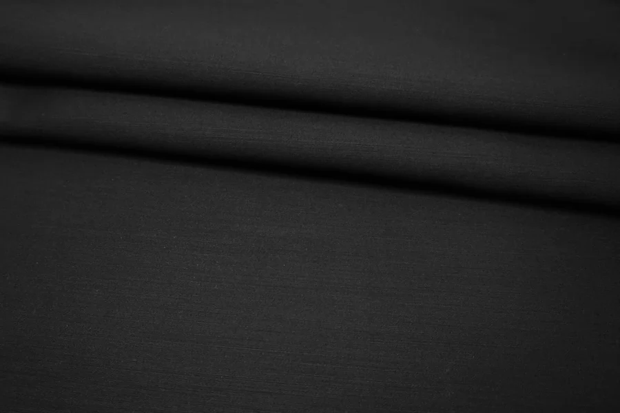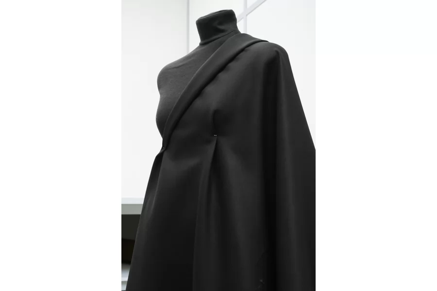 Прекрасная итальянская вирджинская шерсть с добавлением шёлка в иссиня-черном цвете. Плотность костюмная, пластика напоминает органзу. Тактильно чуть покалывает. При необходимости используйте подкладочный материал, для более комфортной носки. Материал имеет красивый мягкий блеск. Не тянется, образует упругие объемные складки. Немного мнется. Подойдет для пошива жакета, интересного отрезного платья. Уход деликатный