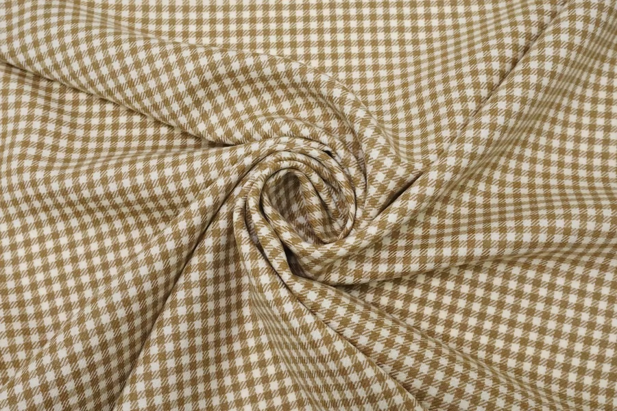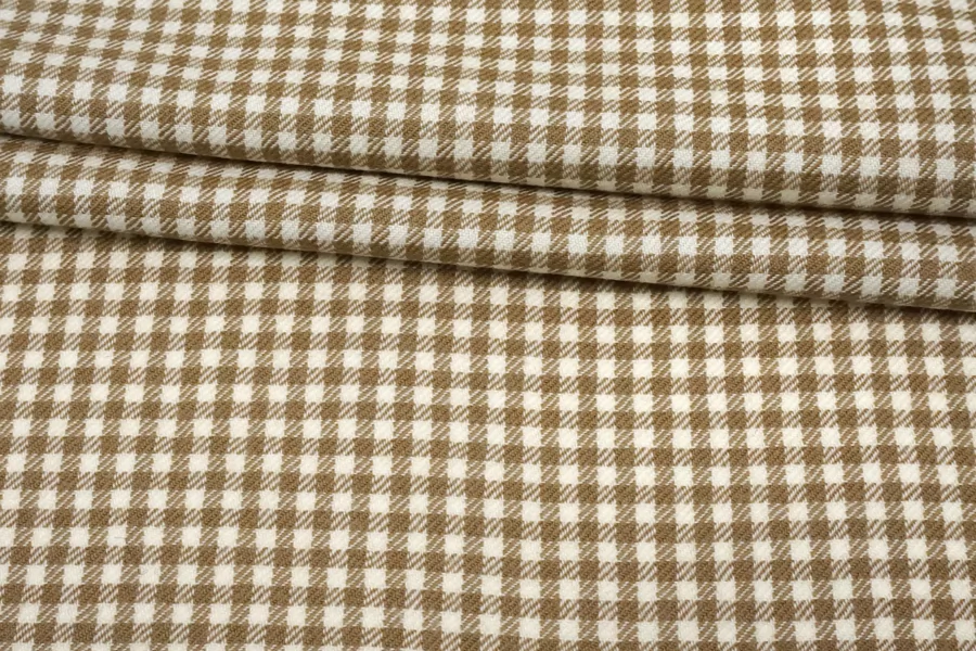 Твид костюмный шерстяной Гусиная лапка и клетка Бело-бежевый BNC H68/5 jj30 30102539