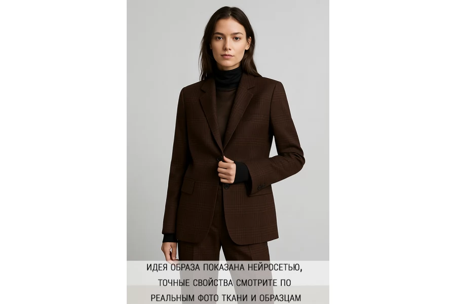 Классный костюмный шерстяной твид винно-зеленого оттенка в крупную клетку. Тактильно суховатый, шероховатый. С очень легким ворсом. Колется. Пластичный, форму держит. Не мнется, просвечивает силуэт на просвет и немного тянется. Прекрасно подойдет на костюмы, юбки и не только. Уход - деликатный.