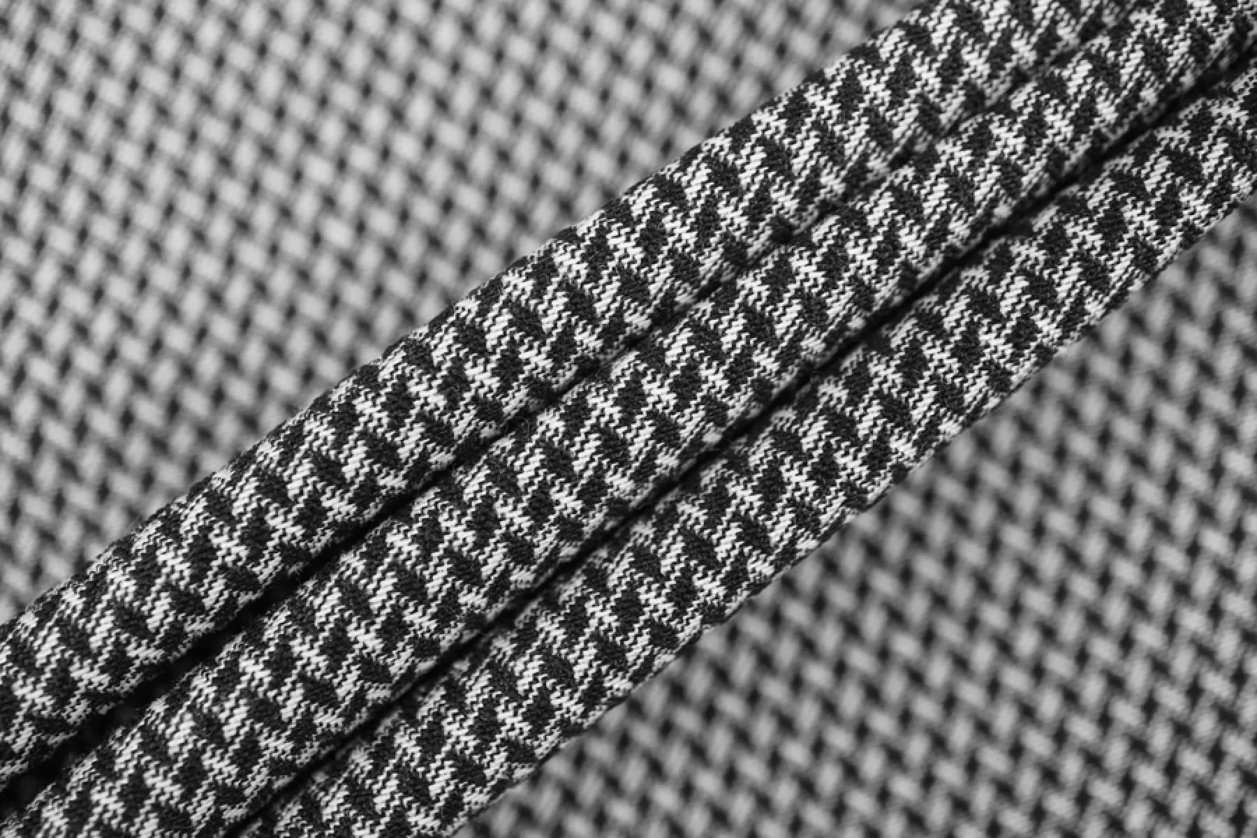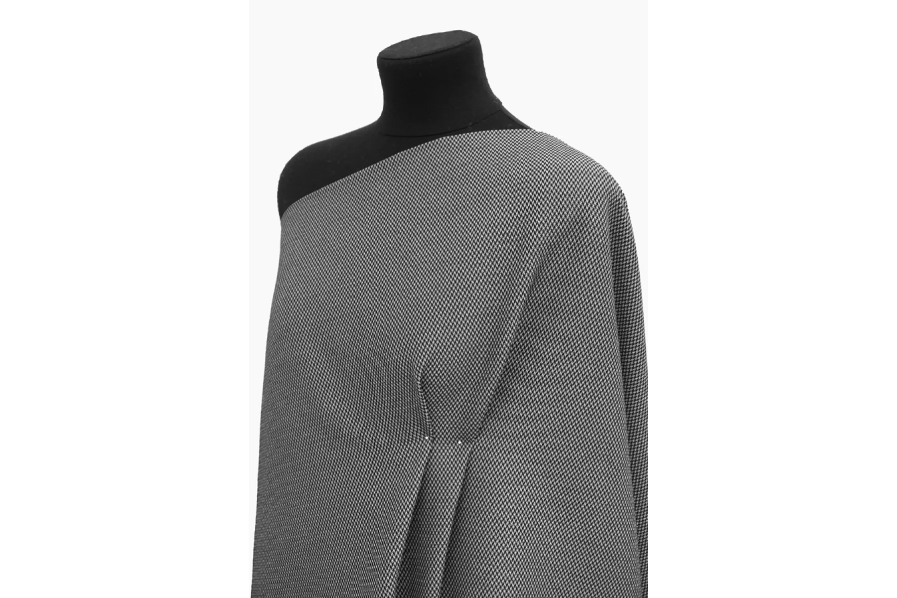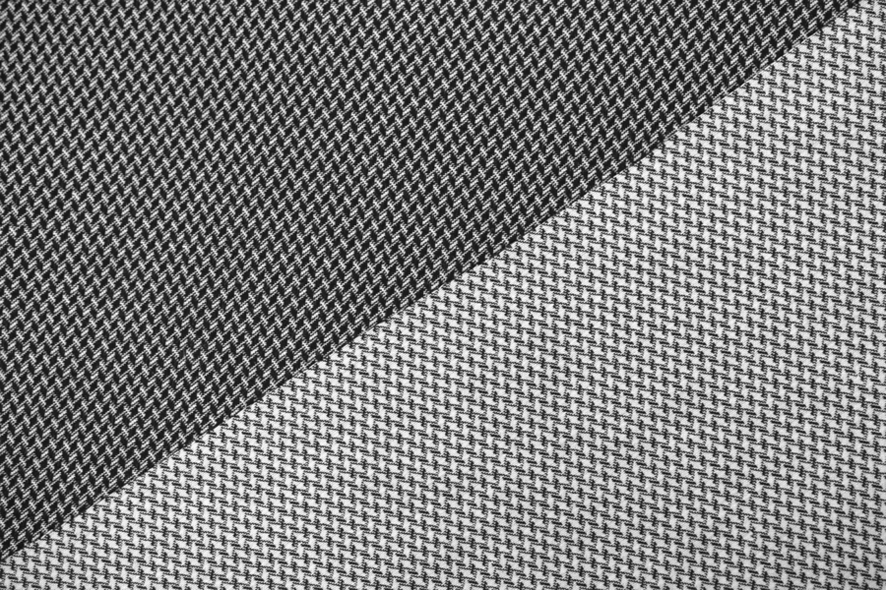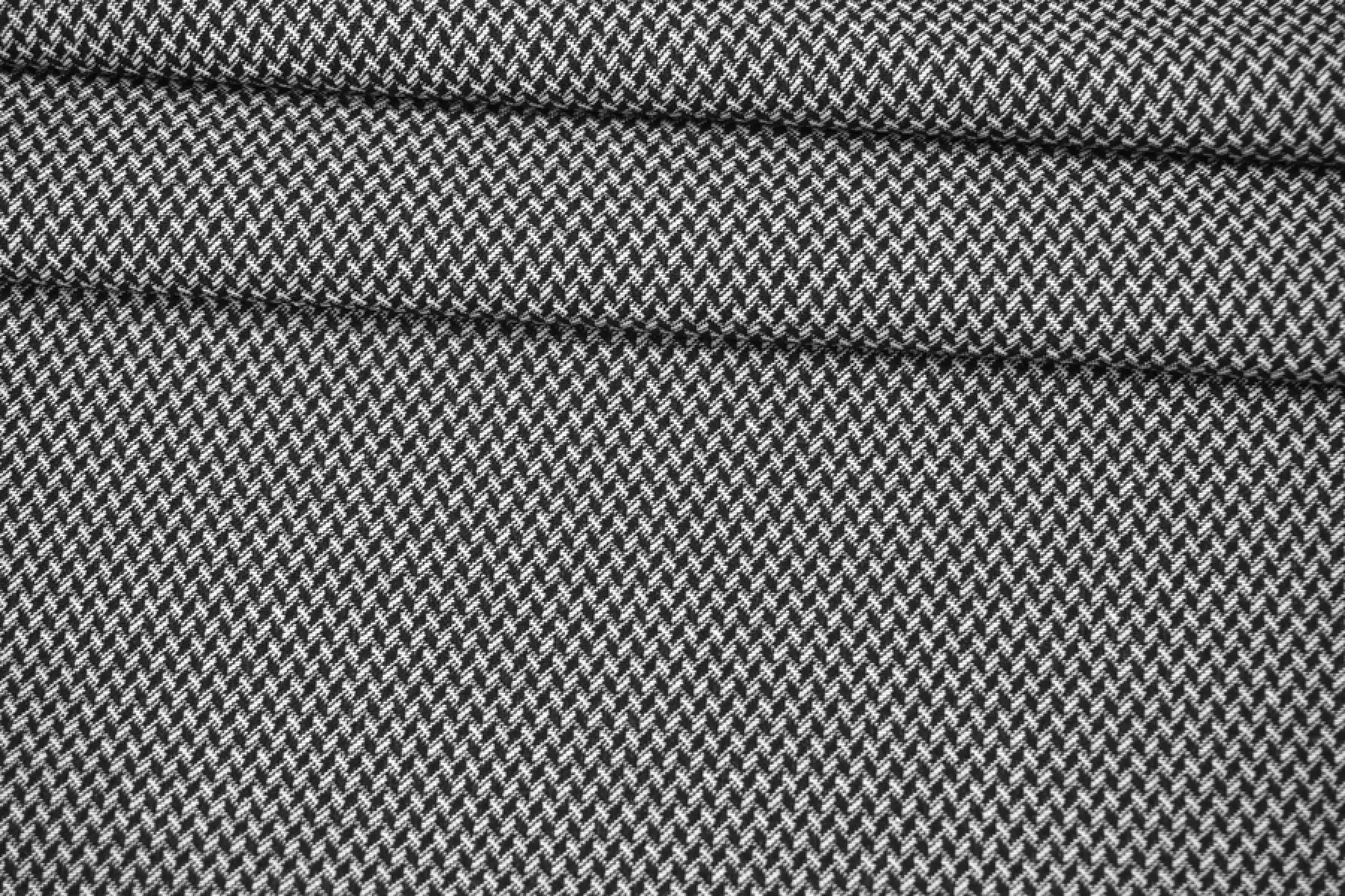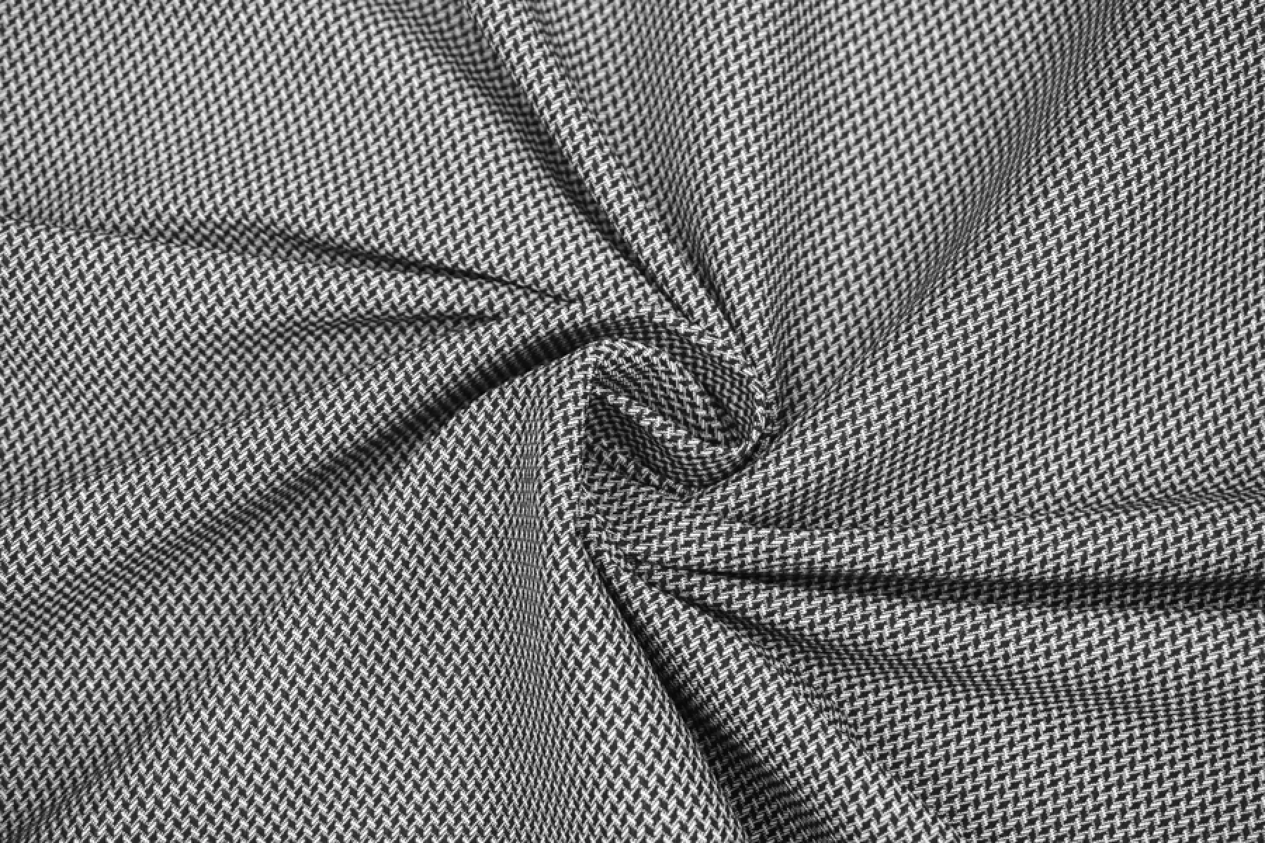 Хлопковый жаккард в черно-белой расцветке с содержанием эластана, что позволяет материалу хорошо тянуться. Обратите внимание, что материал тянется по долевой! Поэтому выкраиваем поперек. Лицевая сторона ткани фактурная с геометричной выработкой и смотрится очень интересно и стильно. Хорошо держит форму и красиво смотрится в складке. Сминаемый, но быстро восстанавливающийся. Подойдет на жакеты ,платья, юбки и другие костюмные варианты.
