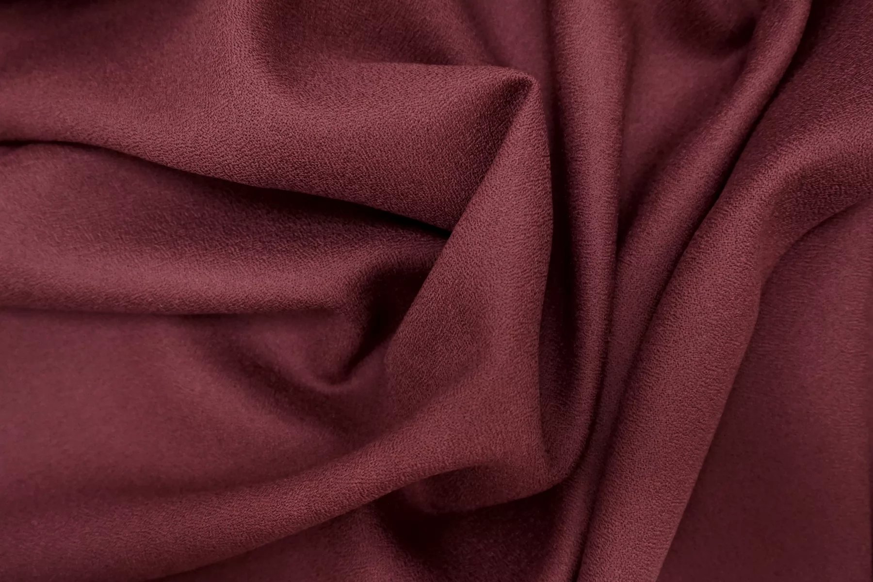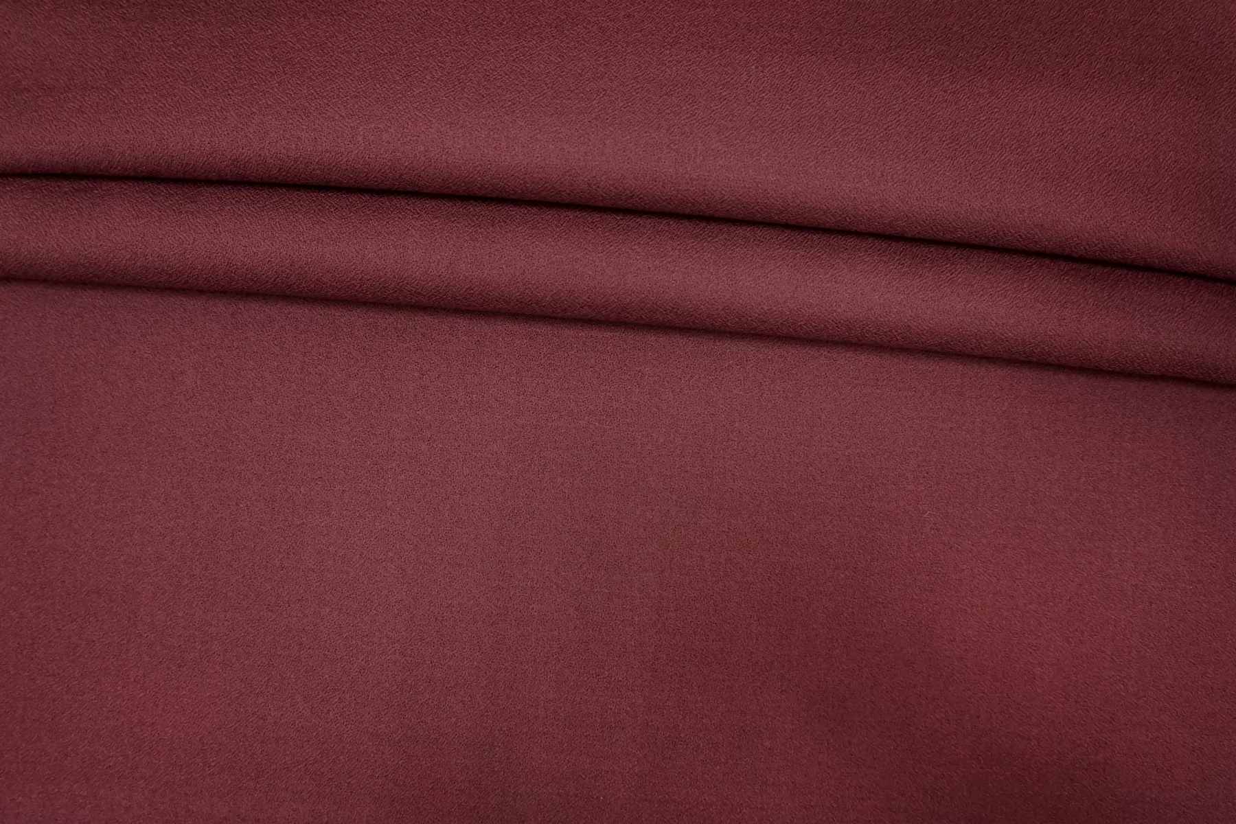 Итальянская костюмно-плательная шерсть крепового плетения, двухслойная но слои разделяются немного повреждаясь. Красивый ягодный оттенок (можно еще назвать светлым винным, с холодным подтоном). Материал суховатый и шероховатый тактильно. Пластичный, не просвечивает, не тянется. Форму держит. Подойдет на костюмы, платья, юбки, брюки, мягкие жакеты. Учитывайте возможную усадку. Уход деликатный.