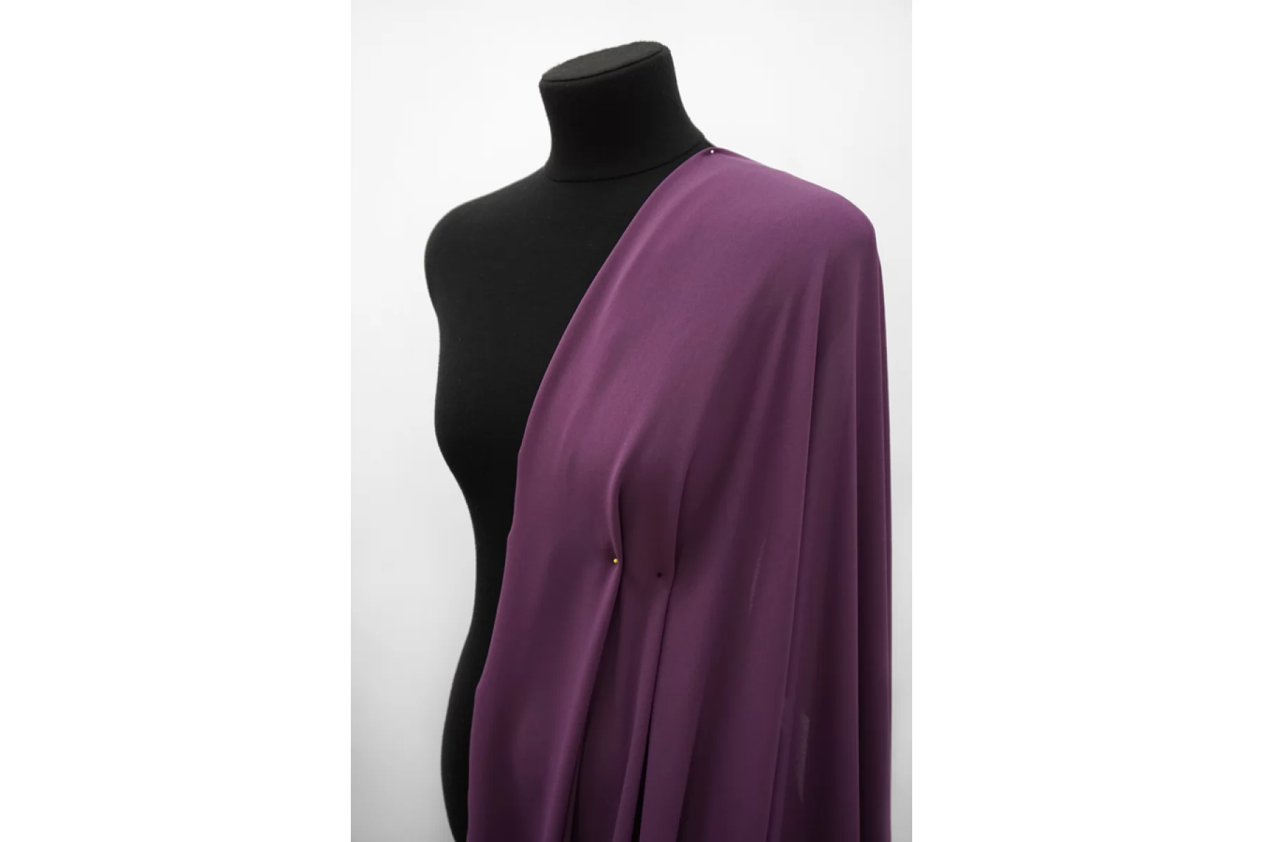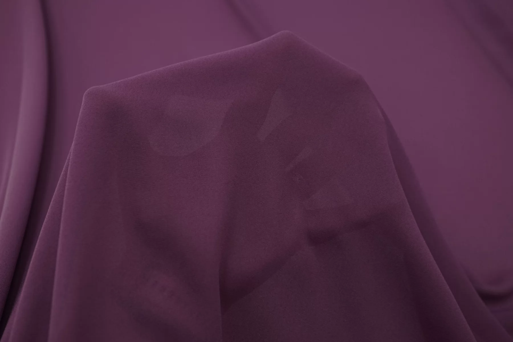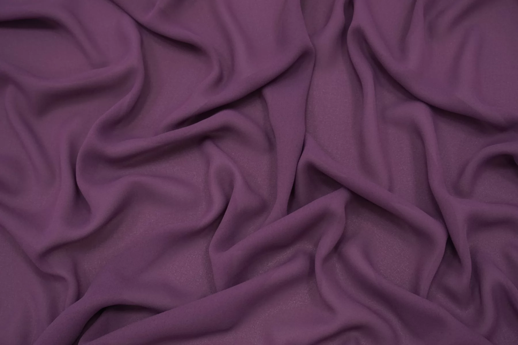 Креп-шифон синтетический в фиолетово-сливовом оттенке, тонкий, пластичный, с шероховатой поверхностью, плетение немного тянется. Прекрасно подойдет для платья, блузки или юбки, накидки, красивого многослойного изделия.