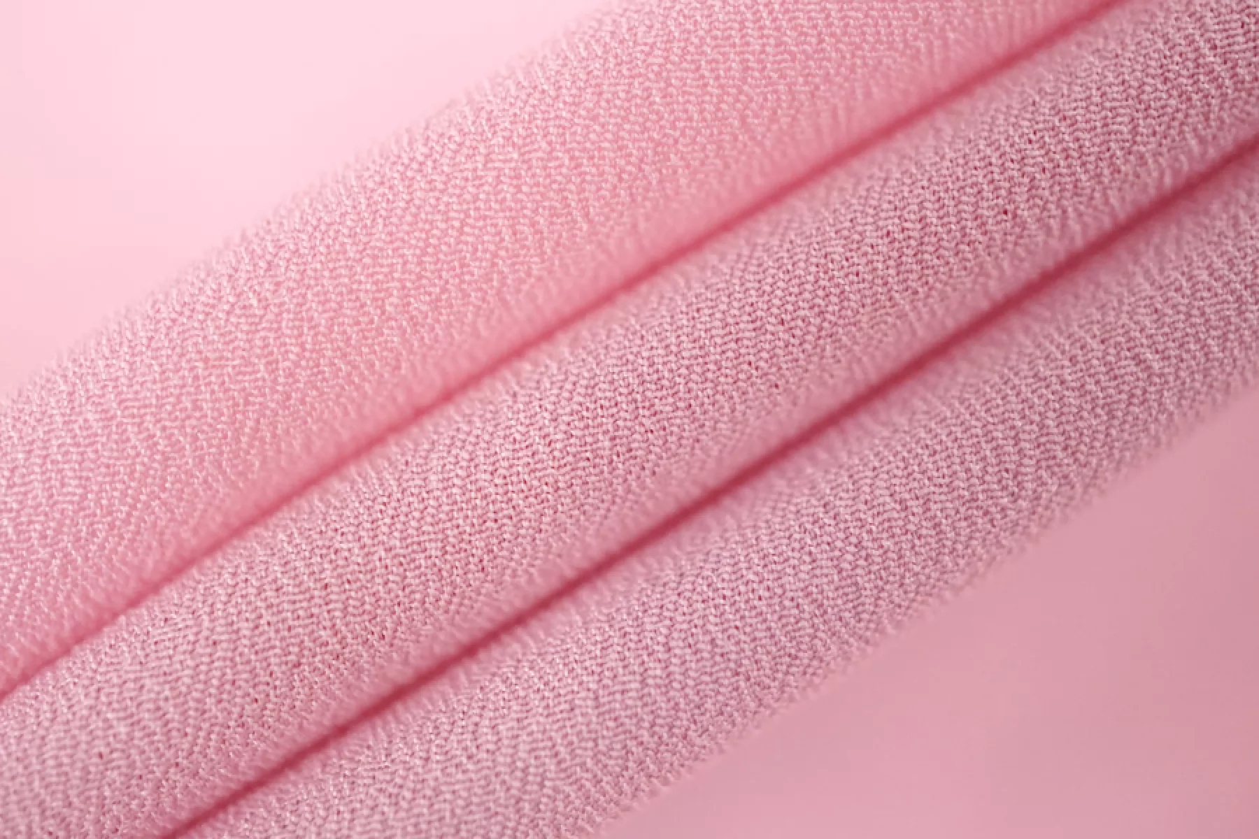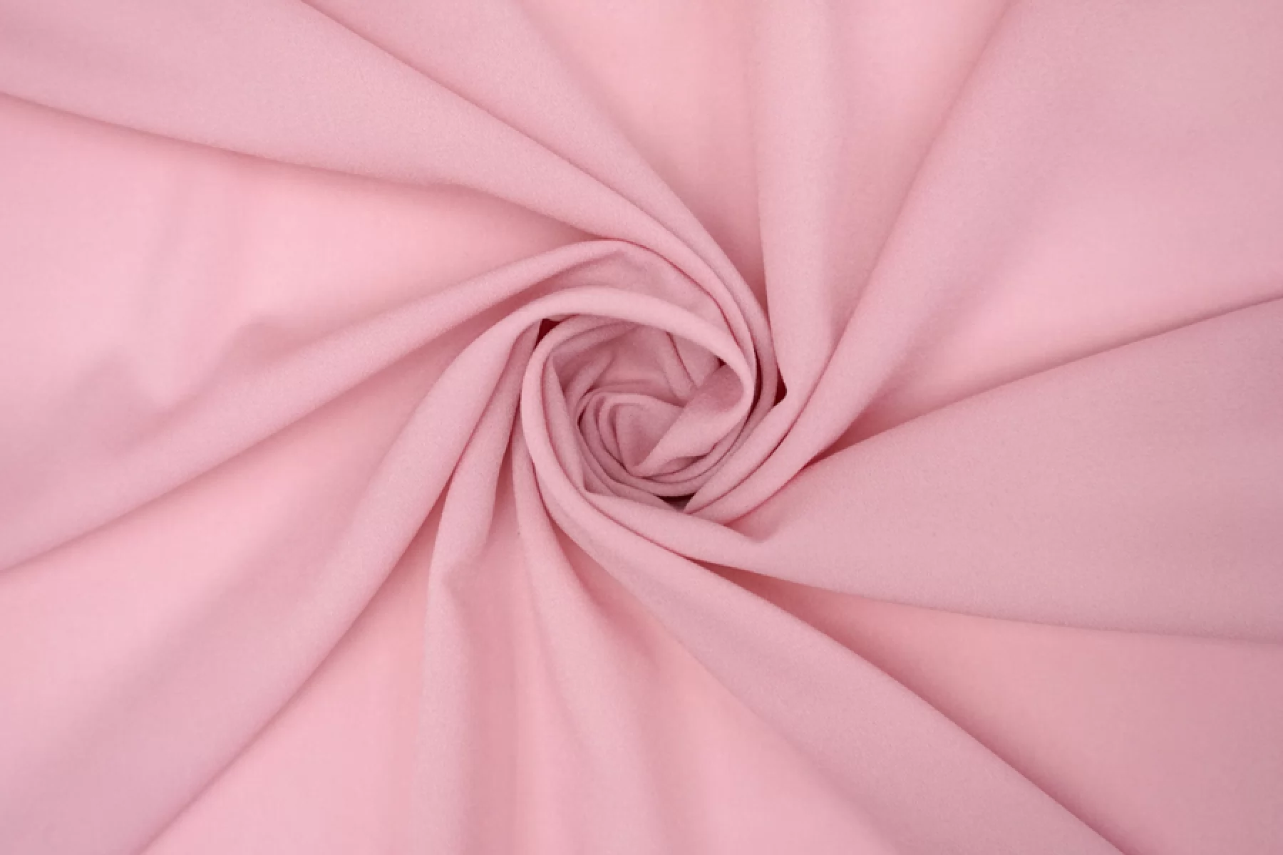 Плательно-блузочный стрейчевый крепдешин в нежно-розовом оттенке. Обладает легкой шероховатой поверхностью с легким лоском. Тактильно мягкий и приятный. Тонкий, пластичный, легкий. Просвечивает силуэт. Прекрасно подойдет для платья, блузки или юбки, накидки, красивого многослойного изделия.