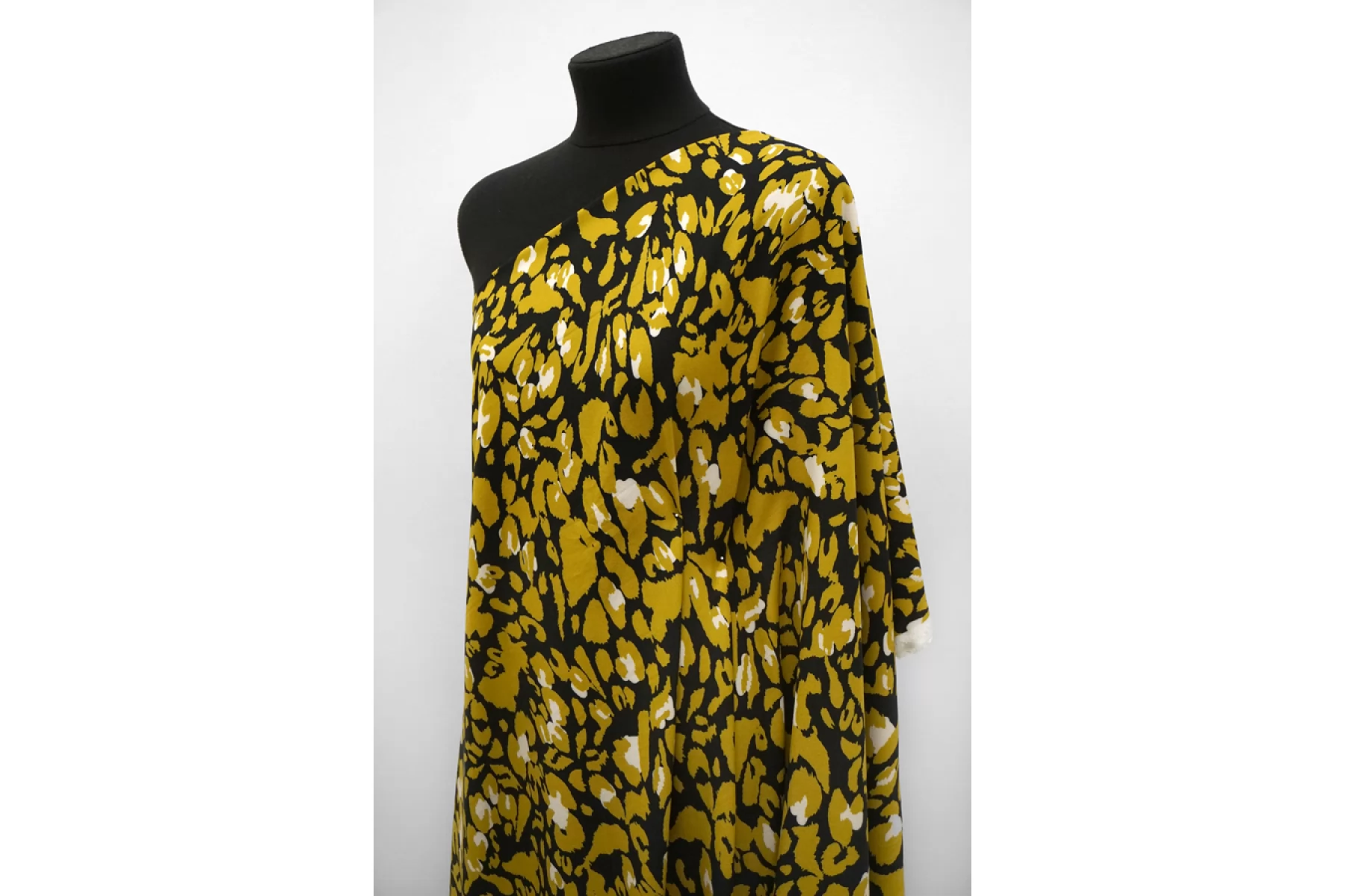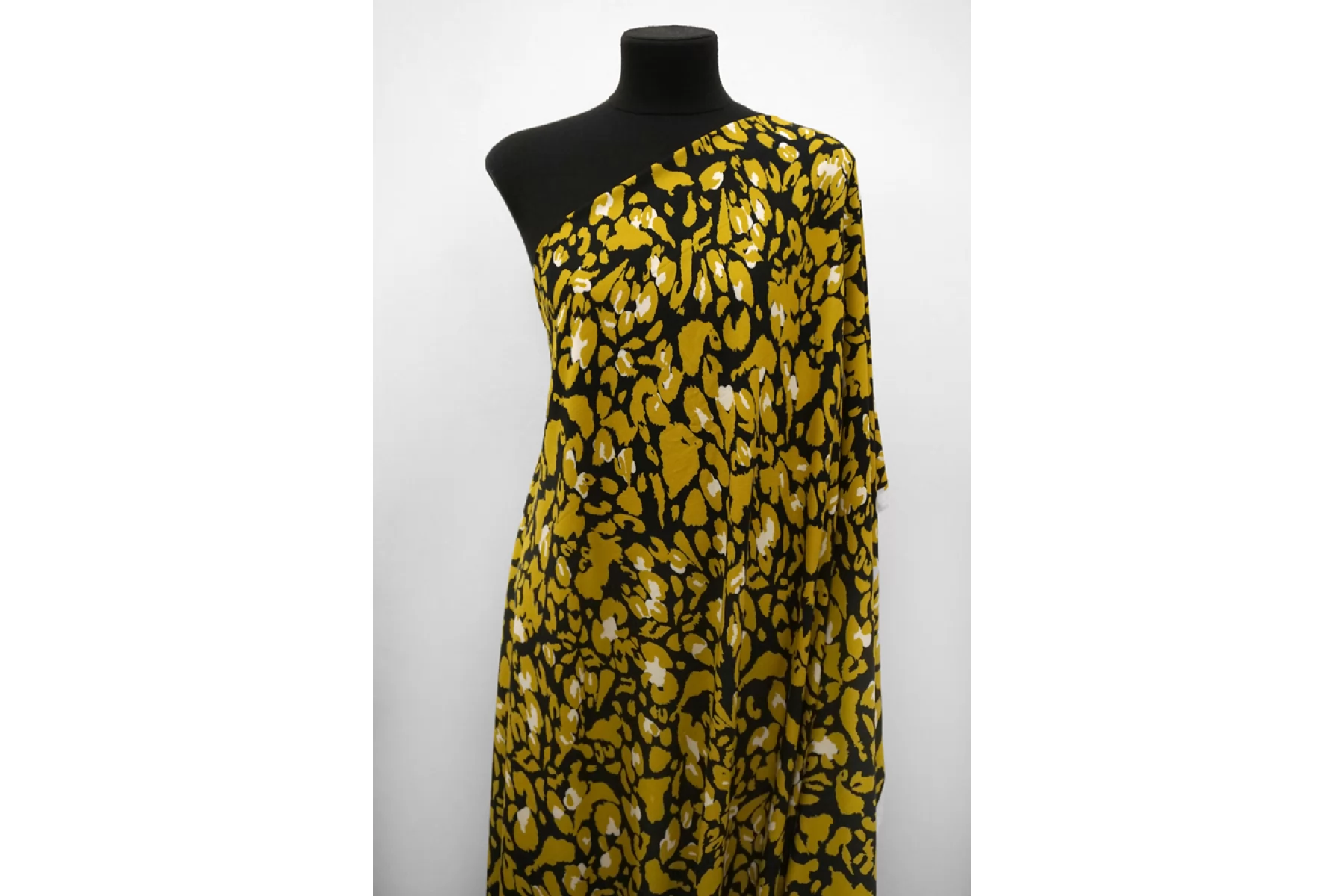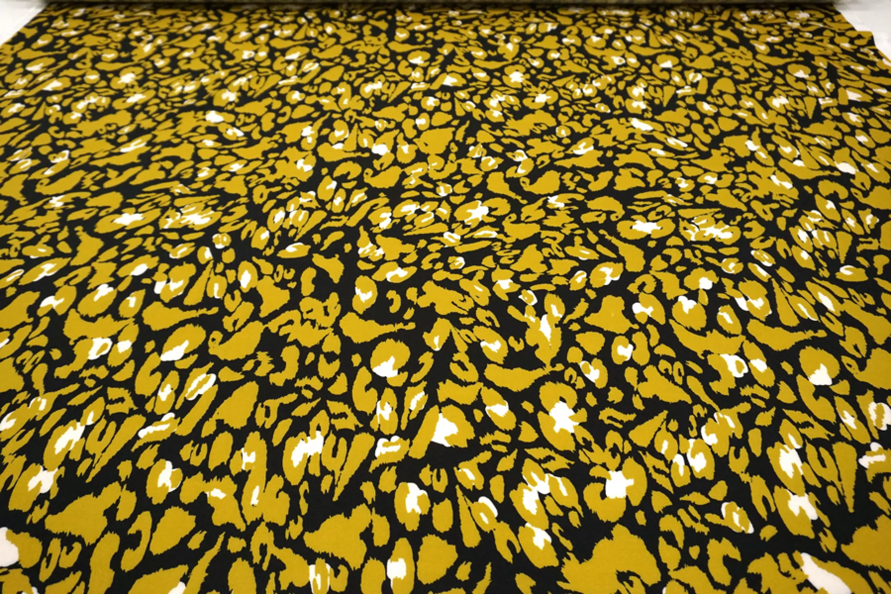 Креп вискозный абстракция на горчичном фоне MII H21/11 I50 05082117