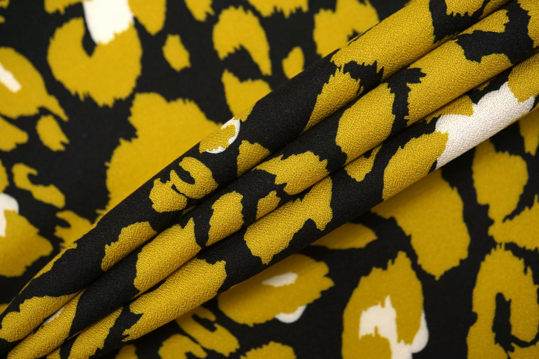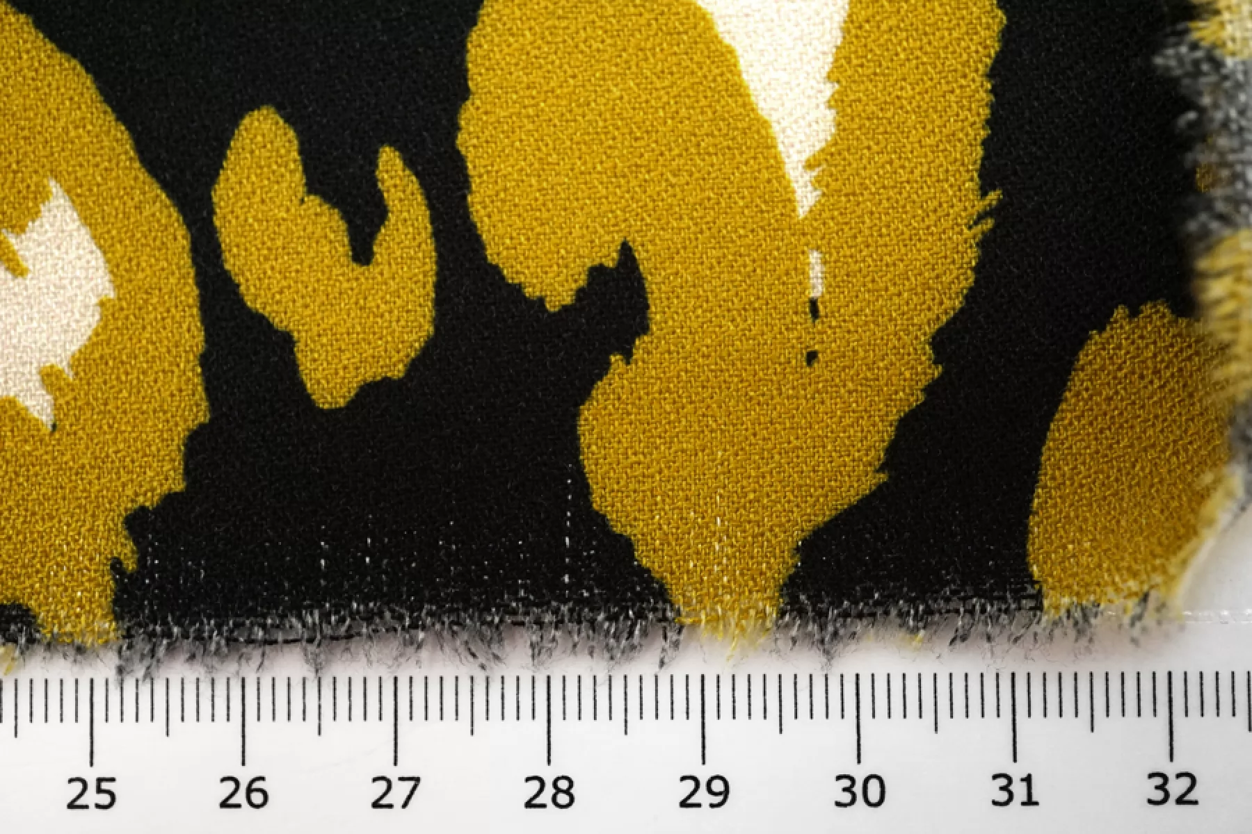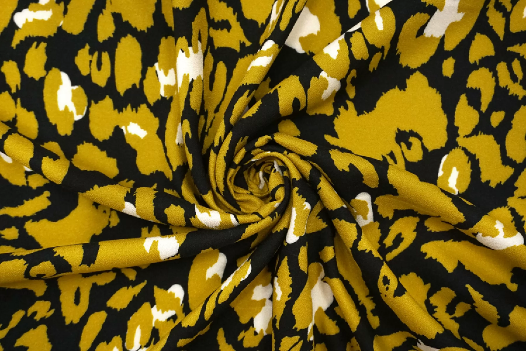 Креп вискозный абстракция на горчичном фоне MII H21/11 I50 05082117