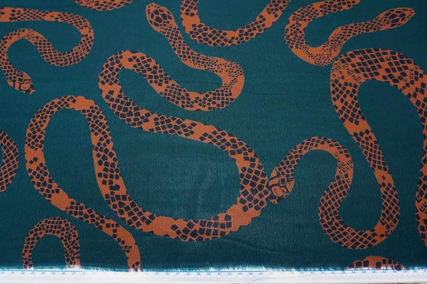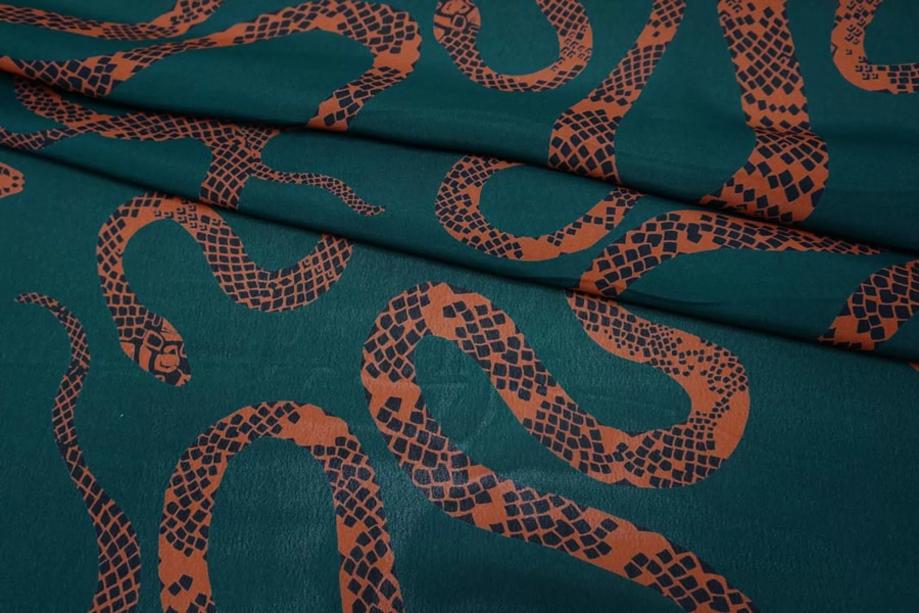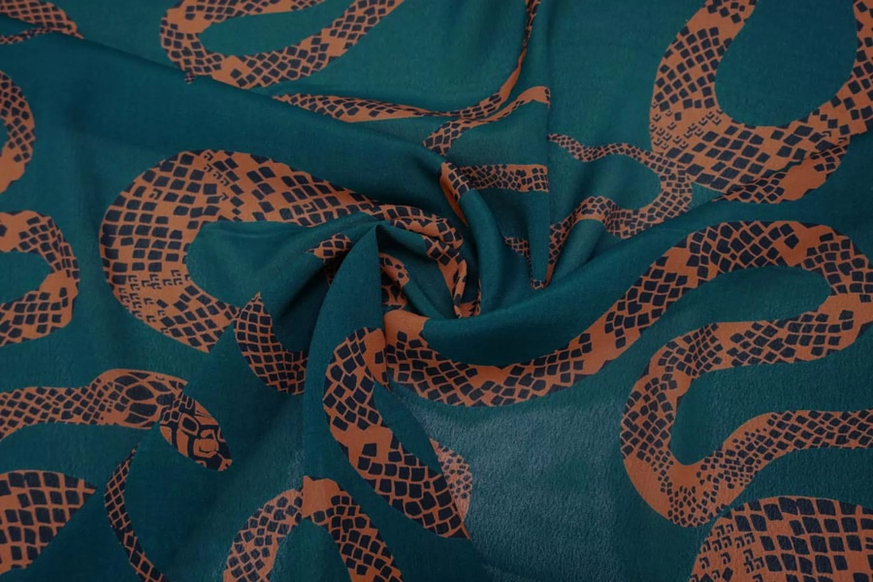 Вискоза креповая плательно-блузочная Змеи на тёмно-бирюзовом INS H21/7 H70 16052502