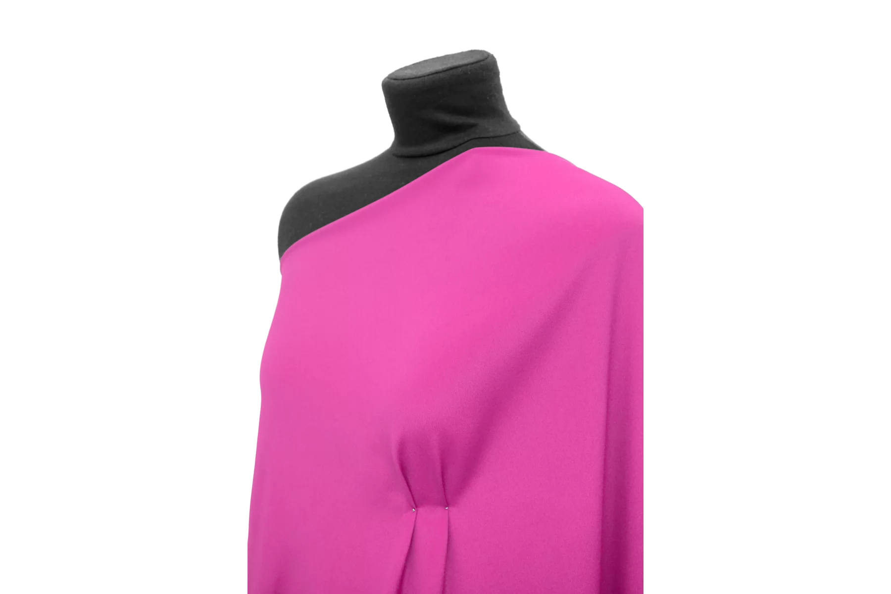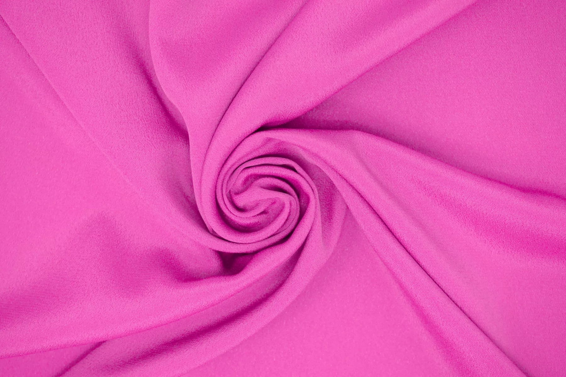 Крепдешин, плательно-блузочный по плотности, шелк с ацетатом оттенка фуксии. Тактильно слегка шероховатый, легкий и воздушный. Не тянется, но хорошо пружинит за счет плетения. Красив в своей пластике и в складках. Немного виднеется силуэт на просвет. Отлично подойдет на платья, юбки, туники и блузки. Уход - деликатный.