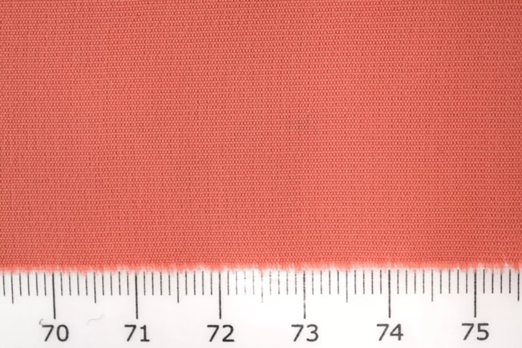 Крепдешин, плательно-блузочный по плотности, шелк с ацетатом, сложного пудрово-терракотового оттенка. Тактильно гладкий, но совсем слегка шероховатый, очень мягкий и приятный. Легкий и струящийся. Не тянется. С легким лоском. Есть слегка заметный муарный эффект. Красив в своей пластике и в складках. Слегка заметно просвечивает силуэт. Отлично подойдет на платья, юбки, туники и блузки. Уход - деликатный.