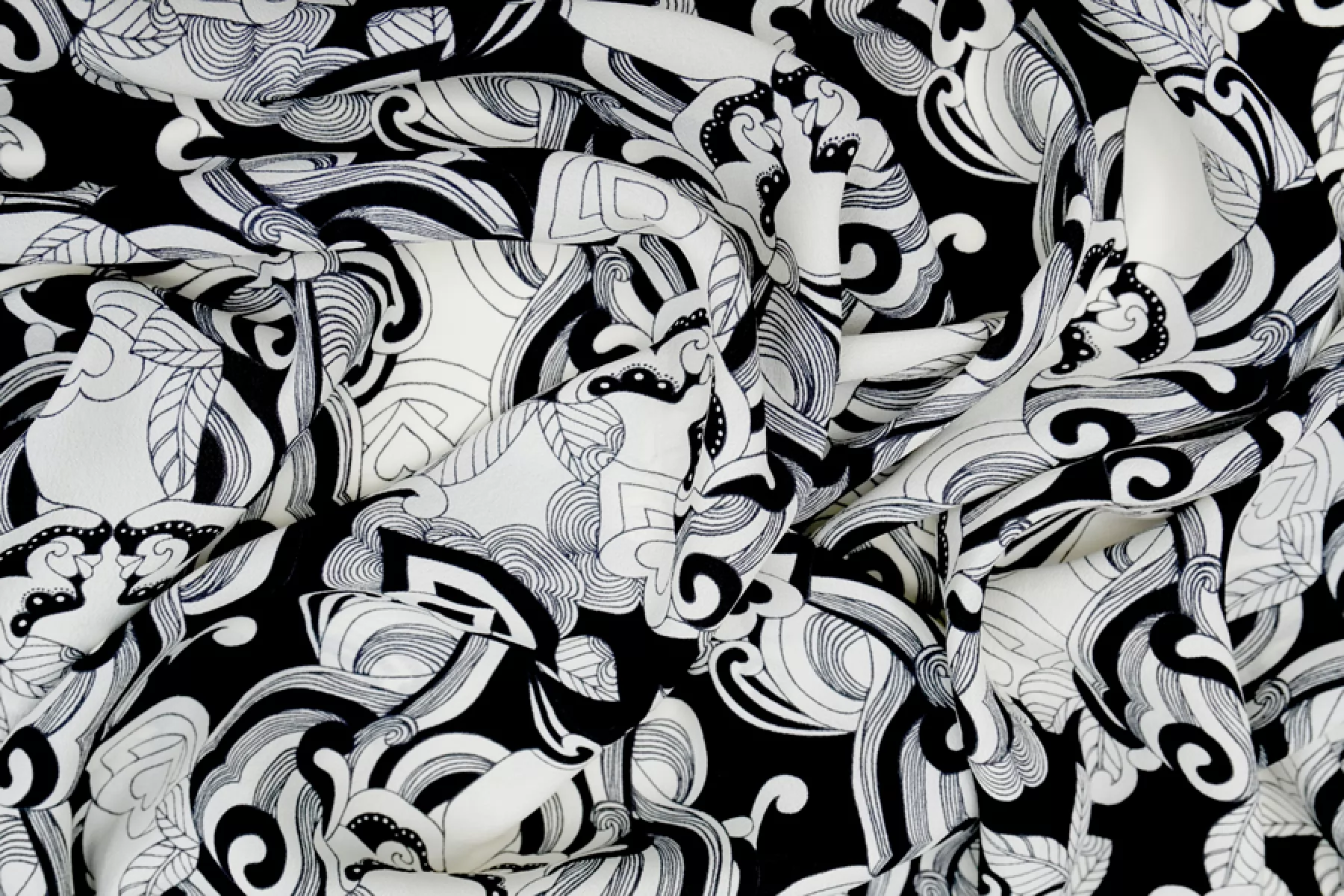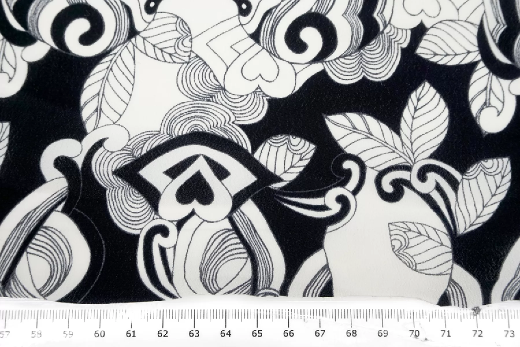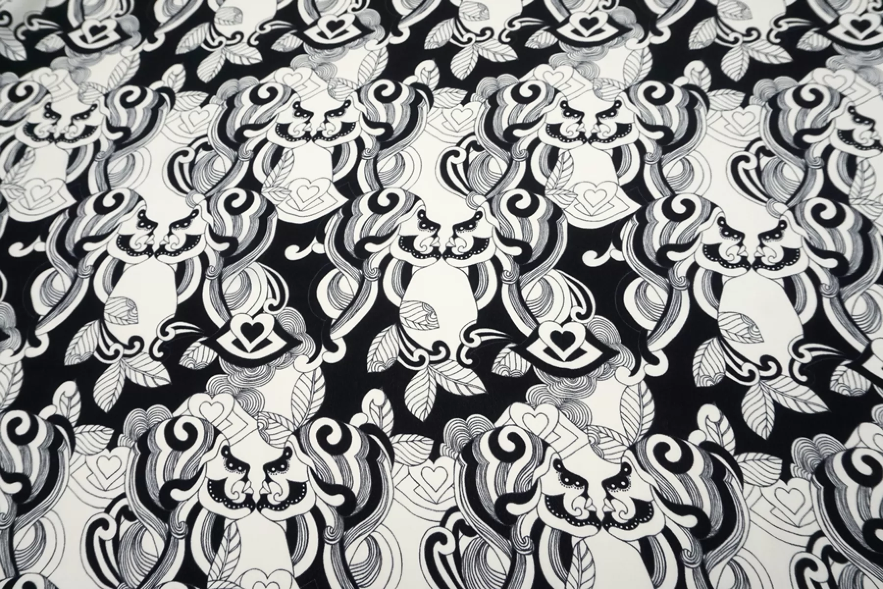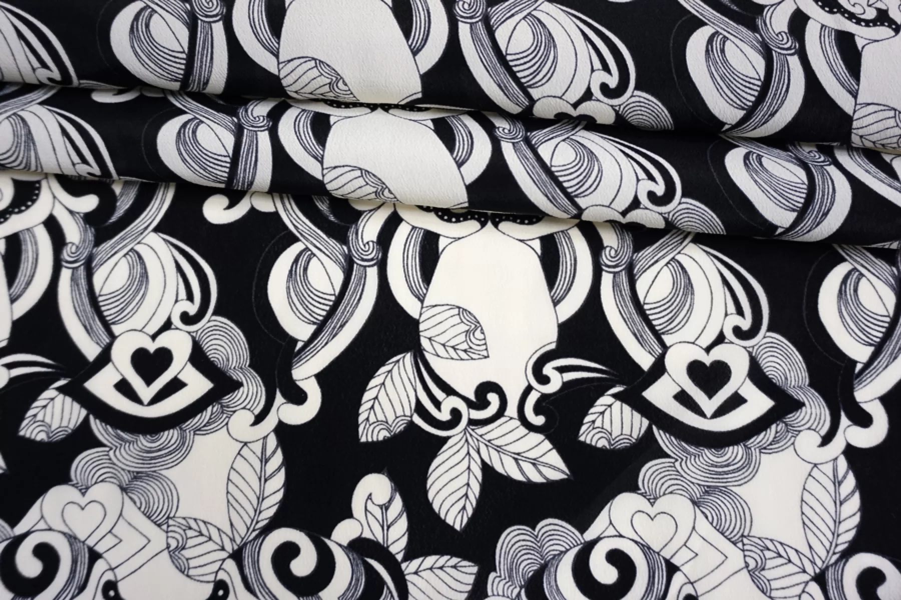 Очень интересная позиция - тонкий крепдешин из шелка с вискозой в молочно-черной цветовой палитре с необычным абстрактным принтом в виде лиц девушек, размером примерно 13х13 см, и других фигур. Материал тактильно слегка шероховатый, но очень мягкий и приятный. Струящийся и летящий. Немного просвечивает силуэт. Смотрится очень стильно и дорого! Шьем платья, юбки, туники и блузки. Для однослойных изделий при необходимости используем подкладочный материал. Уход - деликатный.