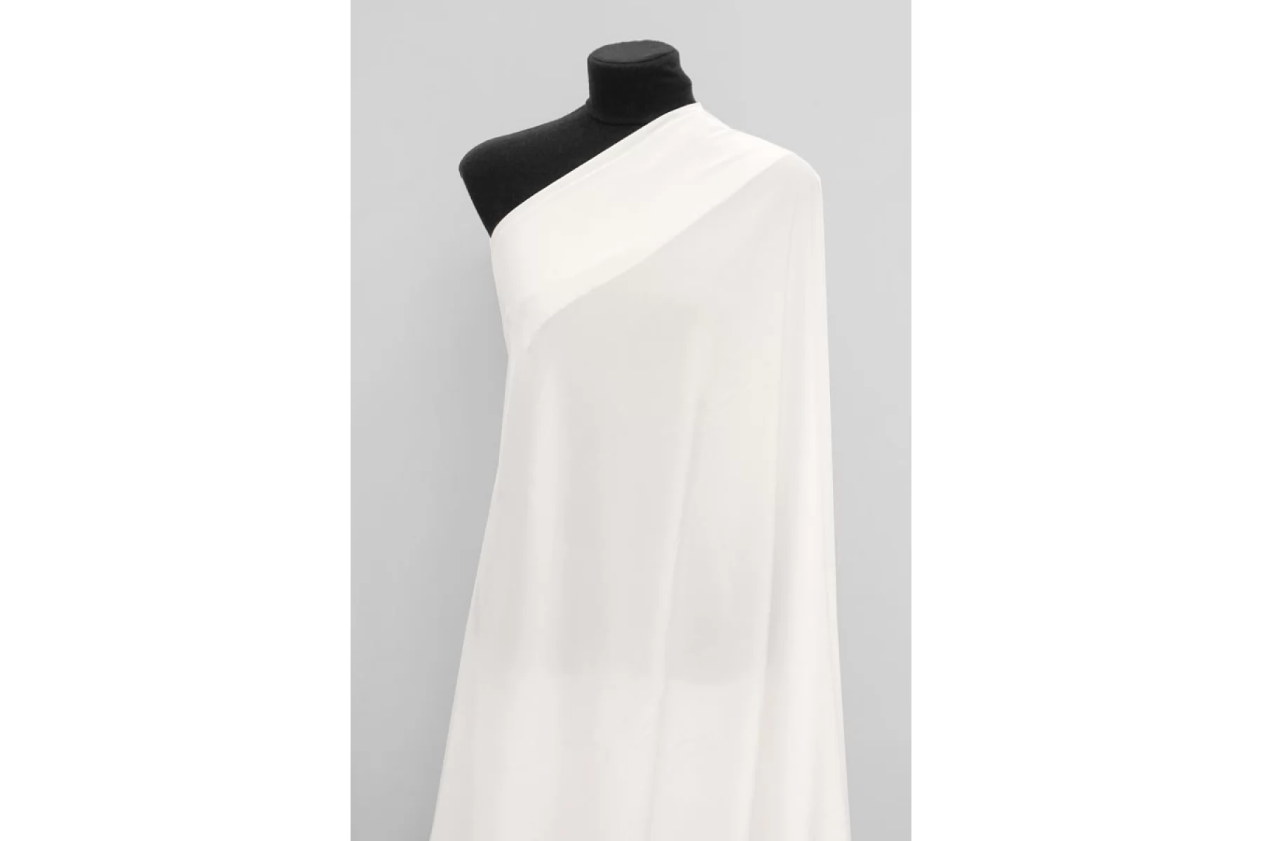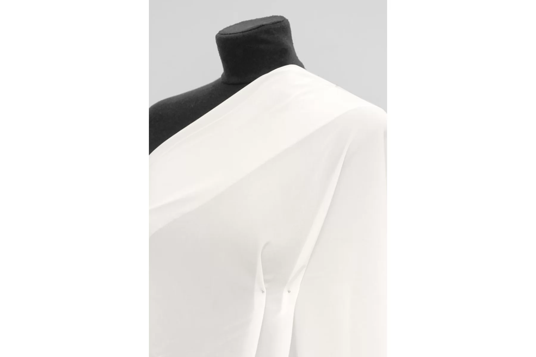 Крепдешин, блузочный по плотности, по составу это 100% шелк, белого цвета (с очень легким молочным подтоном). Тактильно слегка шероховатый, легкий и воздушный. Плетение немного тянется. Красив в своей пластике и в складках. Просвечивает. Отлично подойдет на платья, юбки, туники и блузки. Уход - деликатный.