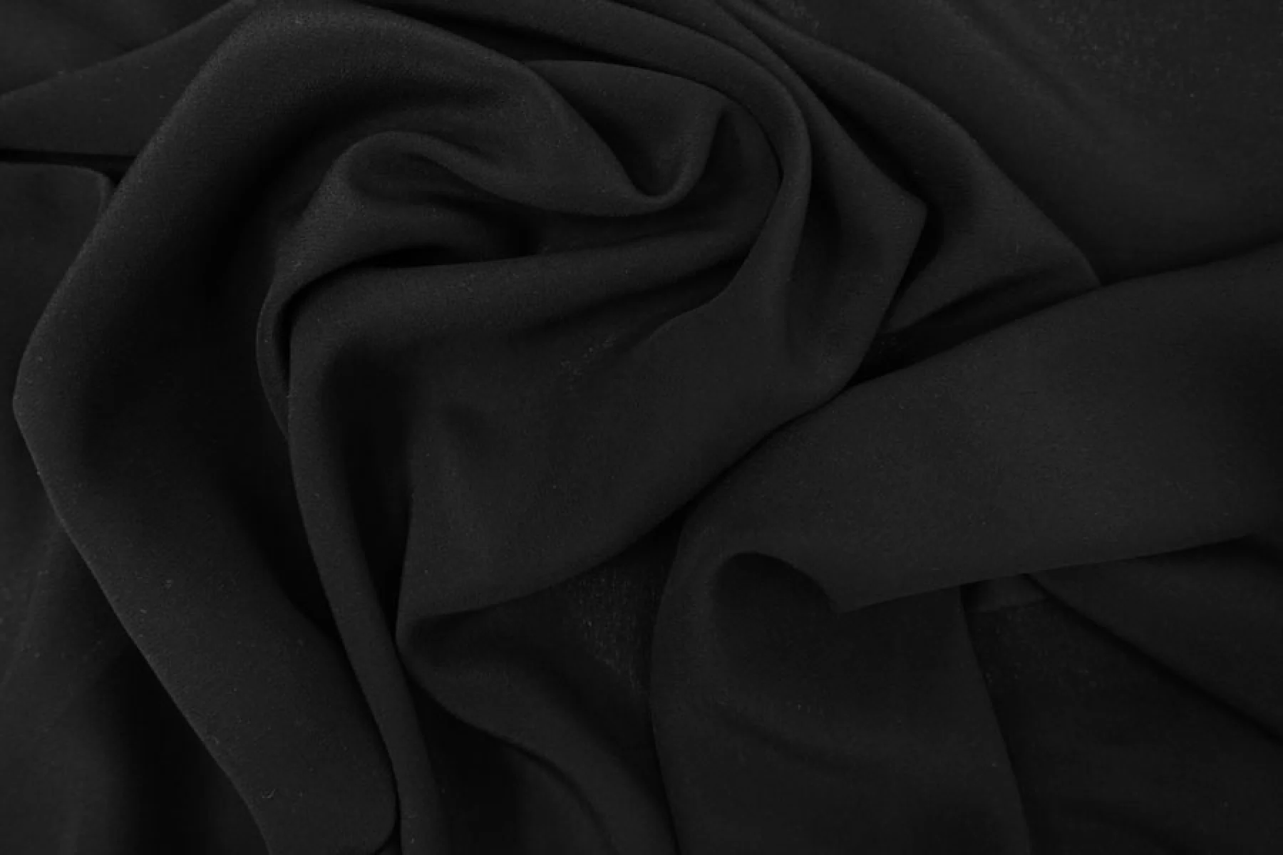 Крепдешин, плательно-блузочный по плотности, по составу это 100% шелк, черного цвета от бренда FENDI. Тактильно слегка шероховатый, легкий и воздушный. Плетение немного тянется. Красив в своей пластике и в складках. Просвечивает в один слой. Отлично подойдет на платья, юбки, туники и блузки. Уход - деликатный.
