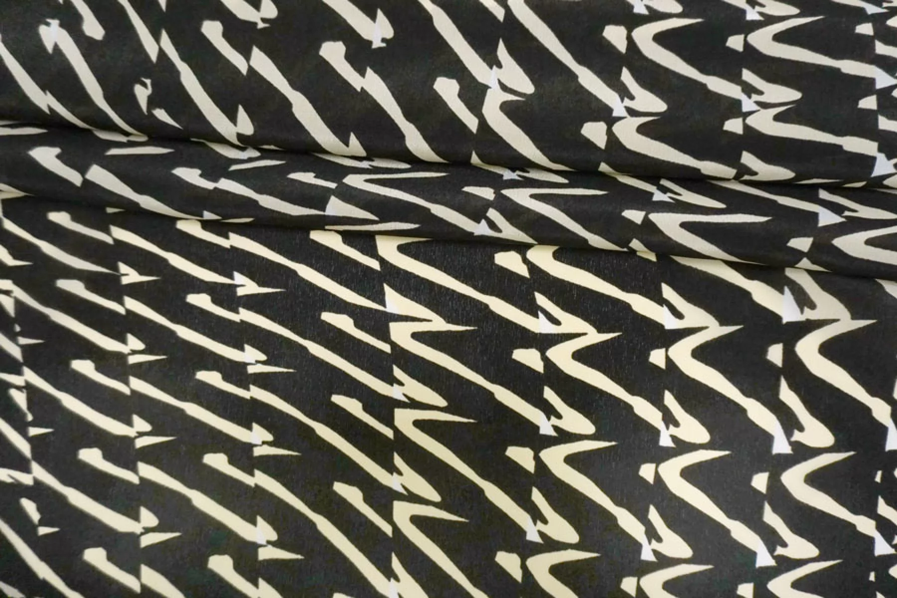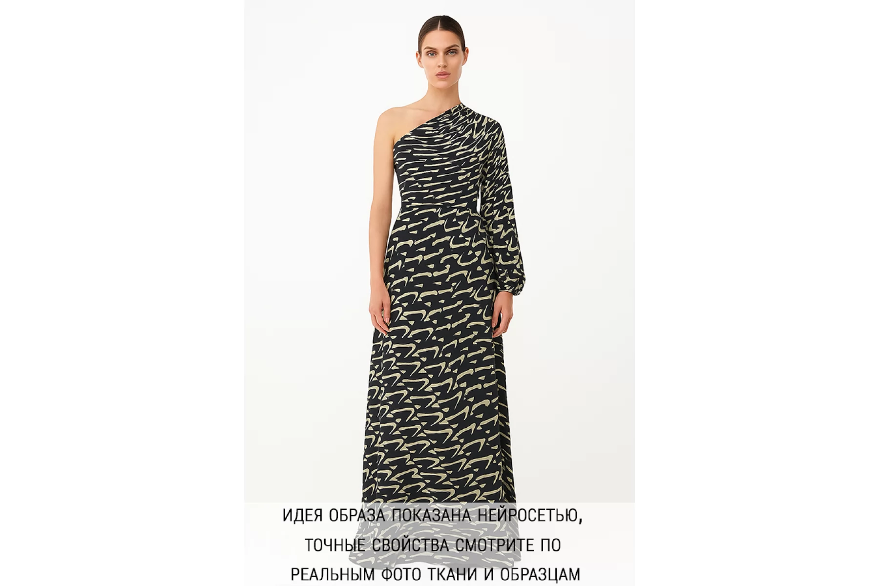Крепдешин шелковый от MAX MARA с абстрактным принтом, сочетание чёрного, сливочно-молочного и белого. Приятный, тонкий, легкий. Пластичный. Просвечивает. Не тянется. Не мнется. Красив в складках. Шьем платья, блузки, юбки и другие варианты. При необходимости используйте подкладочный материал.