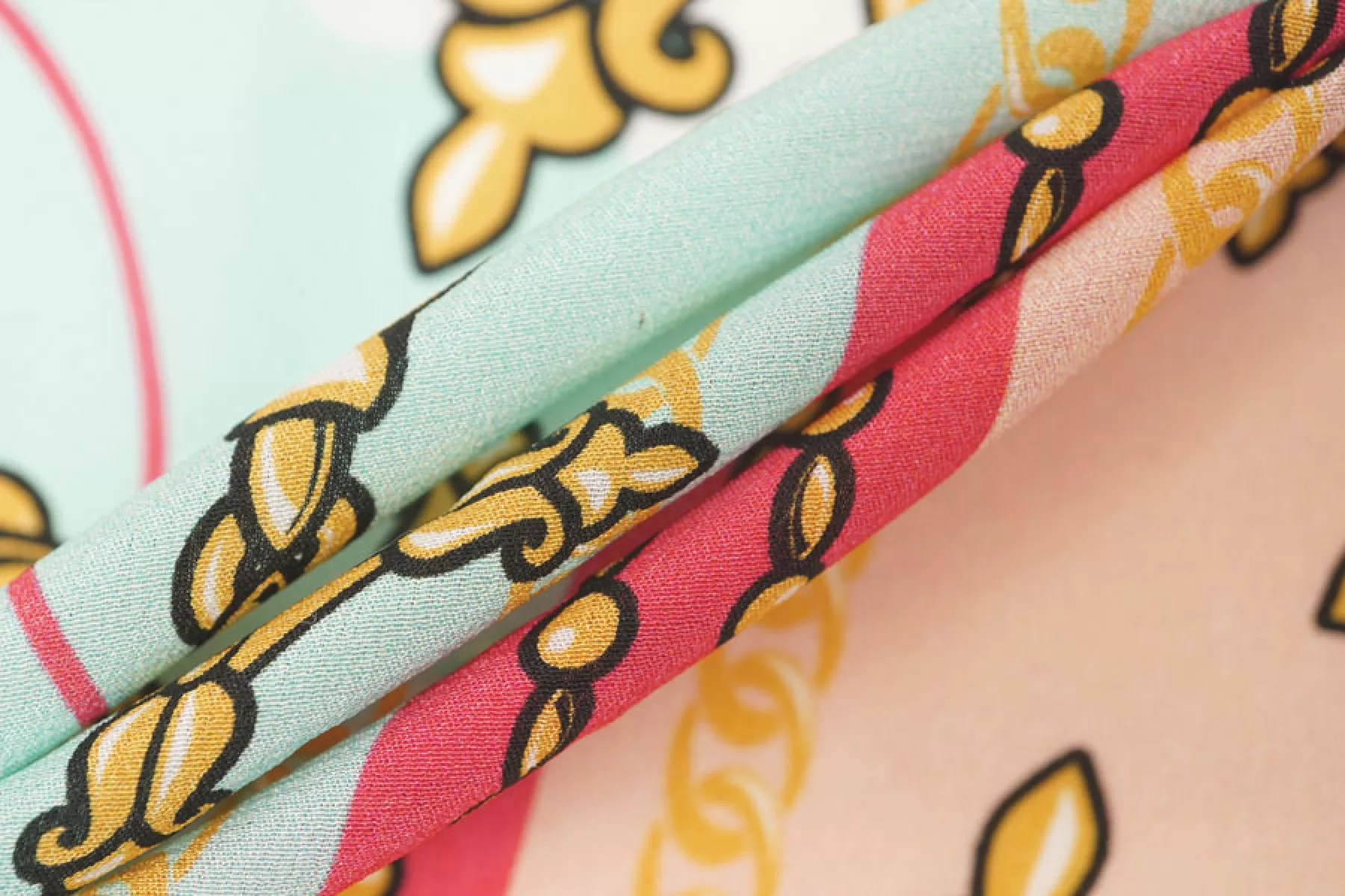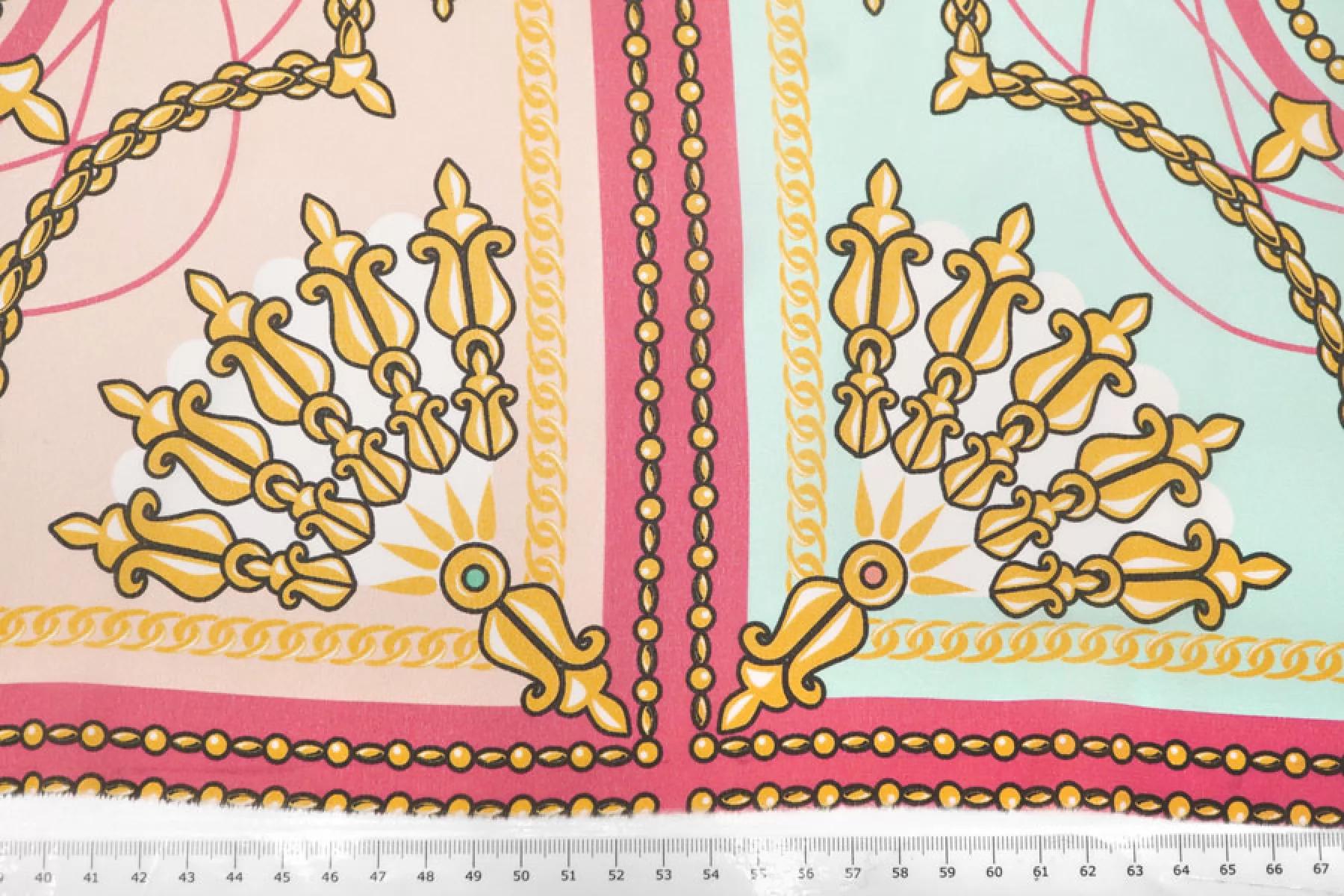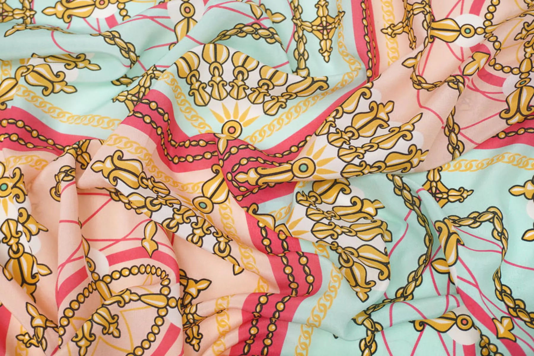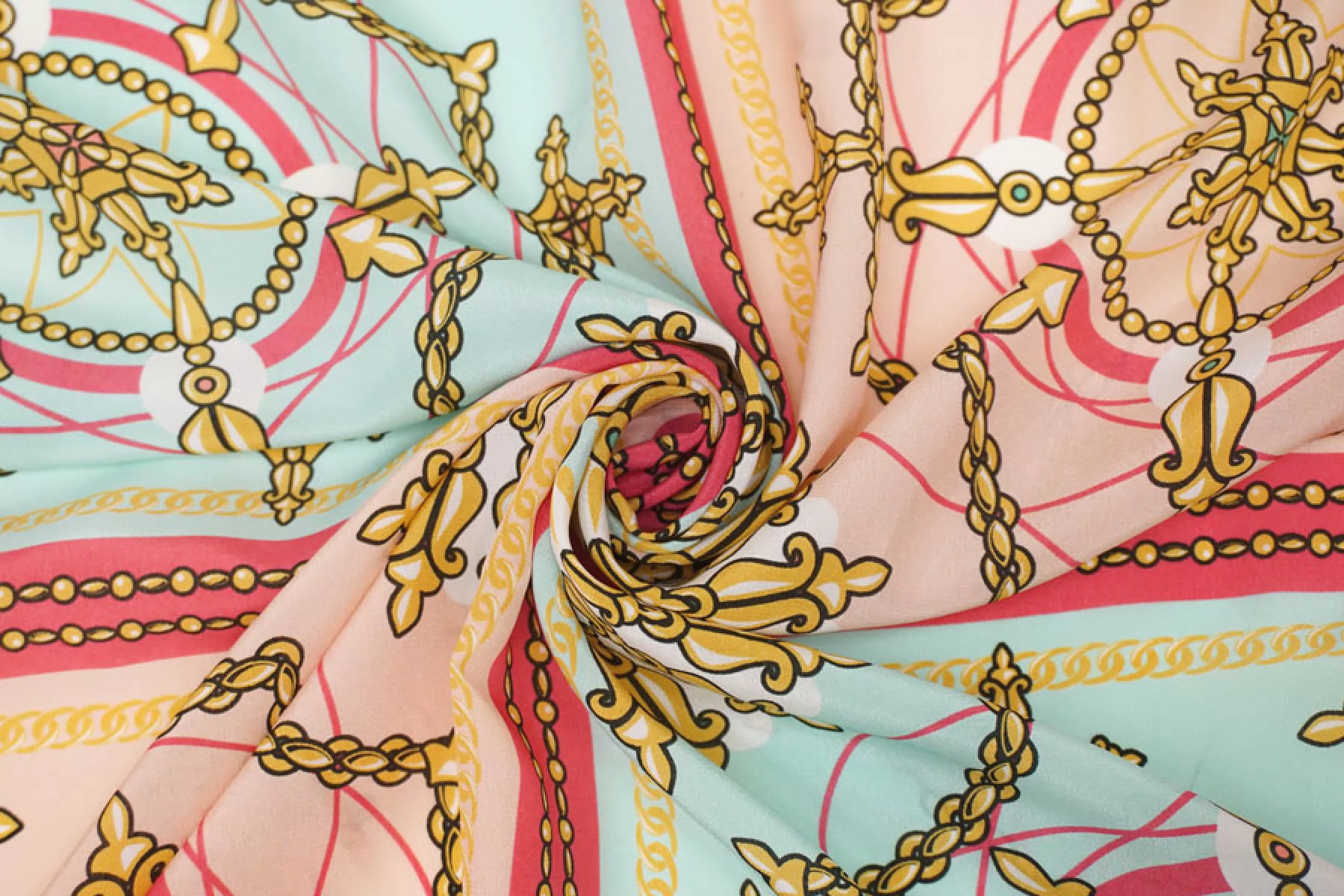 ВНИМАНИЕ! Ткань режется кратно раппорту, длина раппорта 38 см, цена за купон -1482 руб. Шикарнейшая позиция - шелковый крепдешин с абстрактным принтом в платочном стиле в оттенках мятного, пудрового, розового, белого и желтого. Тактильно очень мягкий, приятный, легкий, летящий и пластичный. Просвечивает. Не тянется, но пружинит за счет плетения. Практически не мнется. Красив в складках. Форму не держит. Шьем блузки, платья, юбки и не только. При необходимости используйте подкладочный материал. Уход за шелком деликатный.