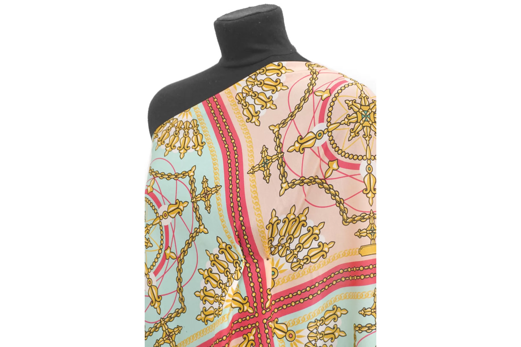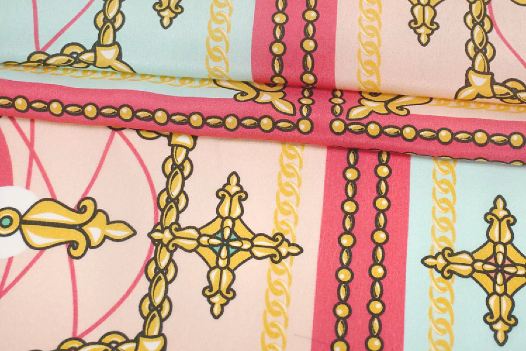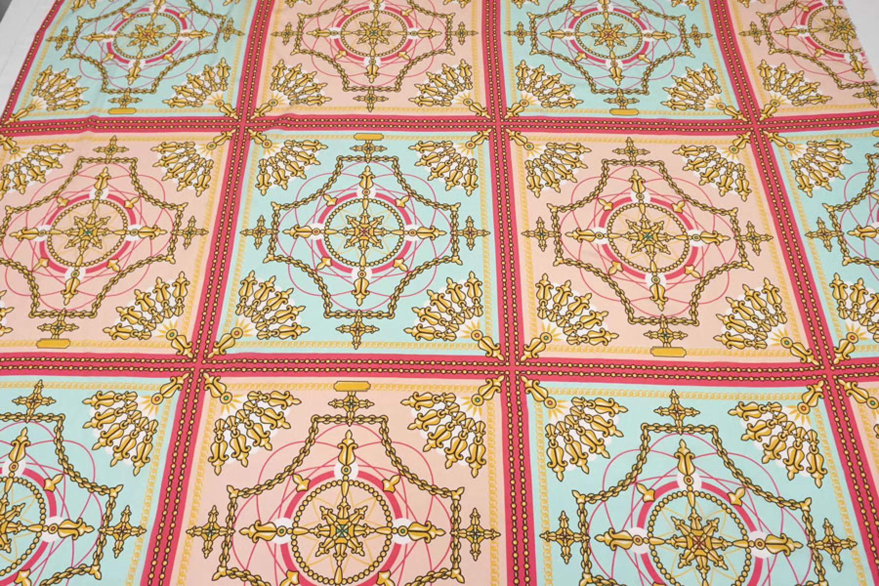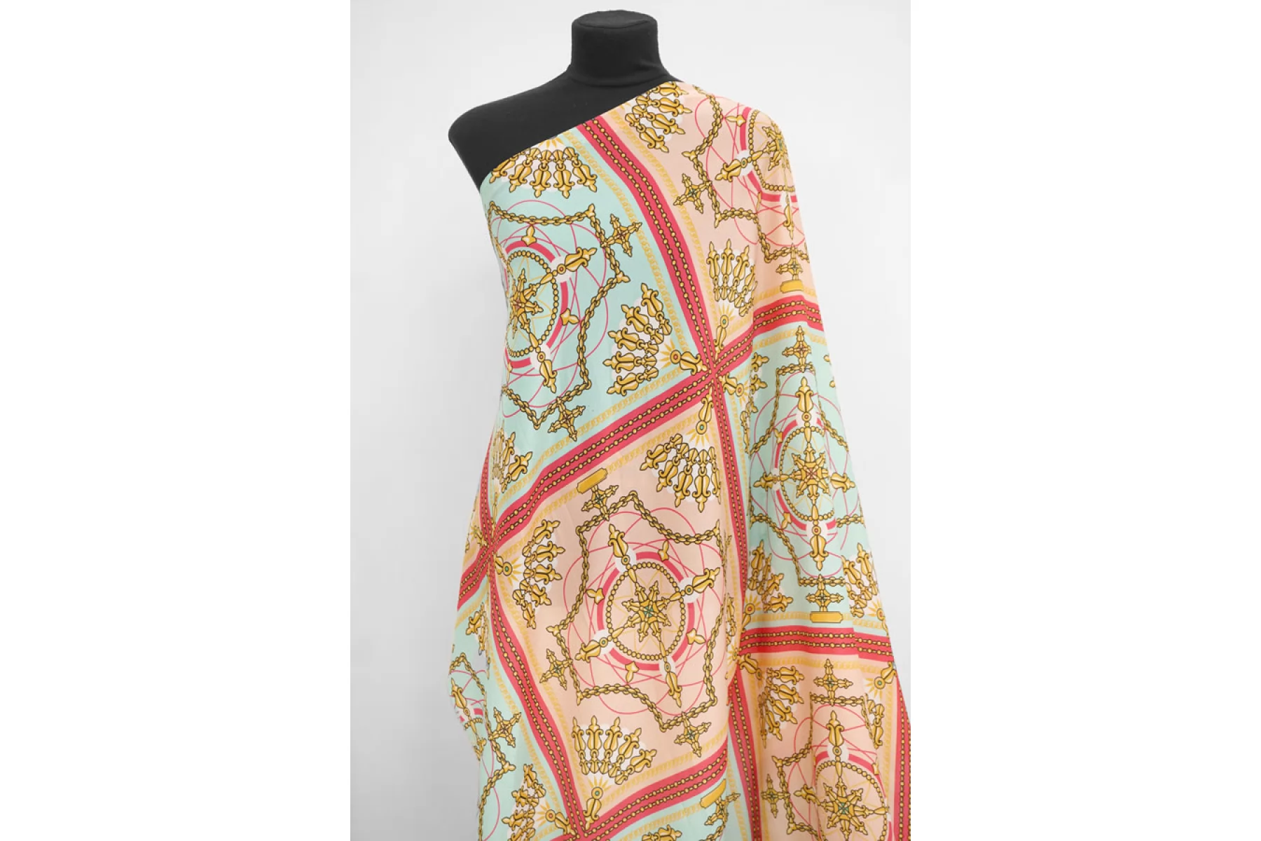 ВНИМАНИЕ! Ткань режется кратно раппорту, длина раппорта 38 см, цена за купон -1482 руб. Шикарнейшая позиция - шелковый крепдешин с абстрактным принтом в платочном стиле в оттенках мятного, пудрового, розового, белого и желтого. Тактильно очень мягкий, приятный, легкий, летящий и пластичный. Просвечивает. Не тянется, но пружинит за счет плетения. Практически не мнется. Красив в складках. Форму не держит. Шьем блузки, платья, юбки и не только. При необходимости используйте подкладочный материал. Уход за шелком деликатный.