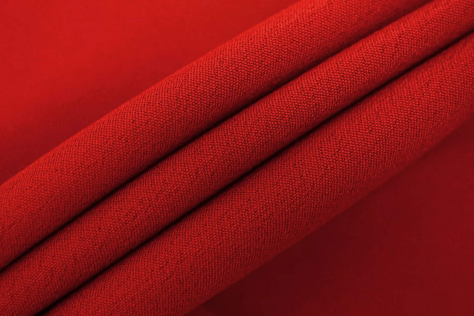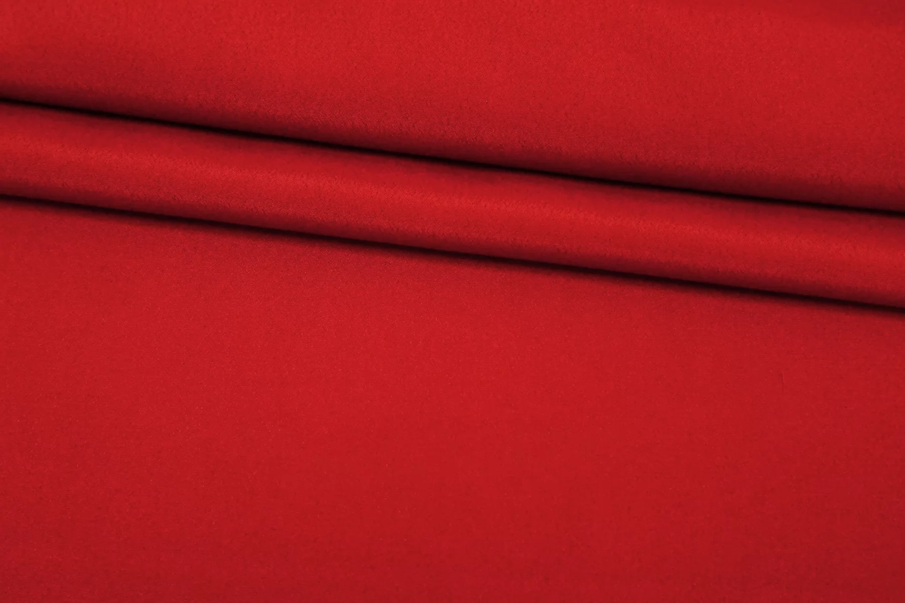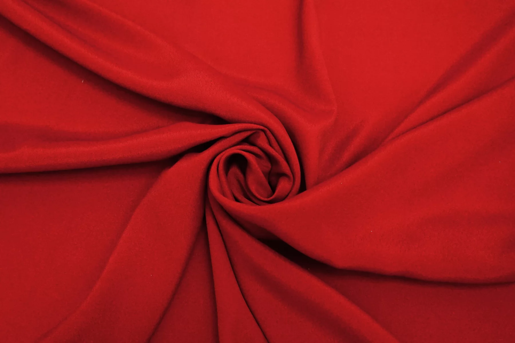 Крепдешин, плательно-блузочный по плотности, шёлк с вискозой в чуть приглушённом оттенке красного. Тактильно слегка шероховатый, легкий и воздушный. Не тянется, но немного пружинит за счет плетения. Красив в своей пластике и в складках. Немного просвечивает в один слой. Отлично подойдет на платья, юбки, туники и блузки. Уход - деликатный.