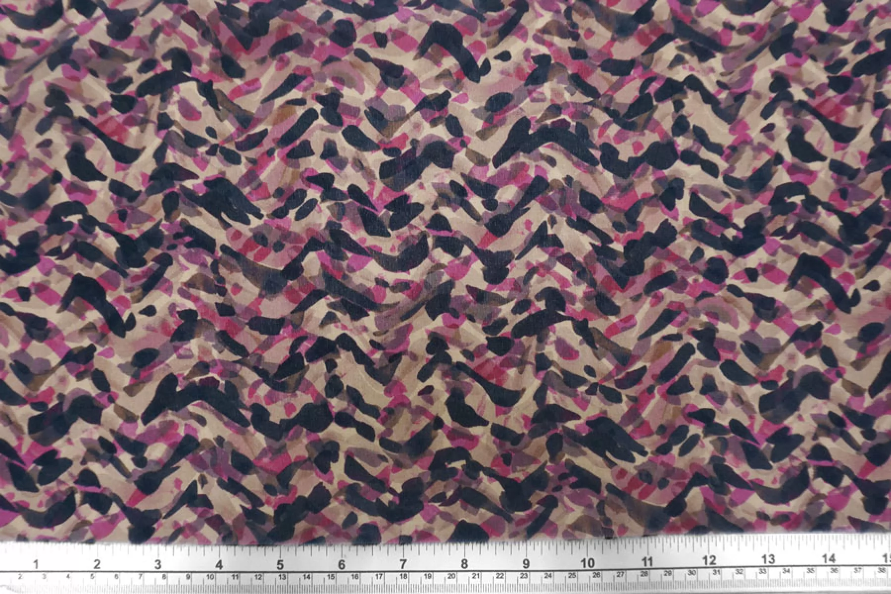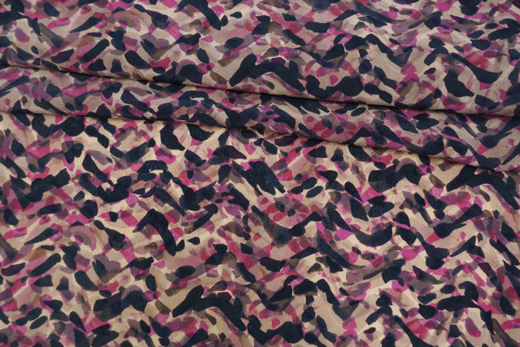 Крепдешин шёлковый Max Mara Абстракция сине-бежевая с фуксией MM H31 N30 30092548