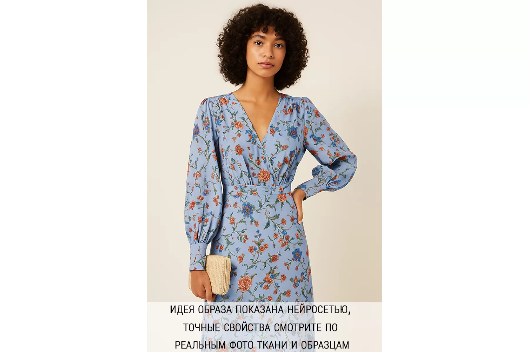 Итальянский шёлковый крепдешин от Max Mara со стилизованным цветочным принтом на светлом, сиренево-голубом фоне. Поверхность материала гладкая и скользящая, с легкой шероховатостью присущей крепдешину. Ткань легкая и летящая. Не тянется, но плетение немного пружинит. Струится. Просвечивает в один слой. Не мнется. Форму не держит, но красив в драпировке. Отличный вариант на летние платья, блузки и юбки. При необходимости используйте подкладочный материал. Уход, как и за любым шелком, деликатный.