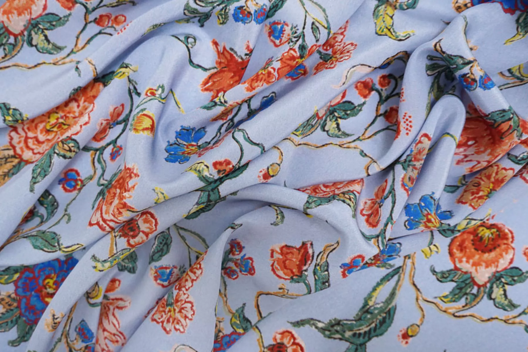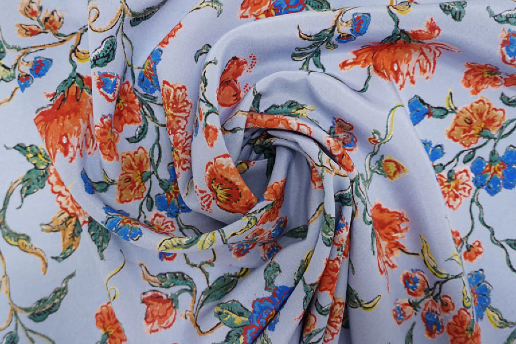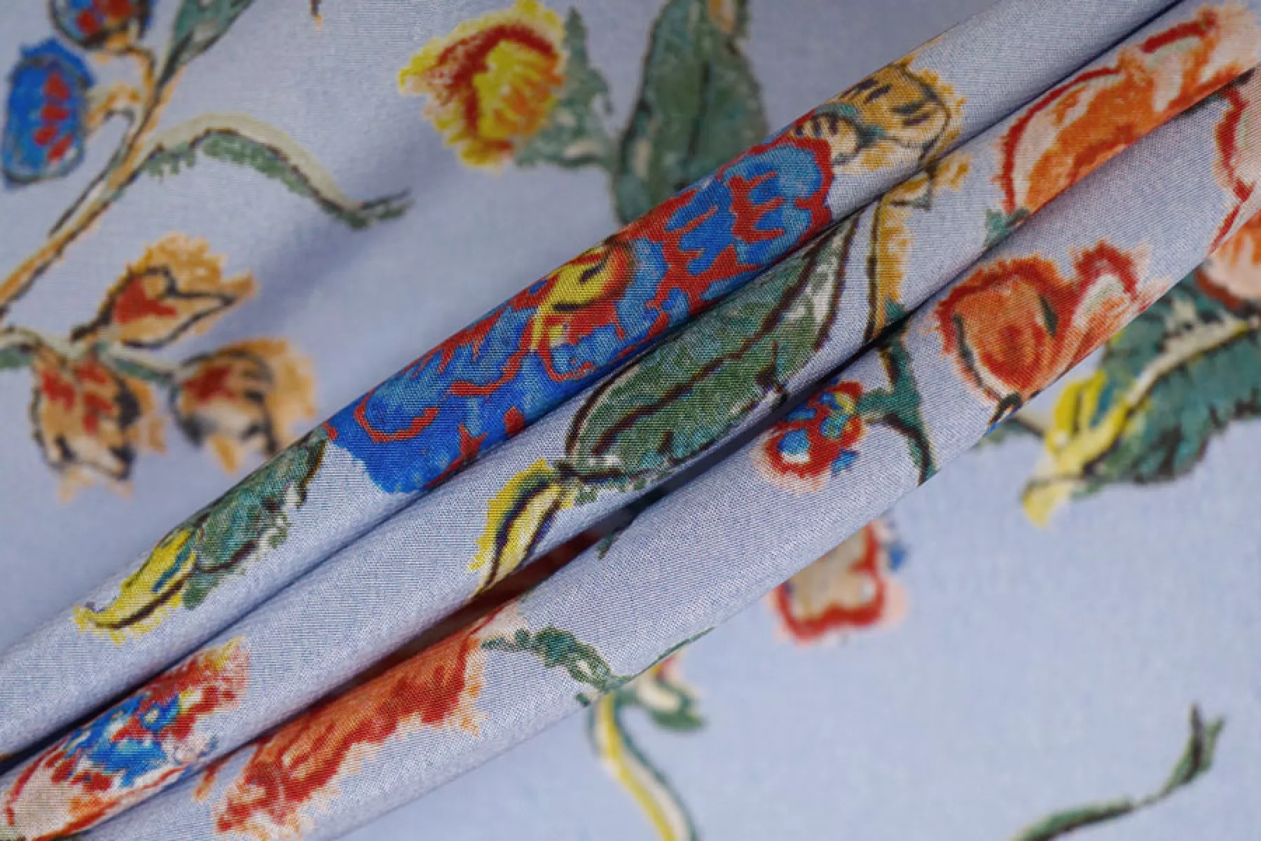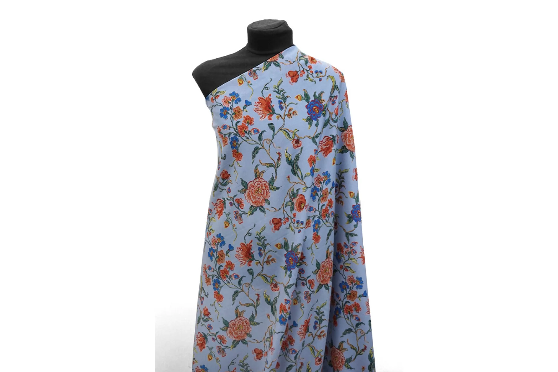 Крепдешин шёлковый Max Mara Цветы на сиренево-голубом MM H31 N20 30092564