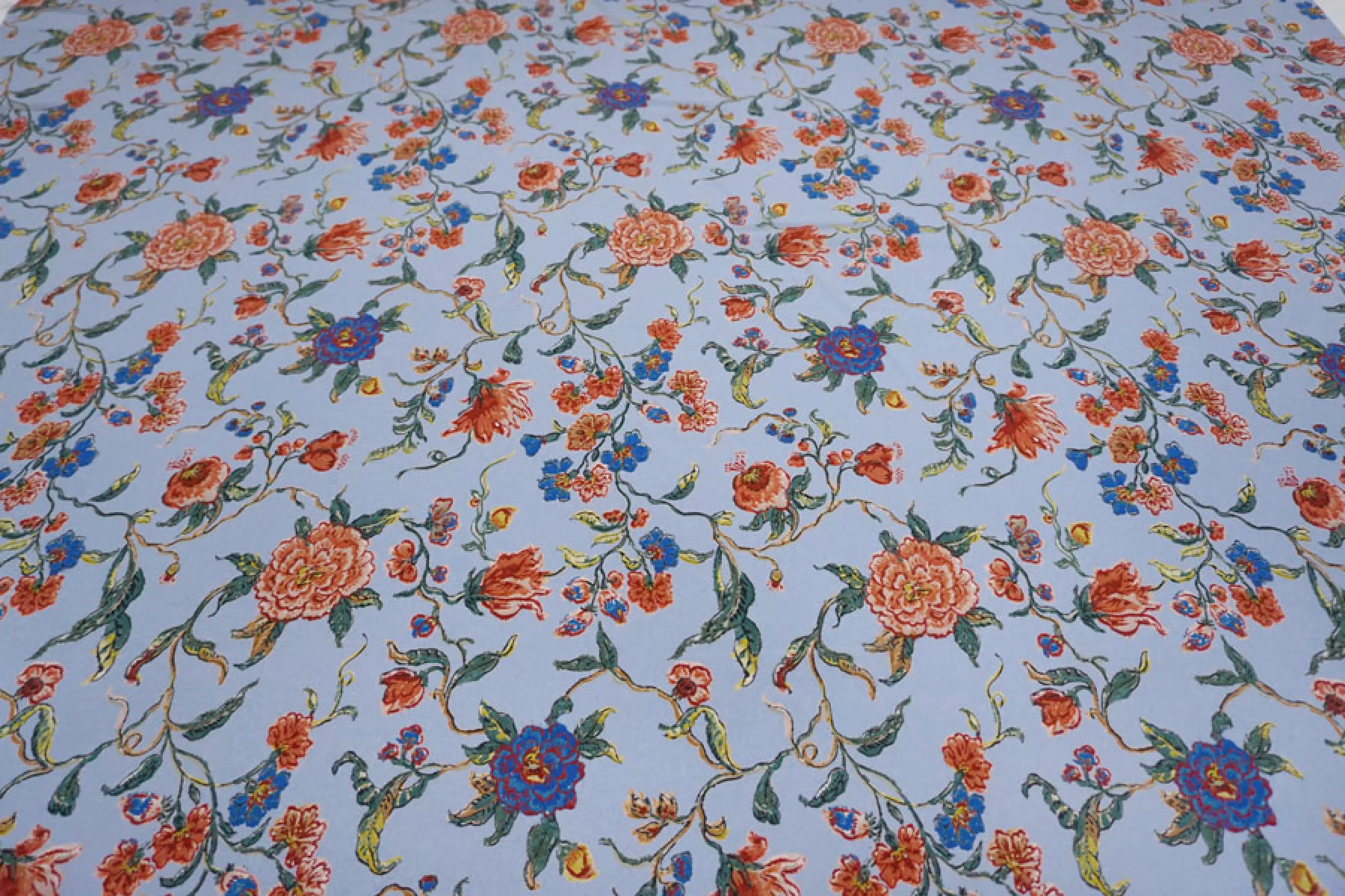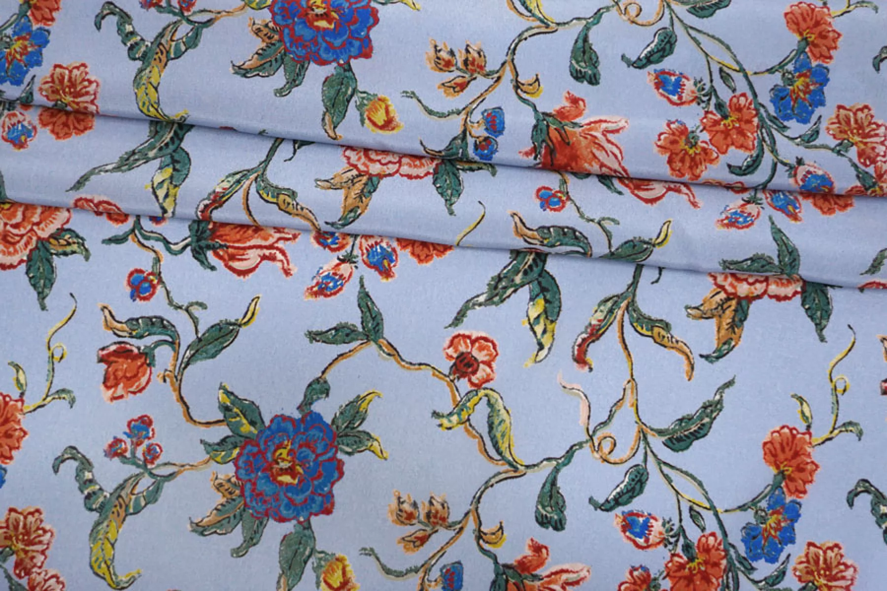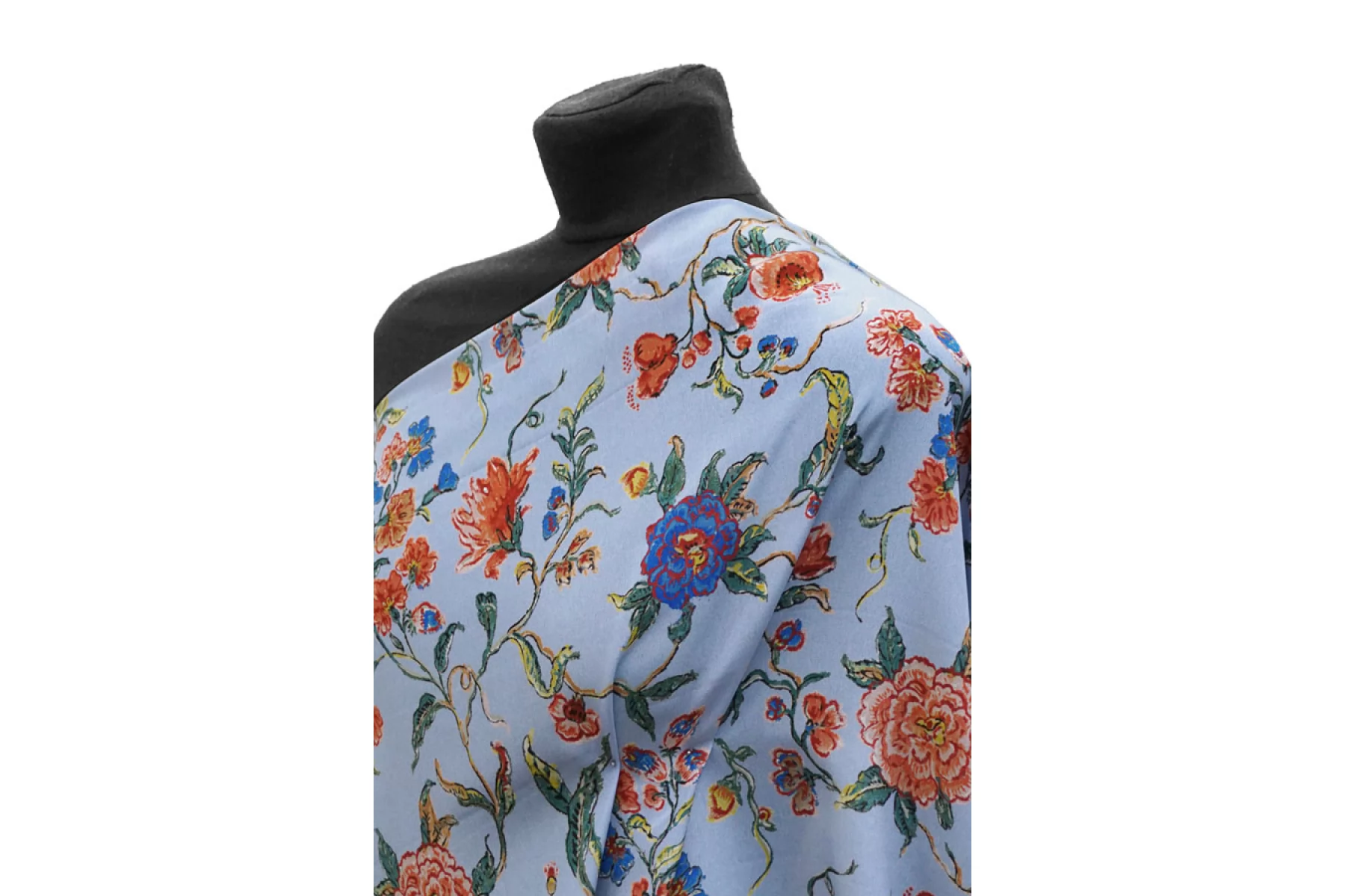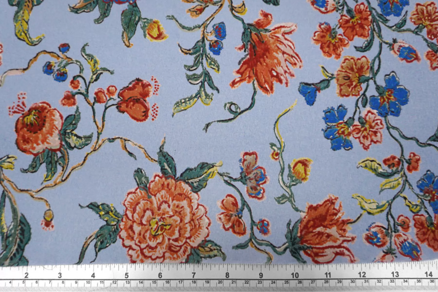 Крепдешин шёлковый Max Mara Цветы на сиренево-голубом MM H31 N20 30092564