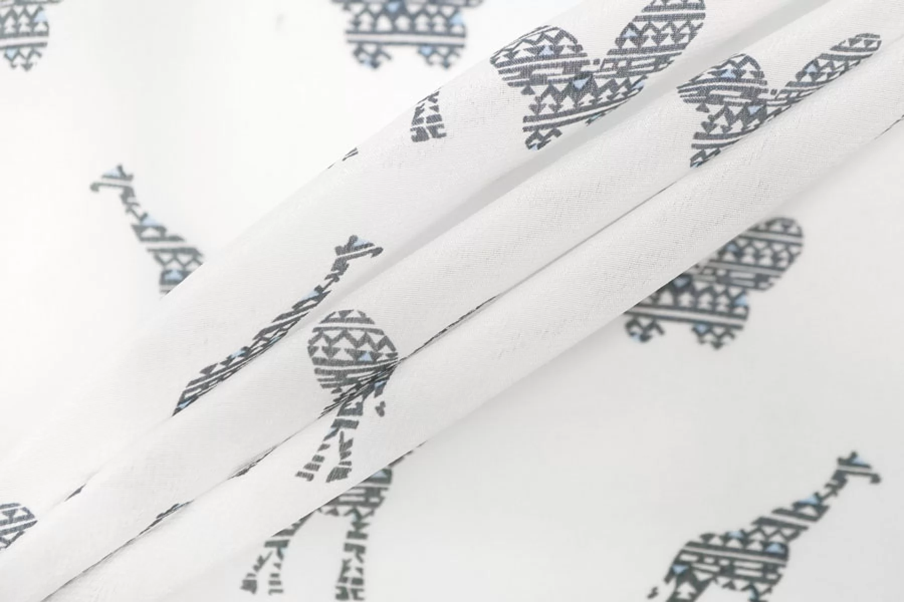 Итальянский шёлковый крепдешин от Max Mara с принтом в виде орнаментальных жирафов и бабочек, графитово-голубых, на белом фоне. Поверхность материала гладкая и скользящая, с легкой шероховатостью присущей крепдешину. Ткань легкая и летящая. Не тянется. Струится. Просвечивает. Не мнется. Форму не держит, но красив в драпировке. Отличный вариант на летние платья, блузки и юбки. При необходимости используйте подкладочный материал. Уход, как и за любым шелком, деликатный.