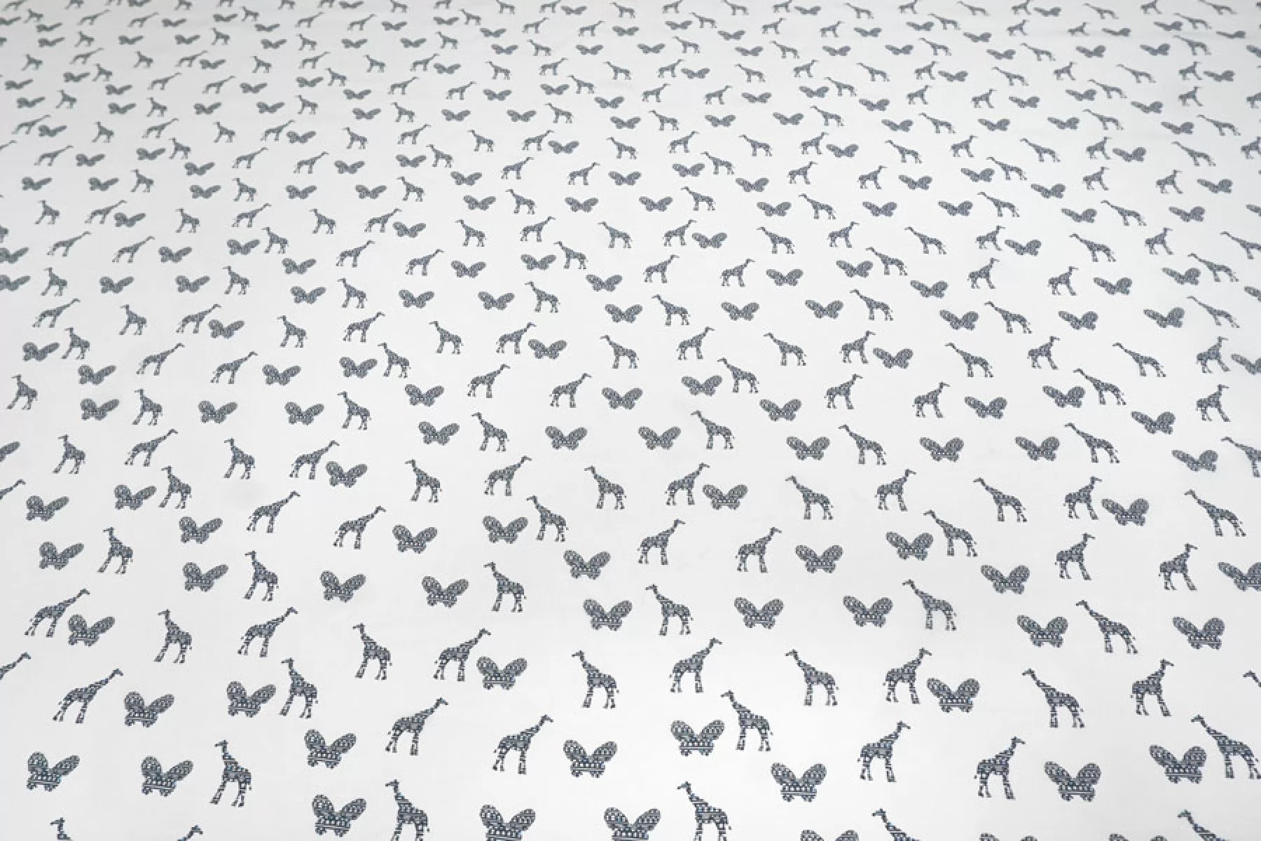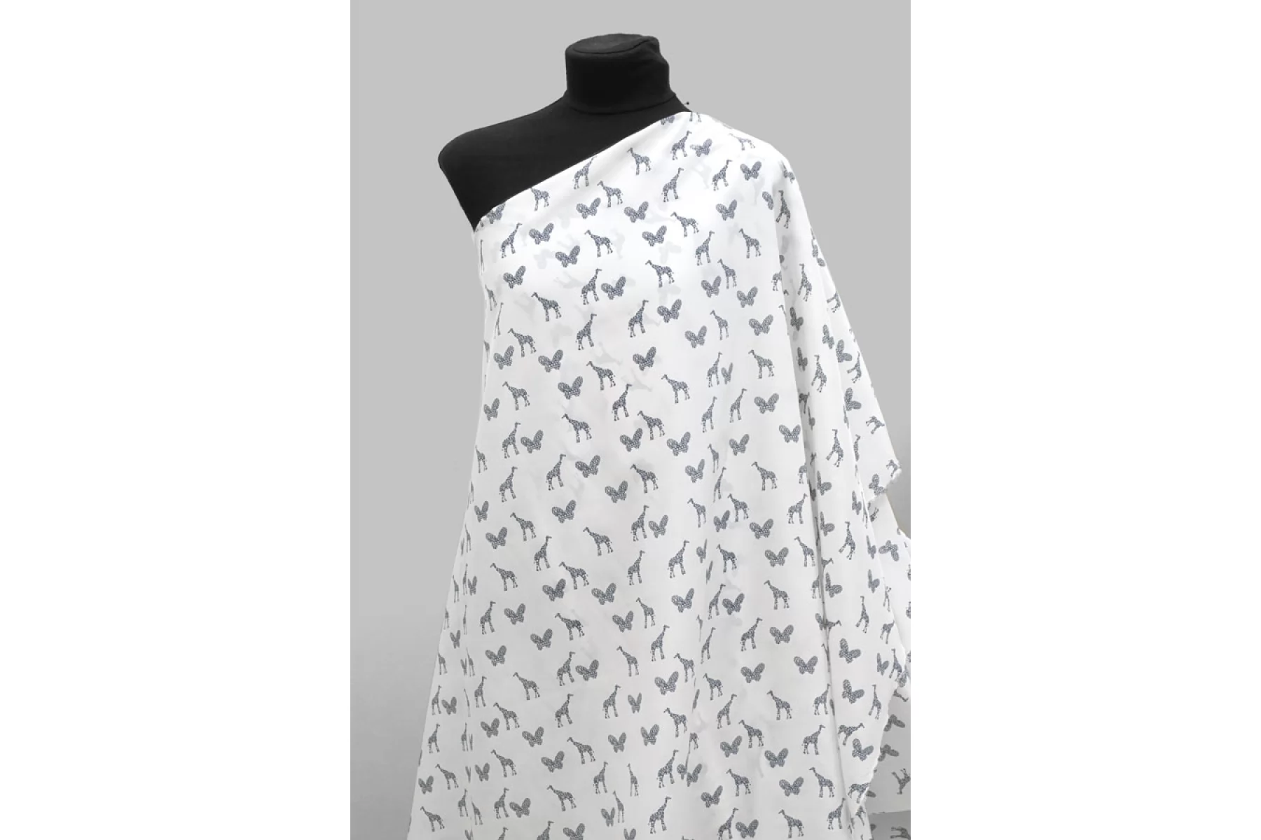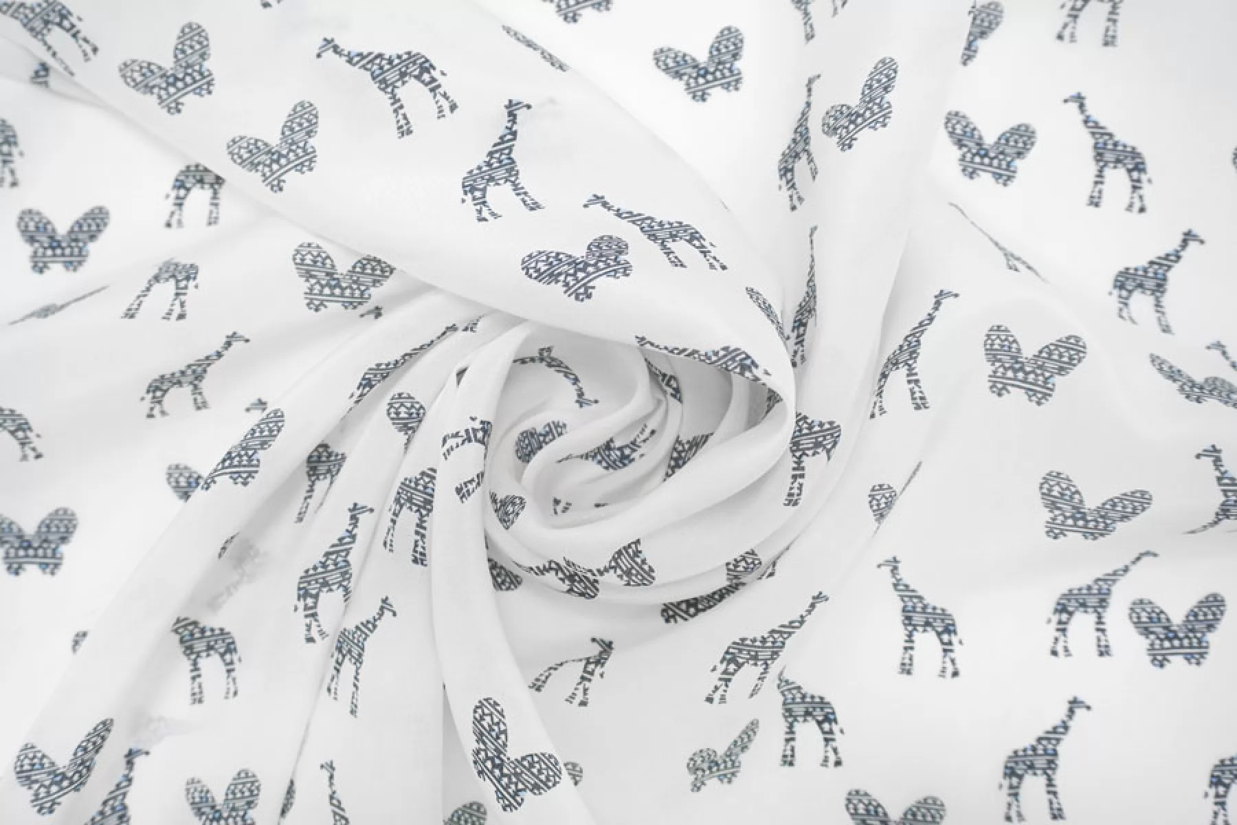 Крепдешин шёлковый Max Mara Серые жирафы и бабочки на белом MM H31 N40 14042507
