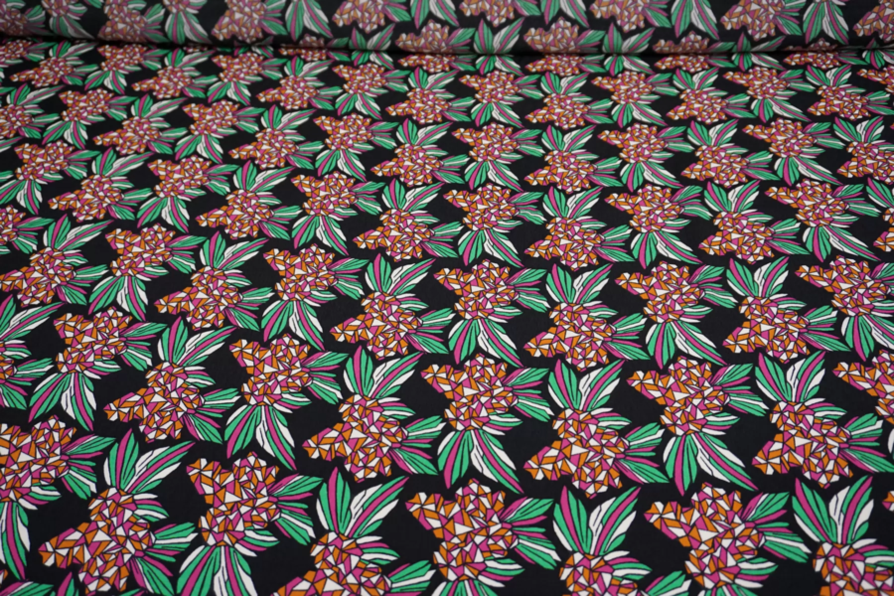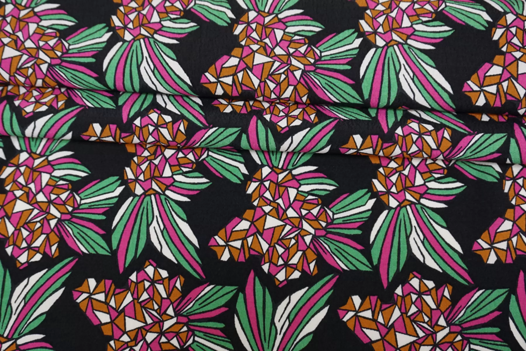 Креповая вискоза Абстрактные ягоды на черном KZ H21/9/ H60 15042317