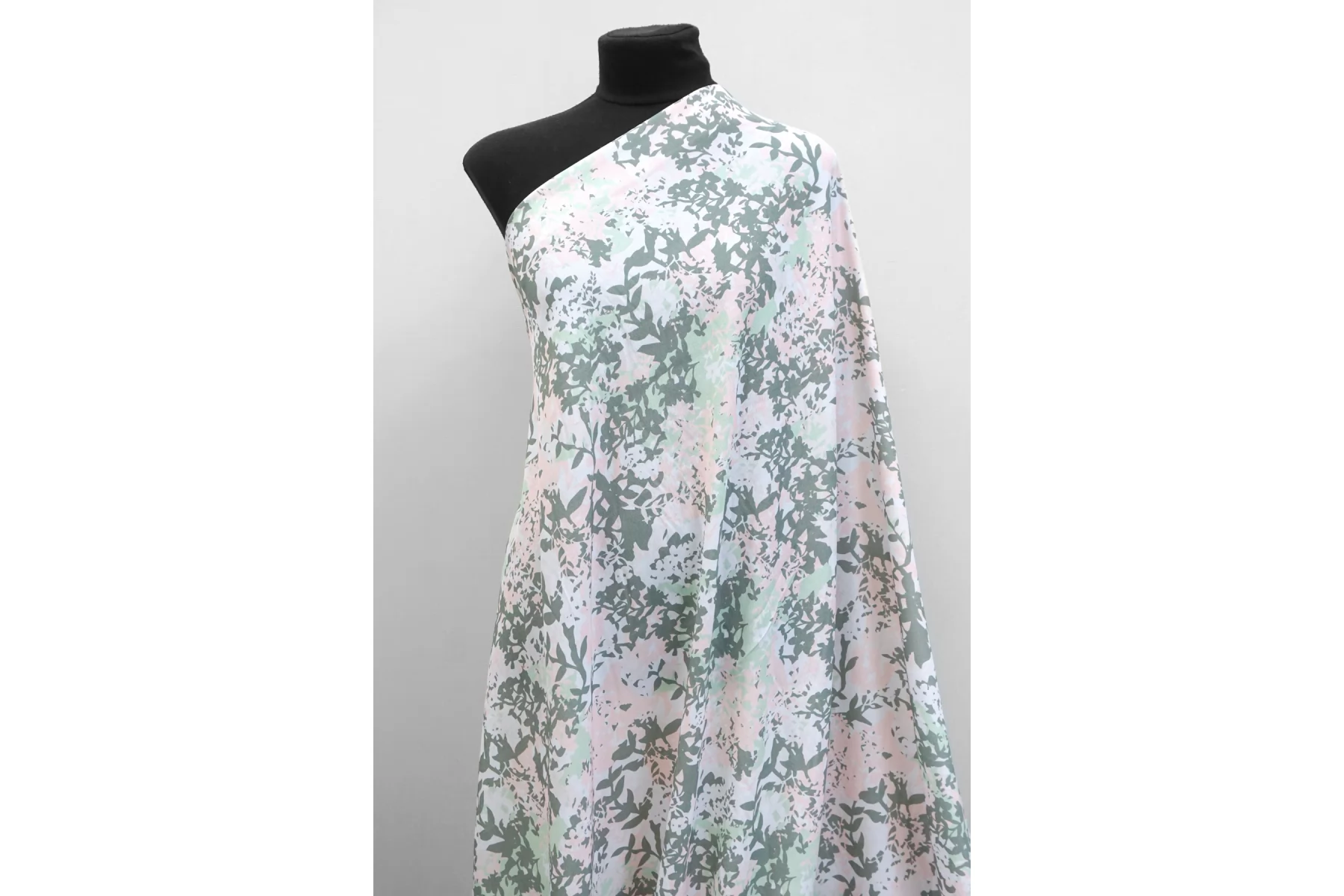 Шикарная креповая вискоза c нежным принтом в виде стилизованных цветов нежных оттенков розового, голубого и зеленого. Приятная и шероховатая наощупь. Тонкая, пластичная, холодящая красиво драпируется, форму не держит. Немного просвечивает силуэт. Немного мнется. Немножко растягивается. Отличный вариант на платья, юбки, блузки. Учитывайте возможную усадку.
