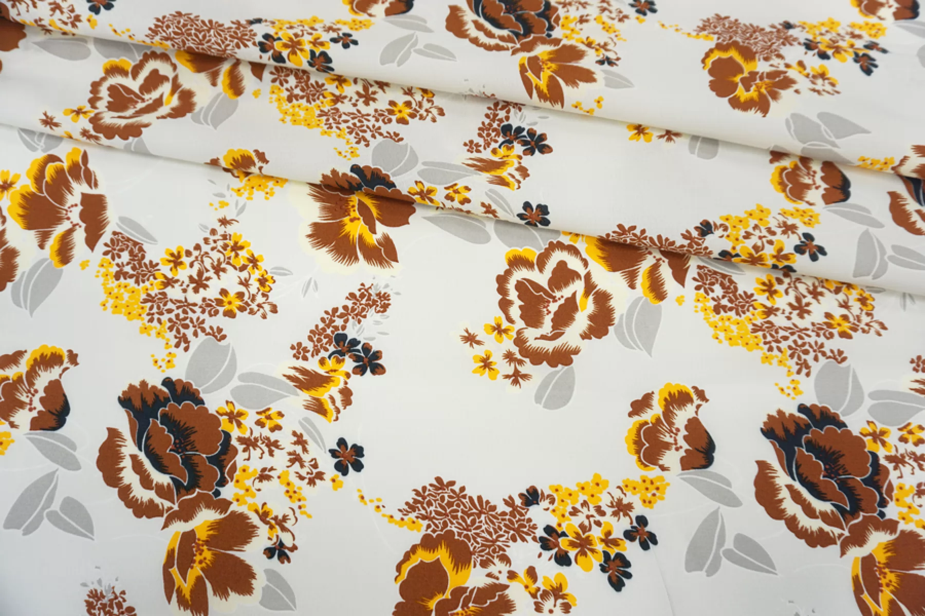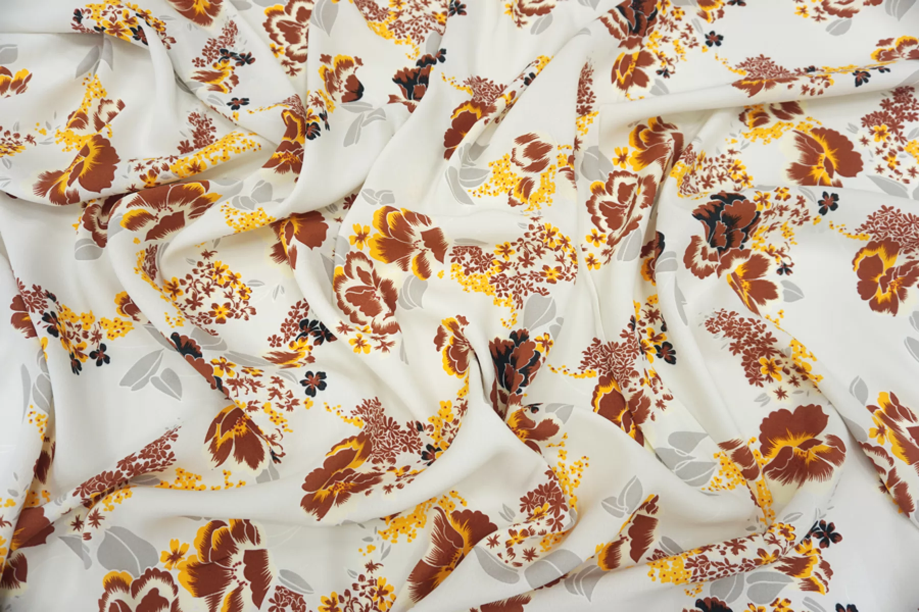 Креповая вискоза коричневые цветы на светло-сером фоне MII H21/10 I60 05082136