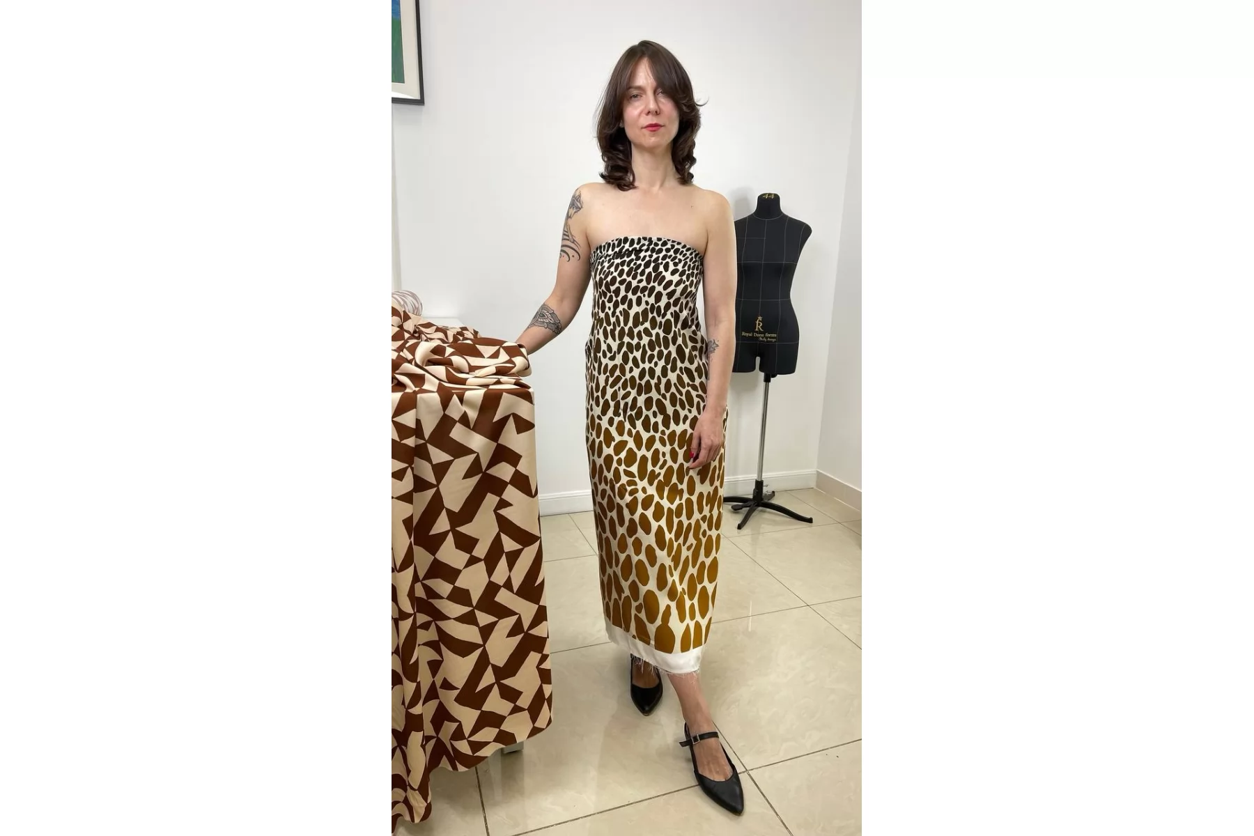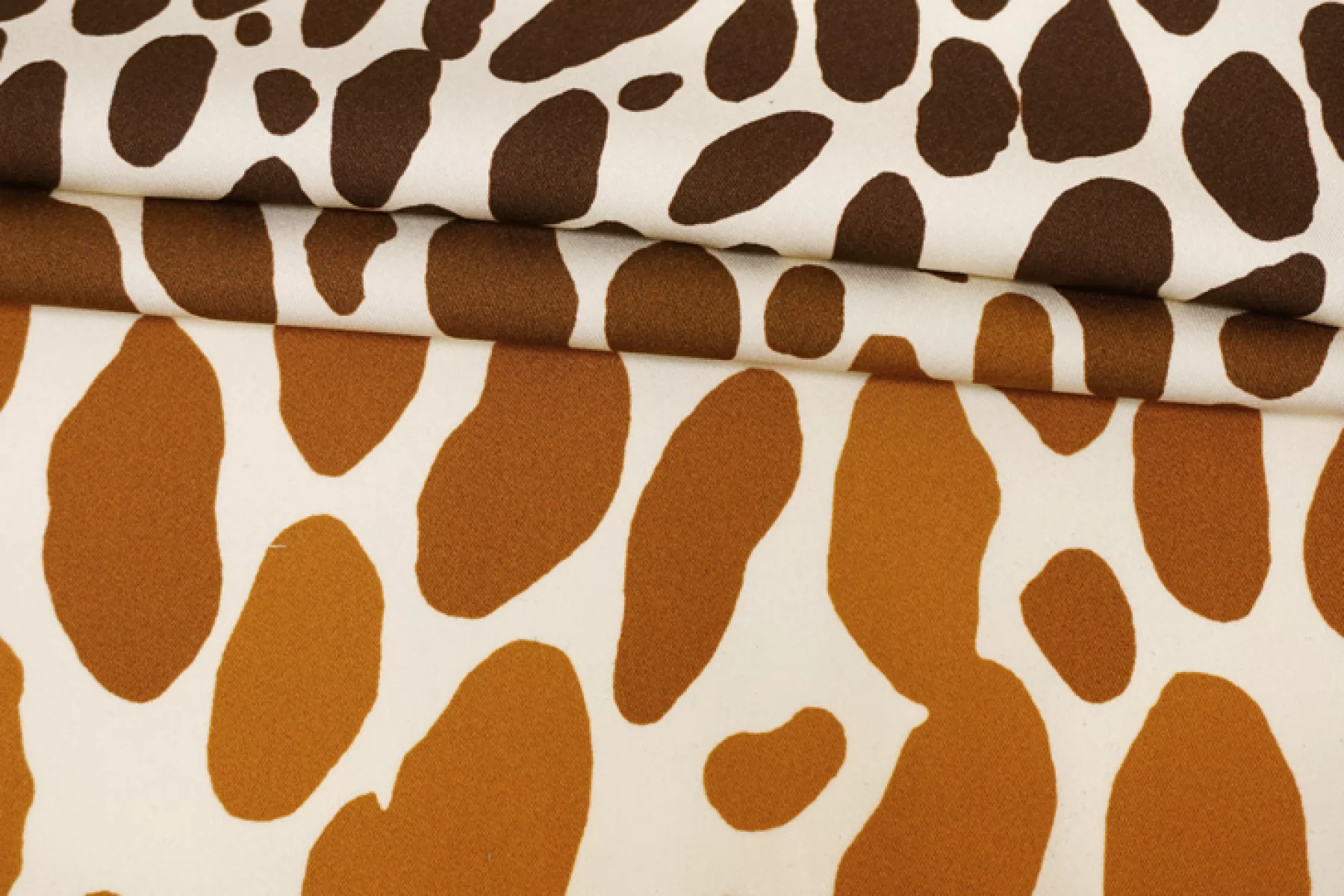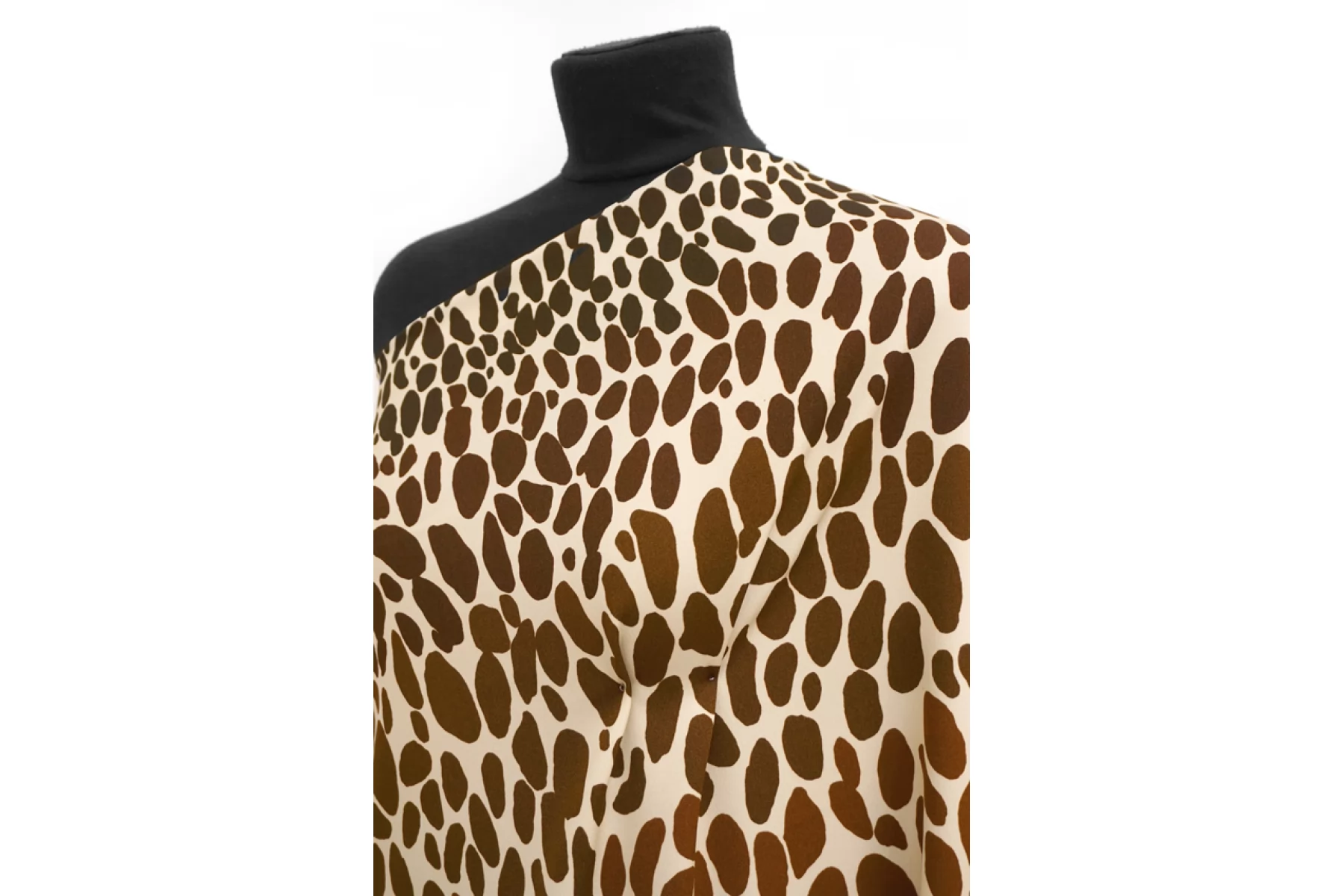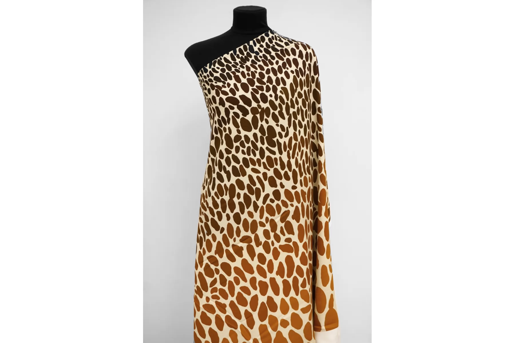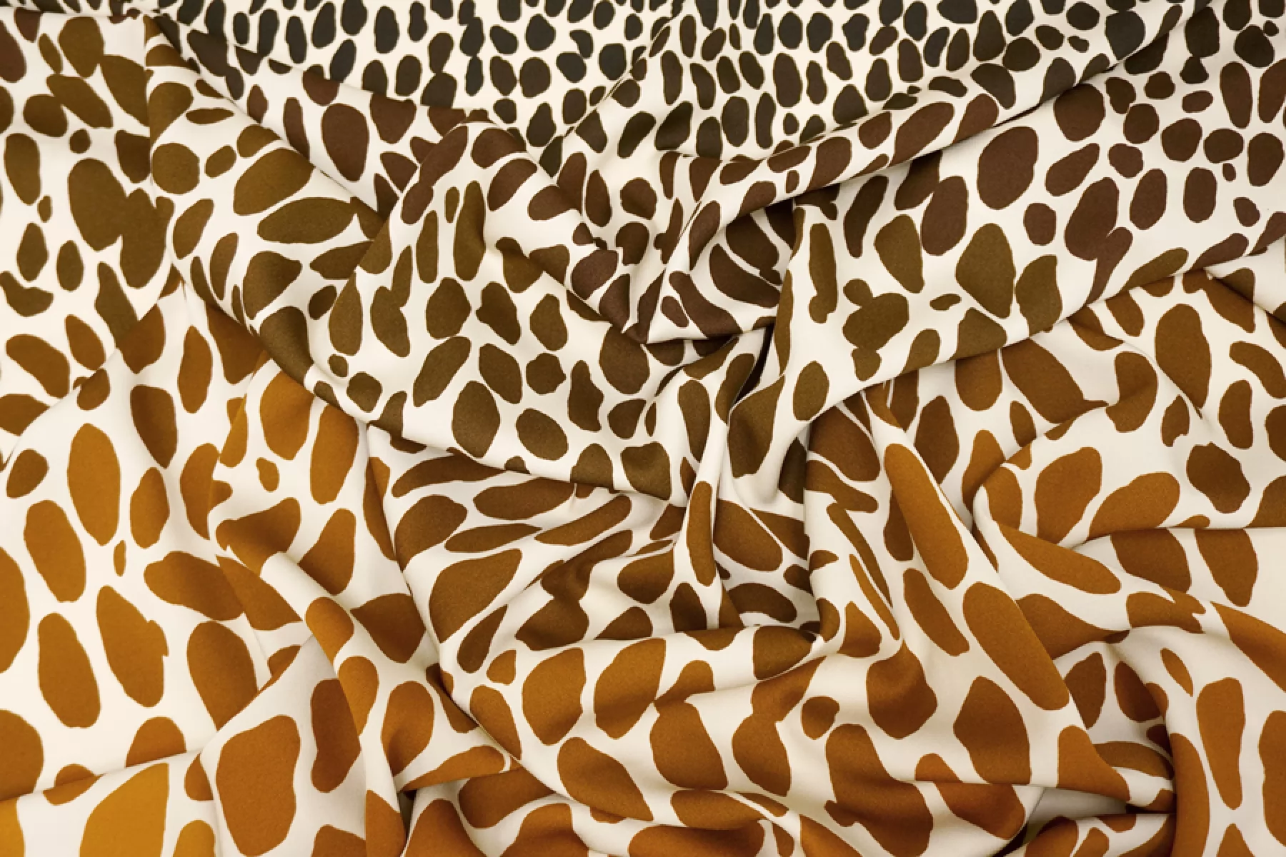 Внимание, ткань продается купонами, длина купона 105 см, цена за купон 3 150 руб. Классная позиция - кади креповая вискоза с анималистичным купонным принтом, который представляет собой градиентные по цвету и по форме пятна в теплых желтых, оранжевых и коричневых оттенках. Гладкий, холодный и креповый по текстуре материал, обладающим легким лоском. Струящийся. Тяжеленький. Не просвечивает и отлично тянется благодаря эластану. Красиво драпируется и практически не держит форму. Очень пластичный. Подойдет для пошива платья, топа, блузки, юбки. Учитывайте усадку.