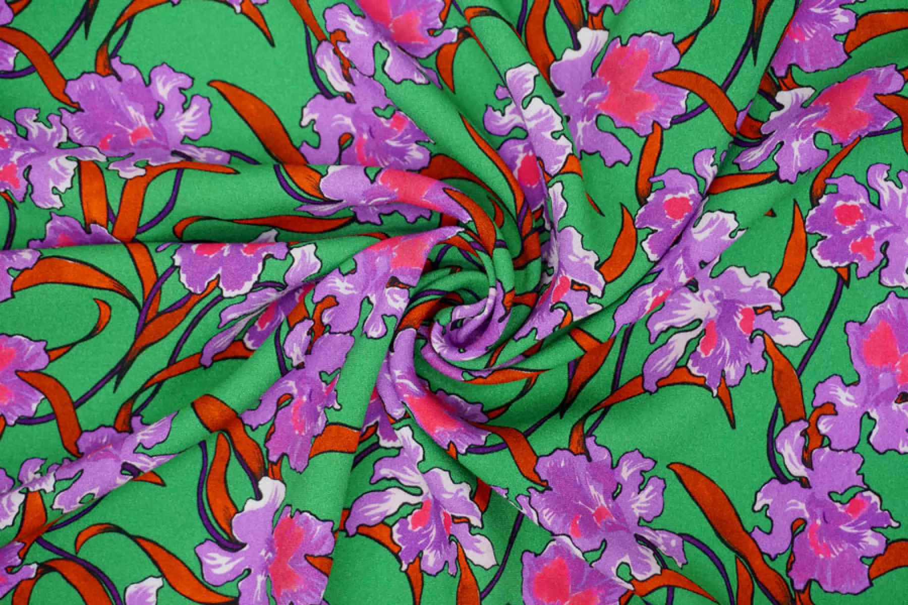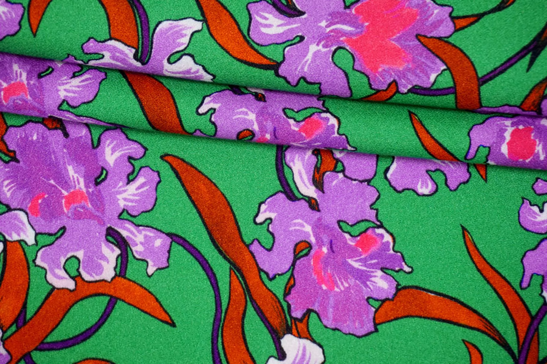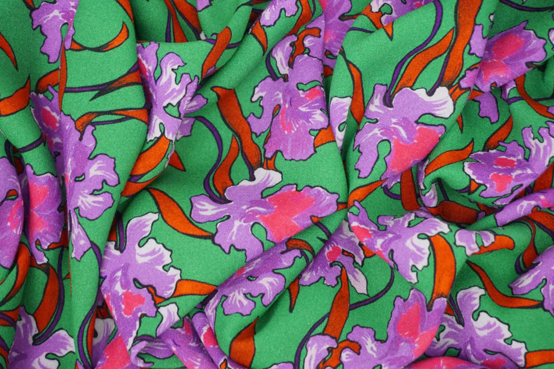 Креповая вискоза MAX MARA Зеленая Ирисы MM H21/6 I60 17022411