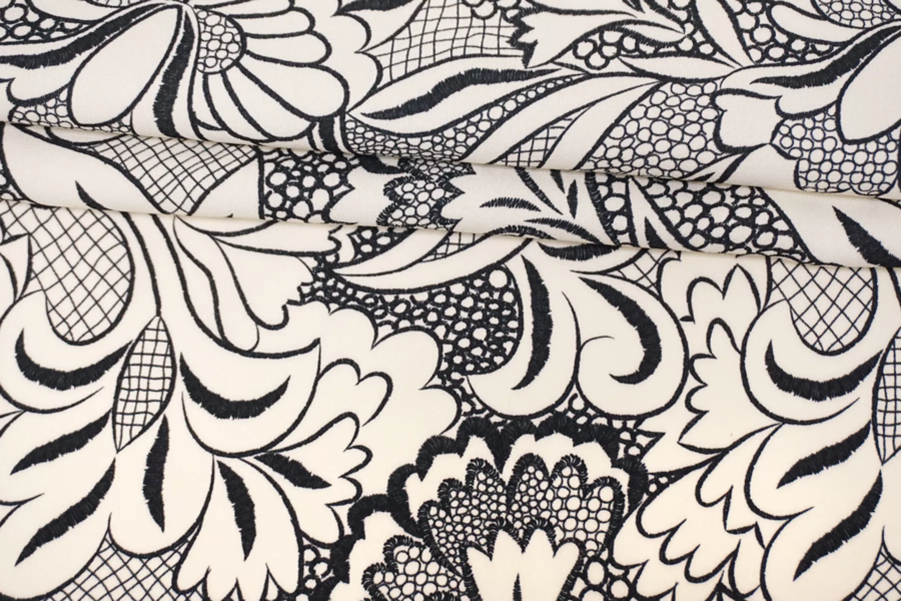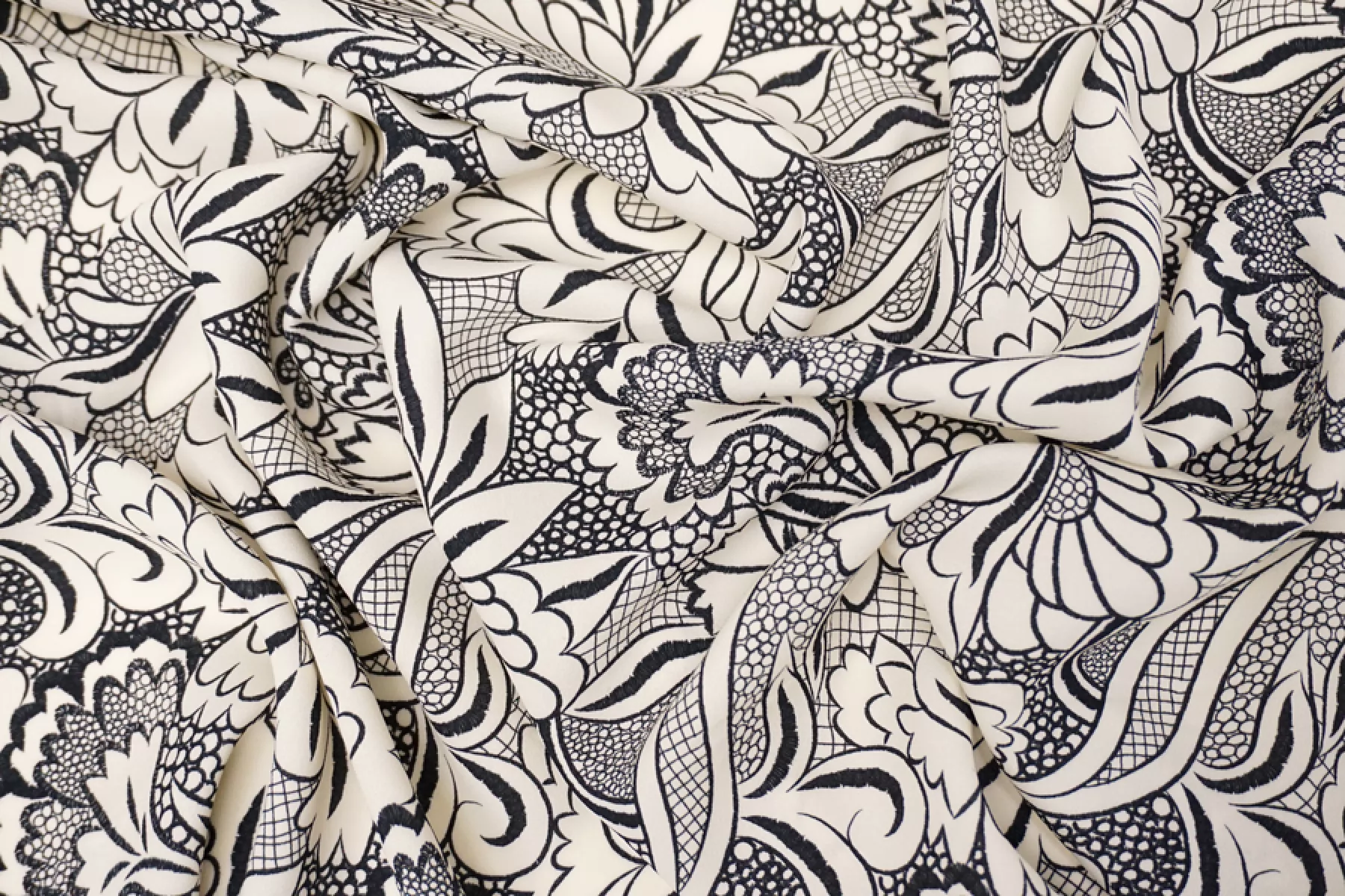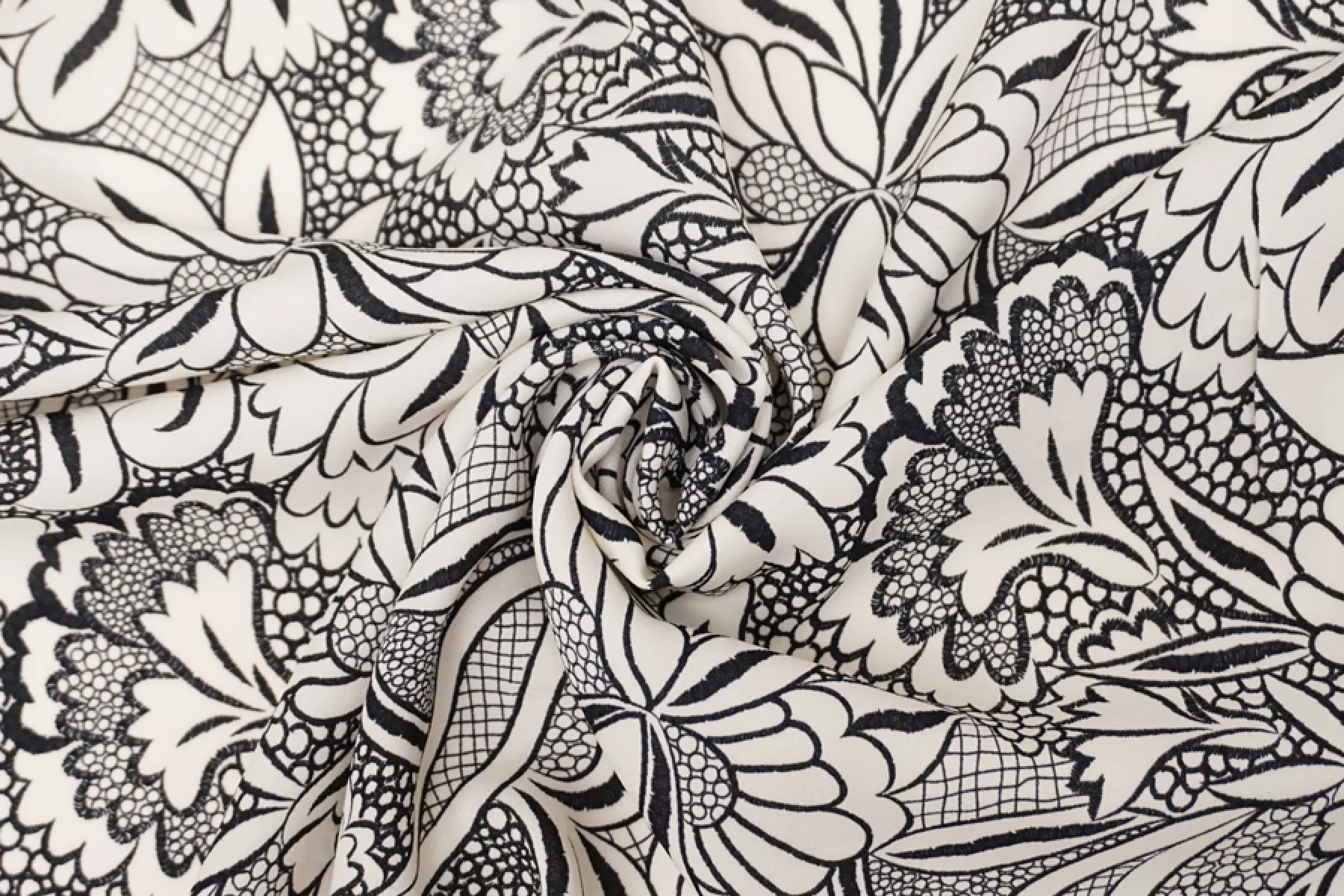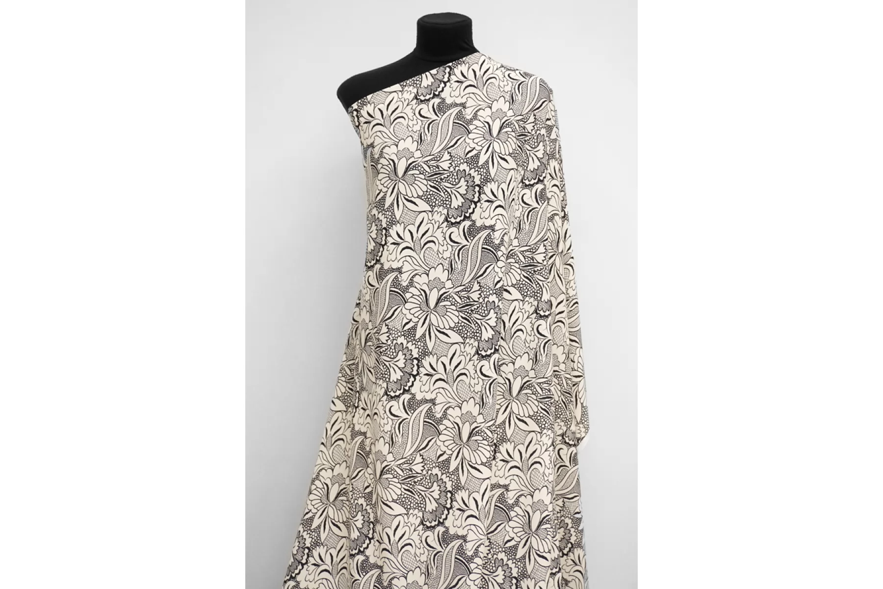 Креповая вискоза Молочно-черный Цветочный орнамент H21/11 i70 23062405