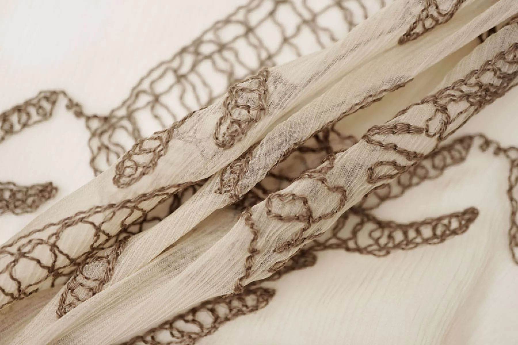 Шифон креш шелковый Save the Queen бежевый с вышивкой H28/1 О10 DD 6092408
