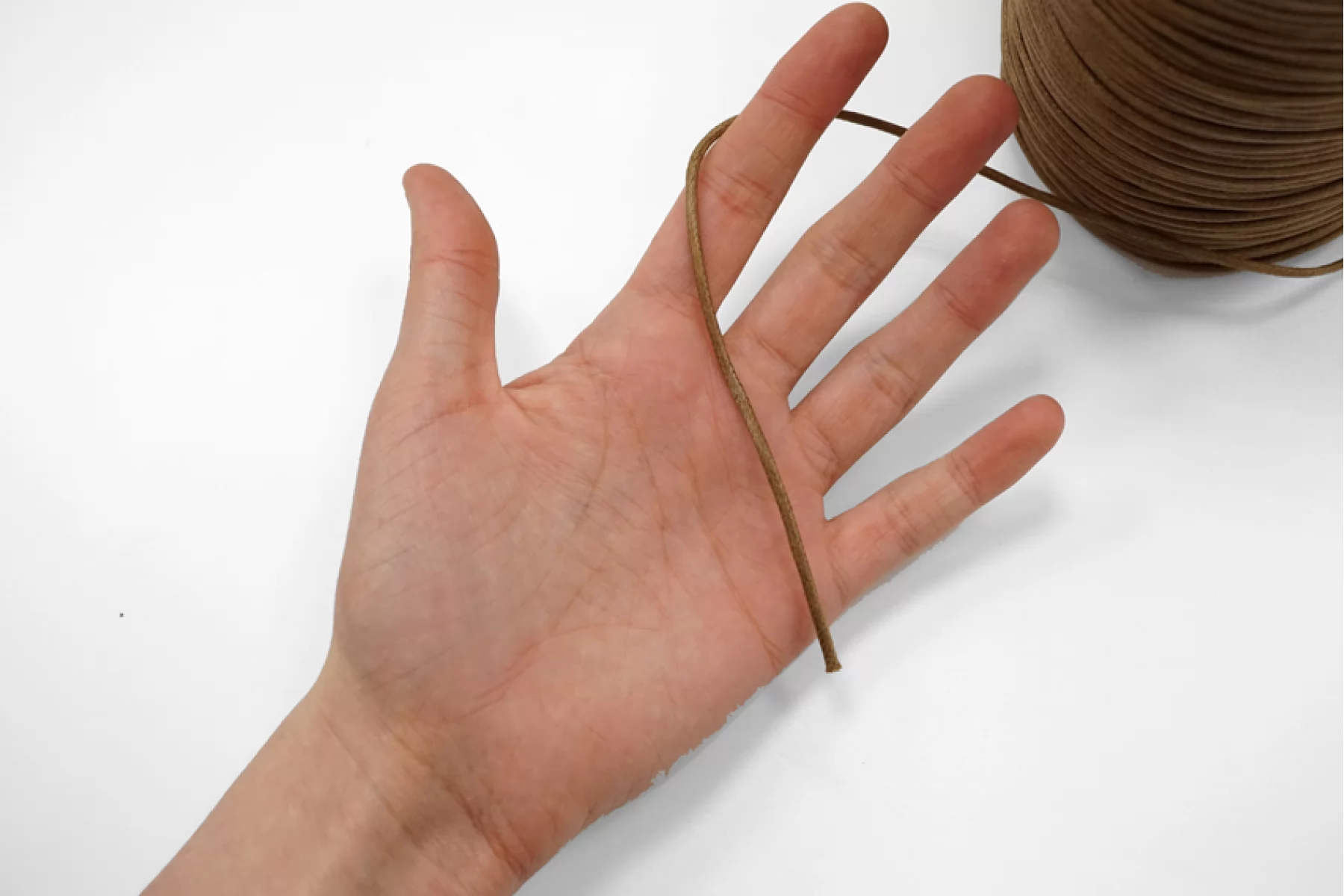 Круглый хлопковый шнур коричневого цвета, ширина 3 мм.